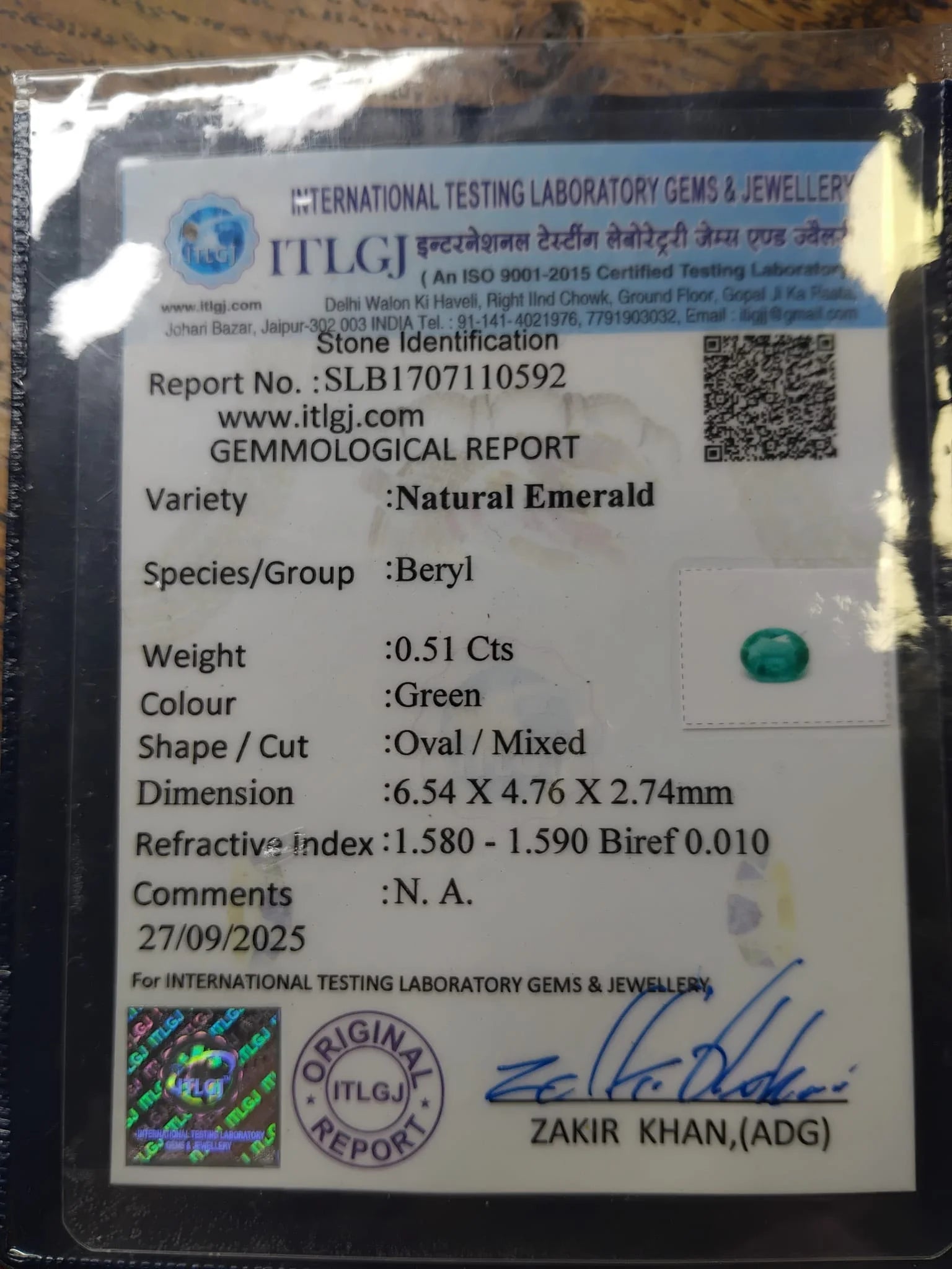Émeraude naturelle de Zambie - pierre fine de 6.54 × 4.76 × 2.74 mm - 0,51 carat - Parfait en bijouterie, collection, exposition...