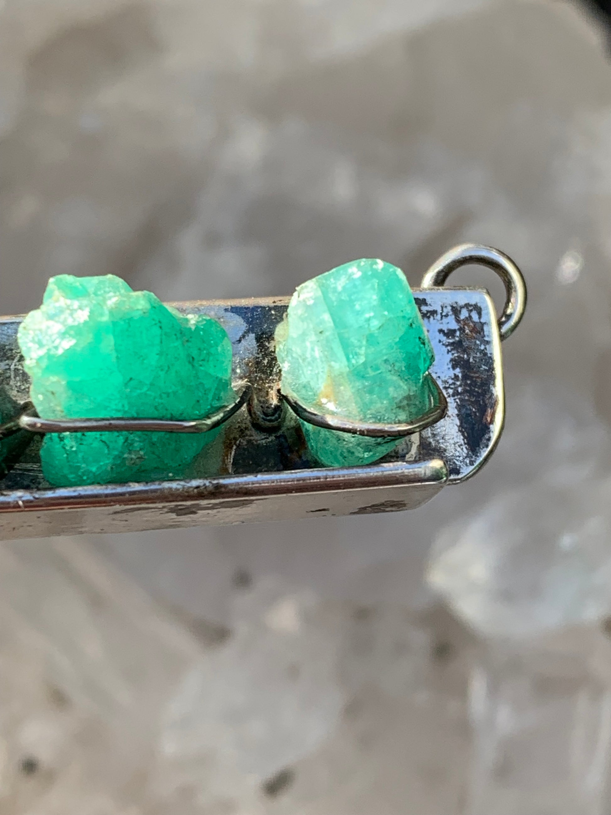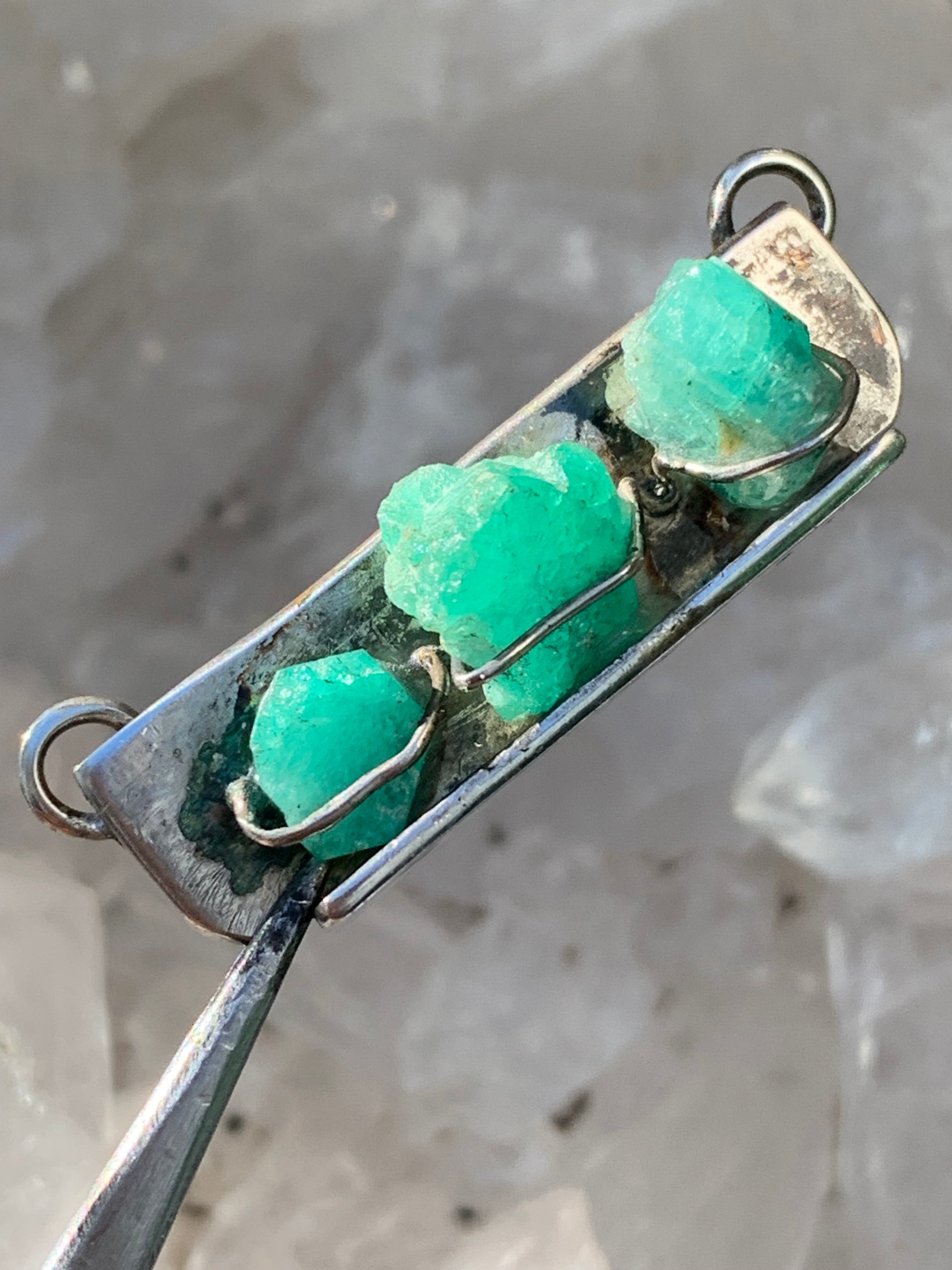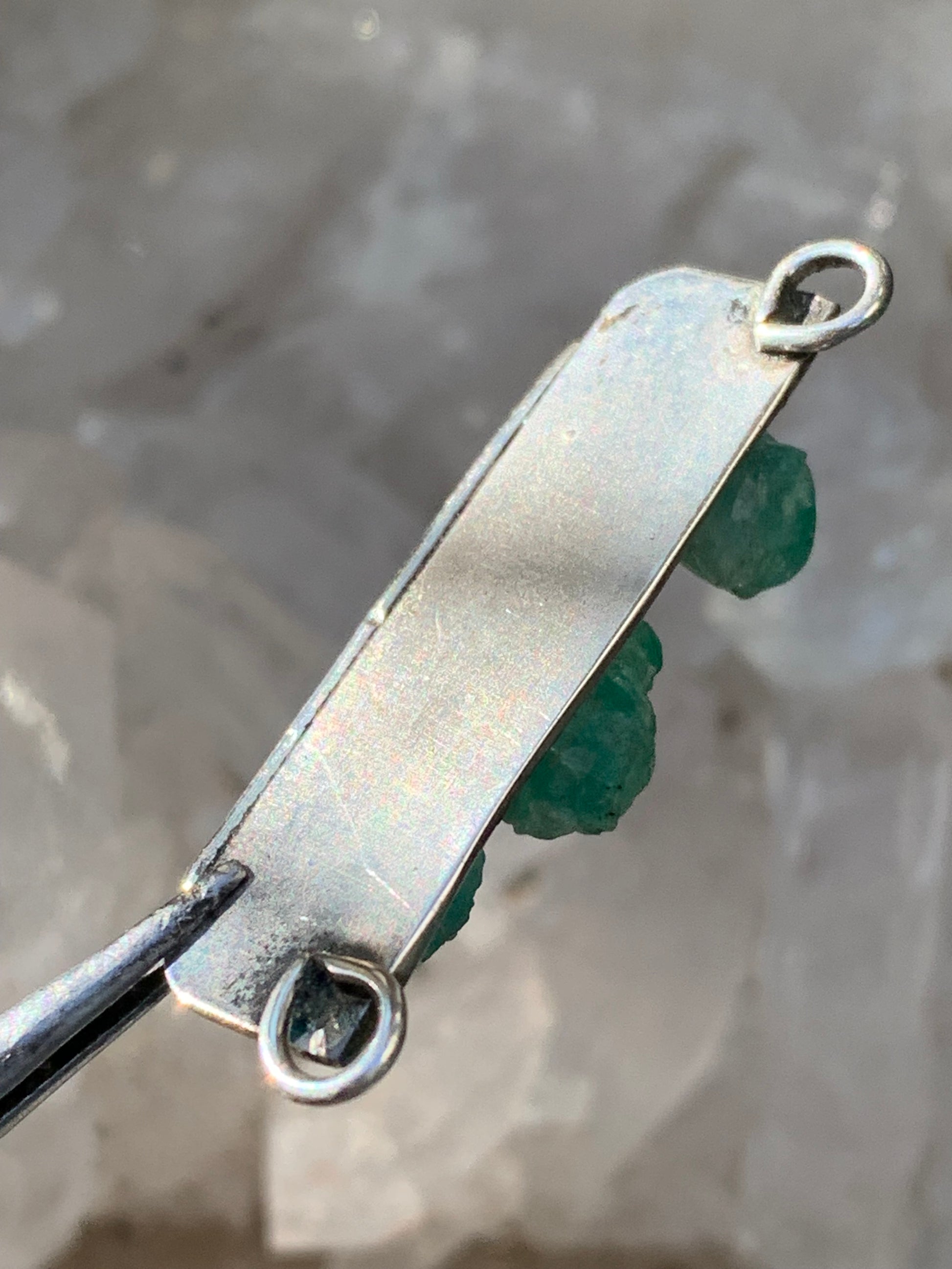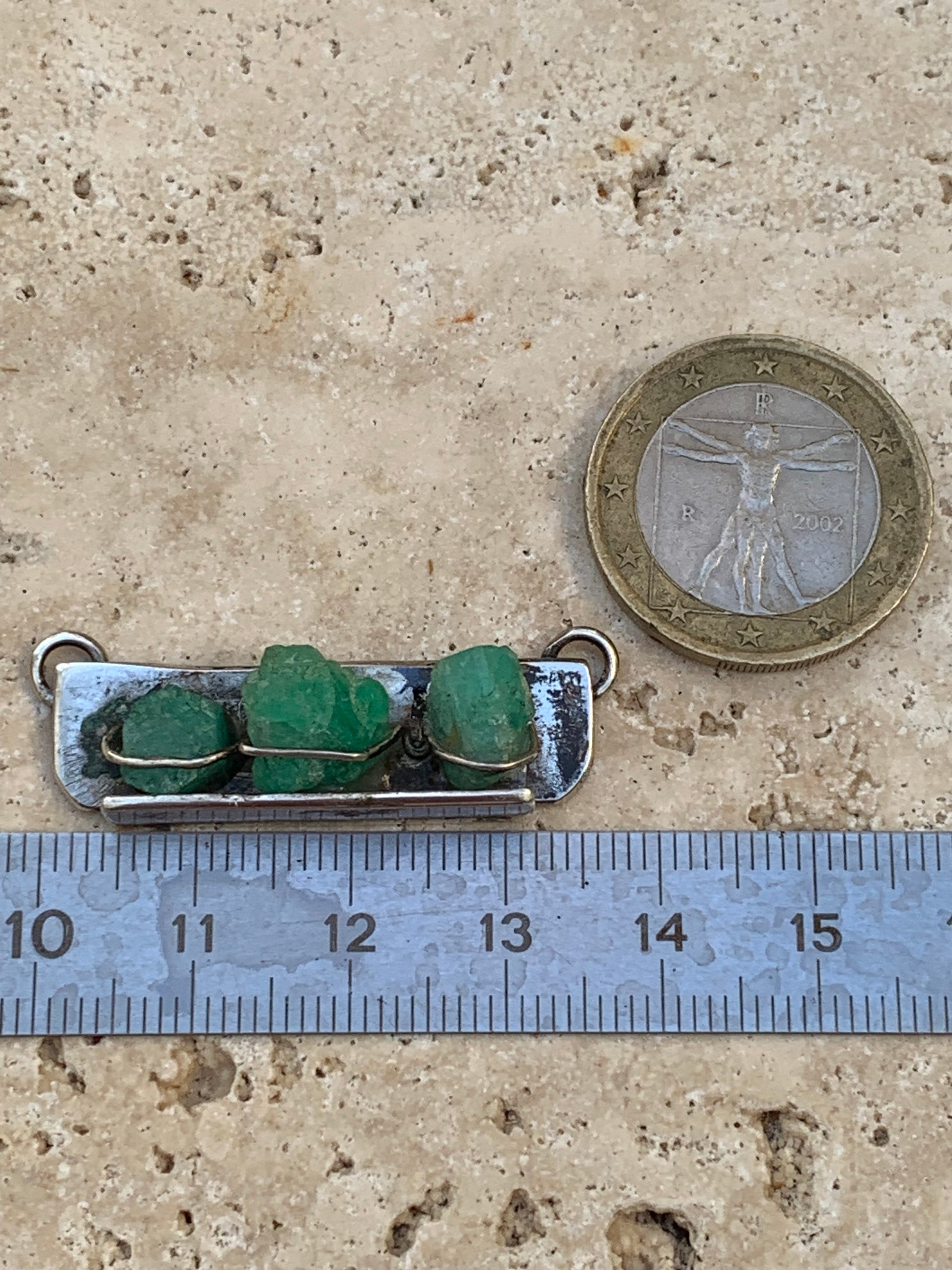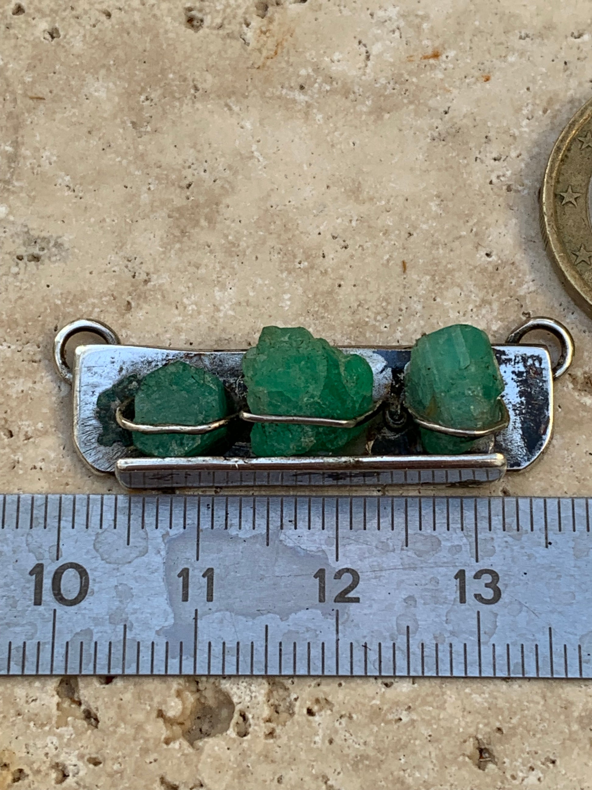Émeraude, pendentif "double attache" en Argent vieilli de 40mm x12 x10 / 7,1 grammes. Pendentif vendu seul ou sur chaine de 42 cm !