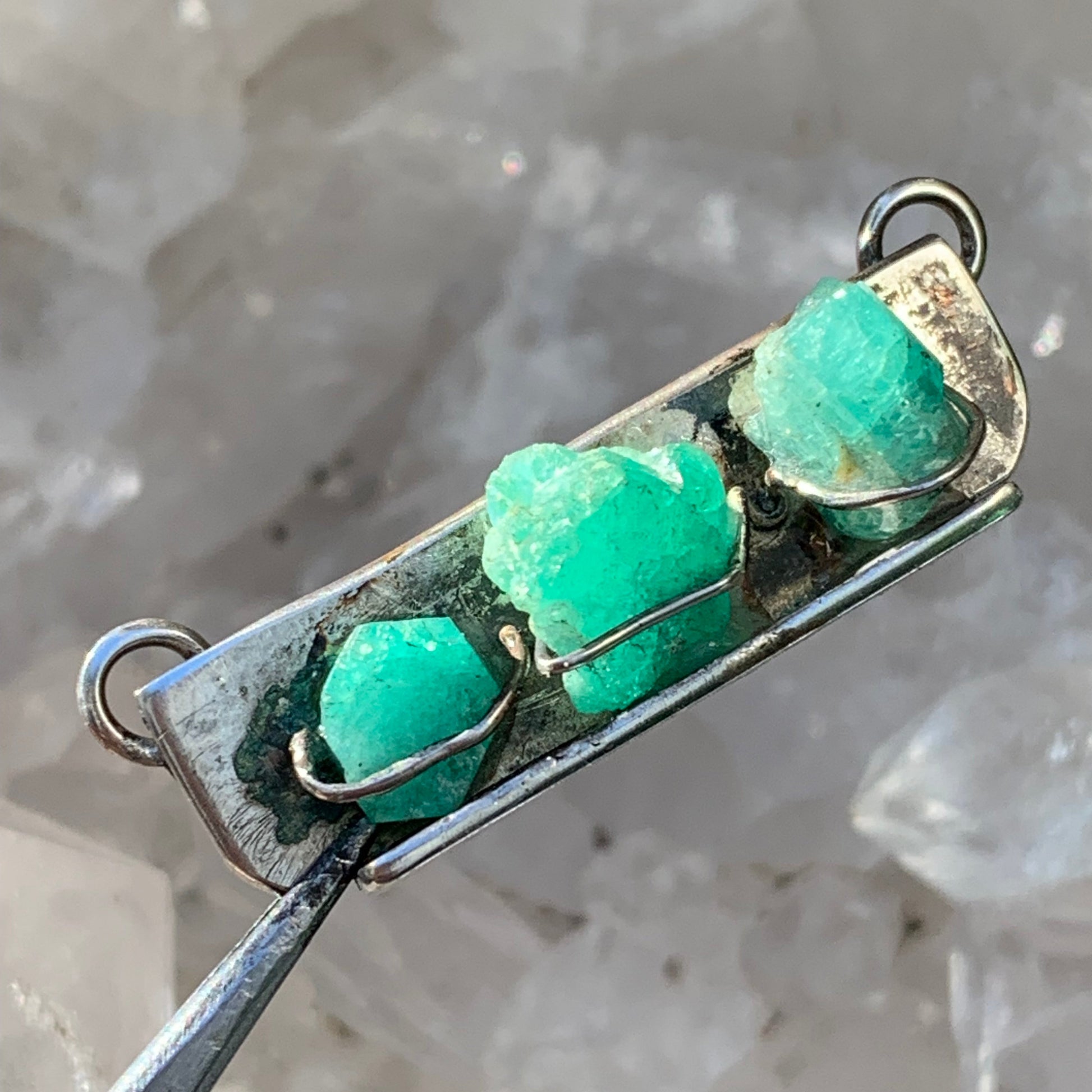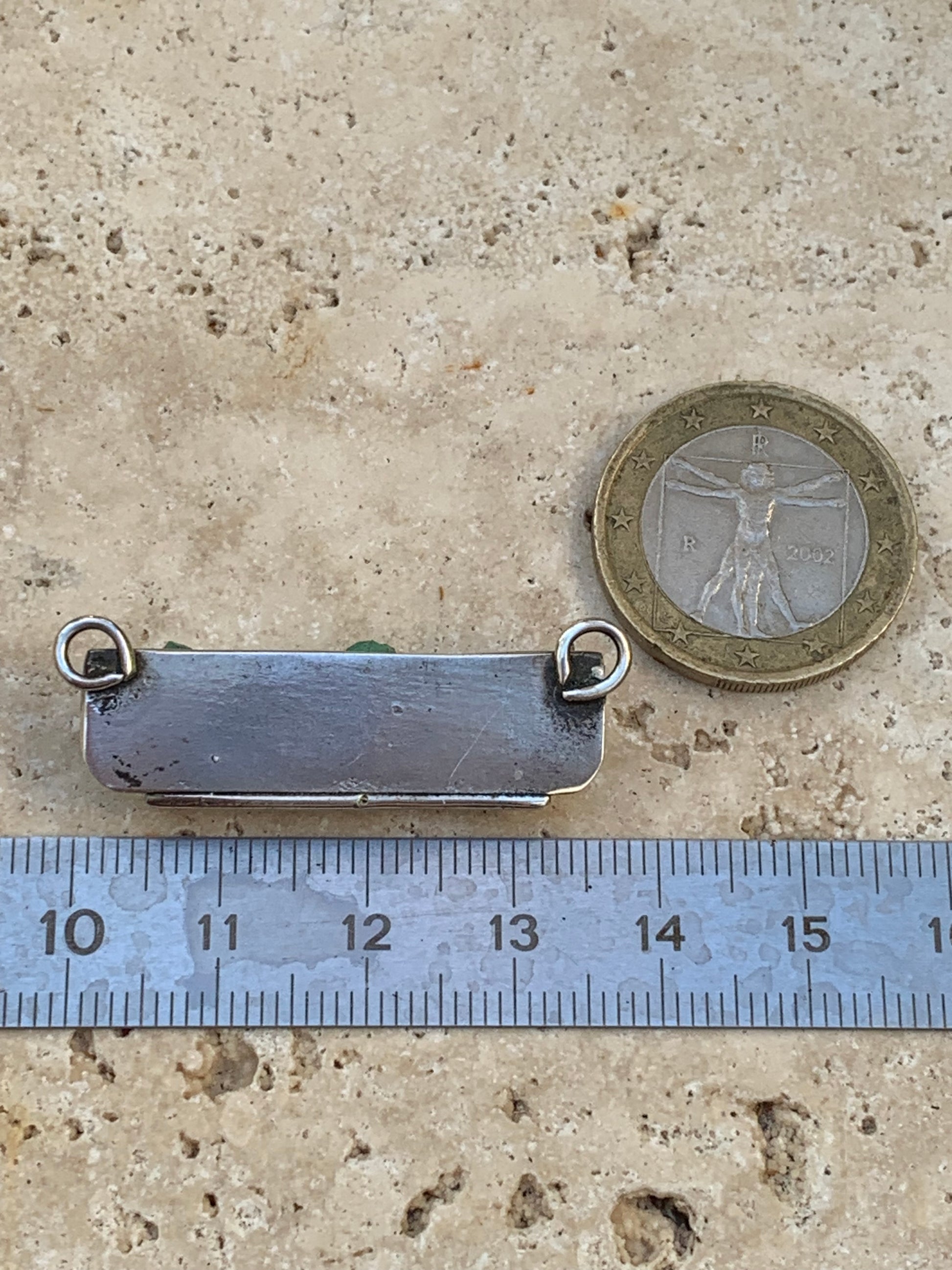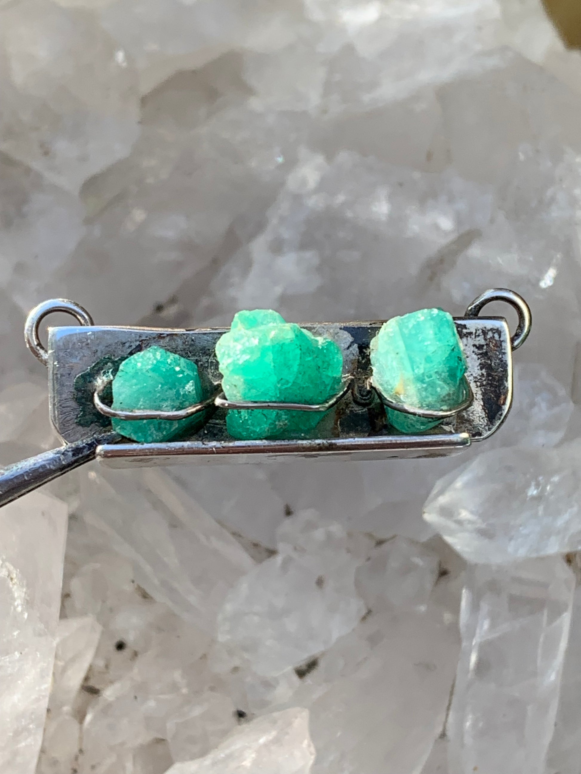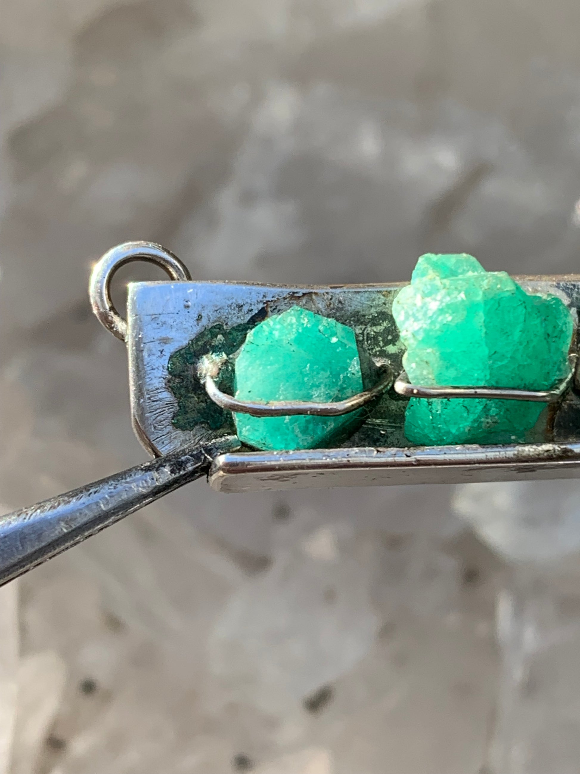 Émeraude, pendentif "double attache" en Argent vieilli de 40mm x12 x10 / 7,1 grammes. Pendentif vendu seul ou sur chaine de 42 cm !