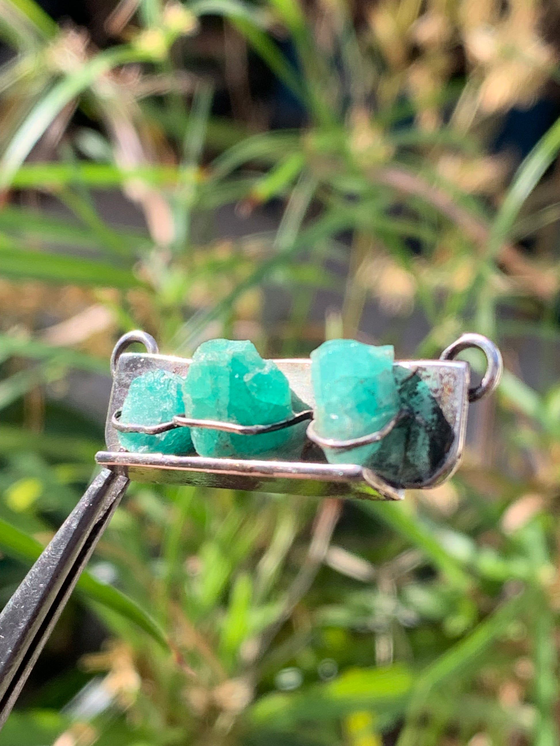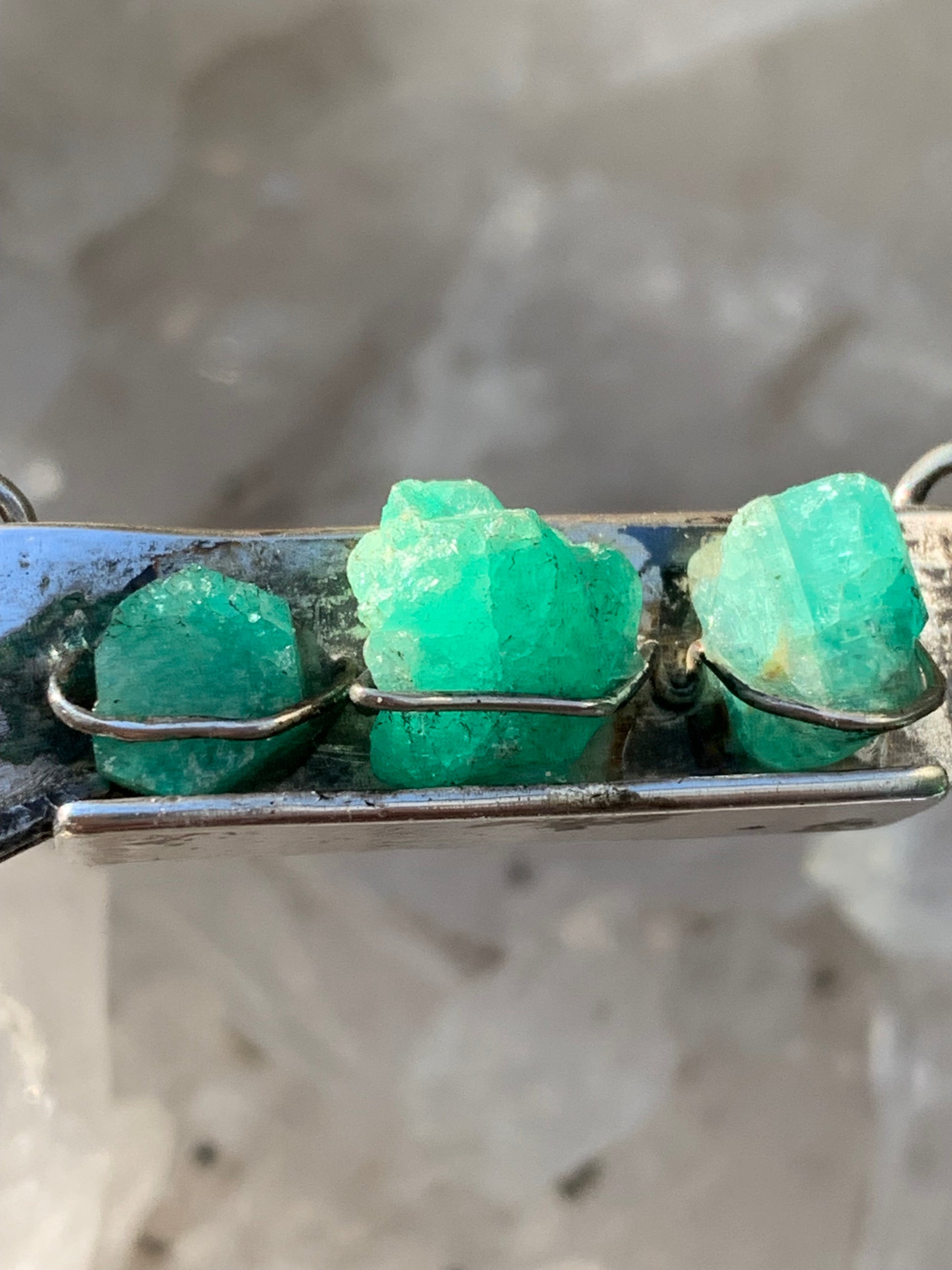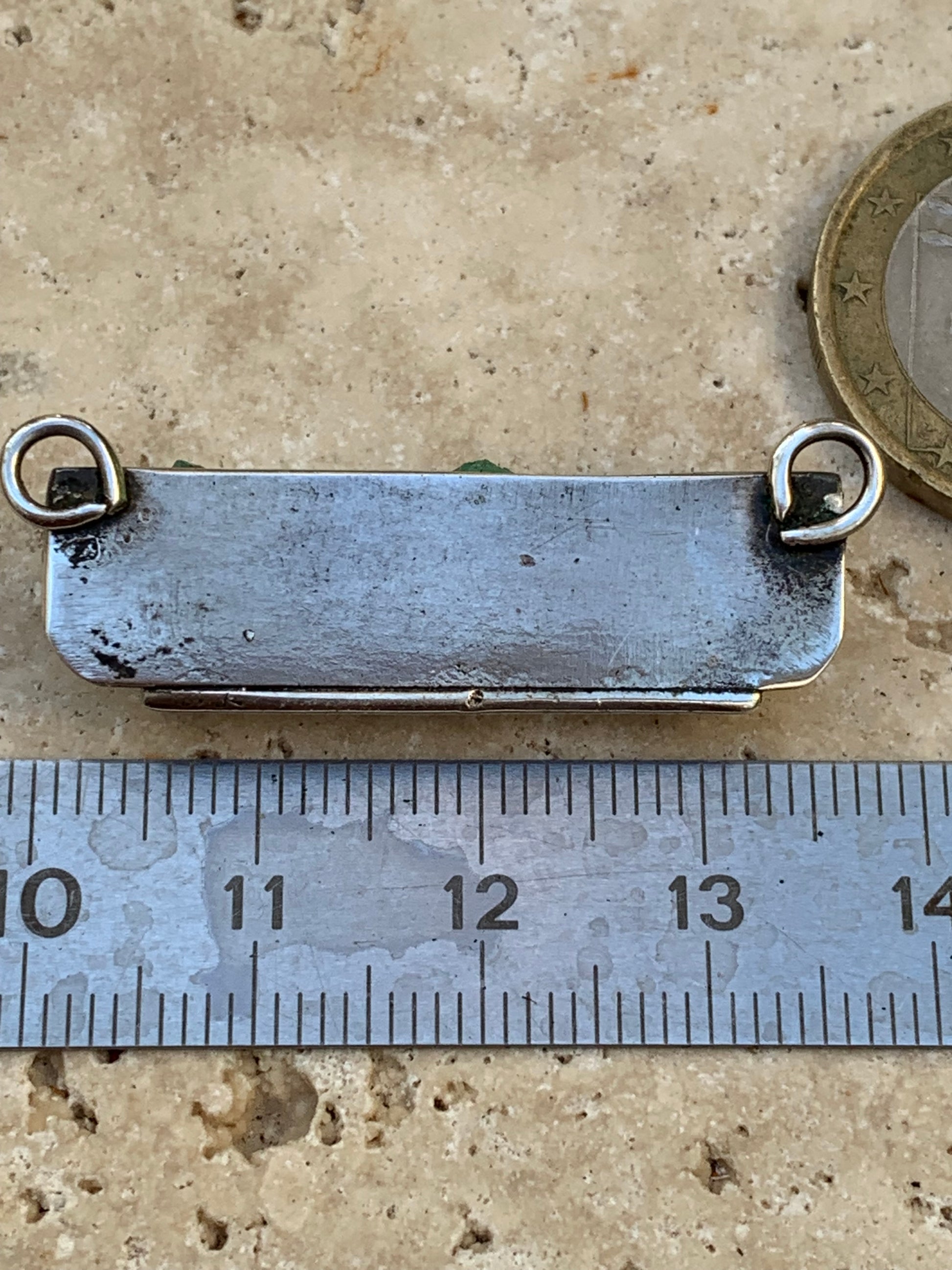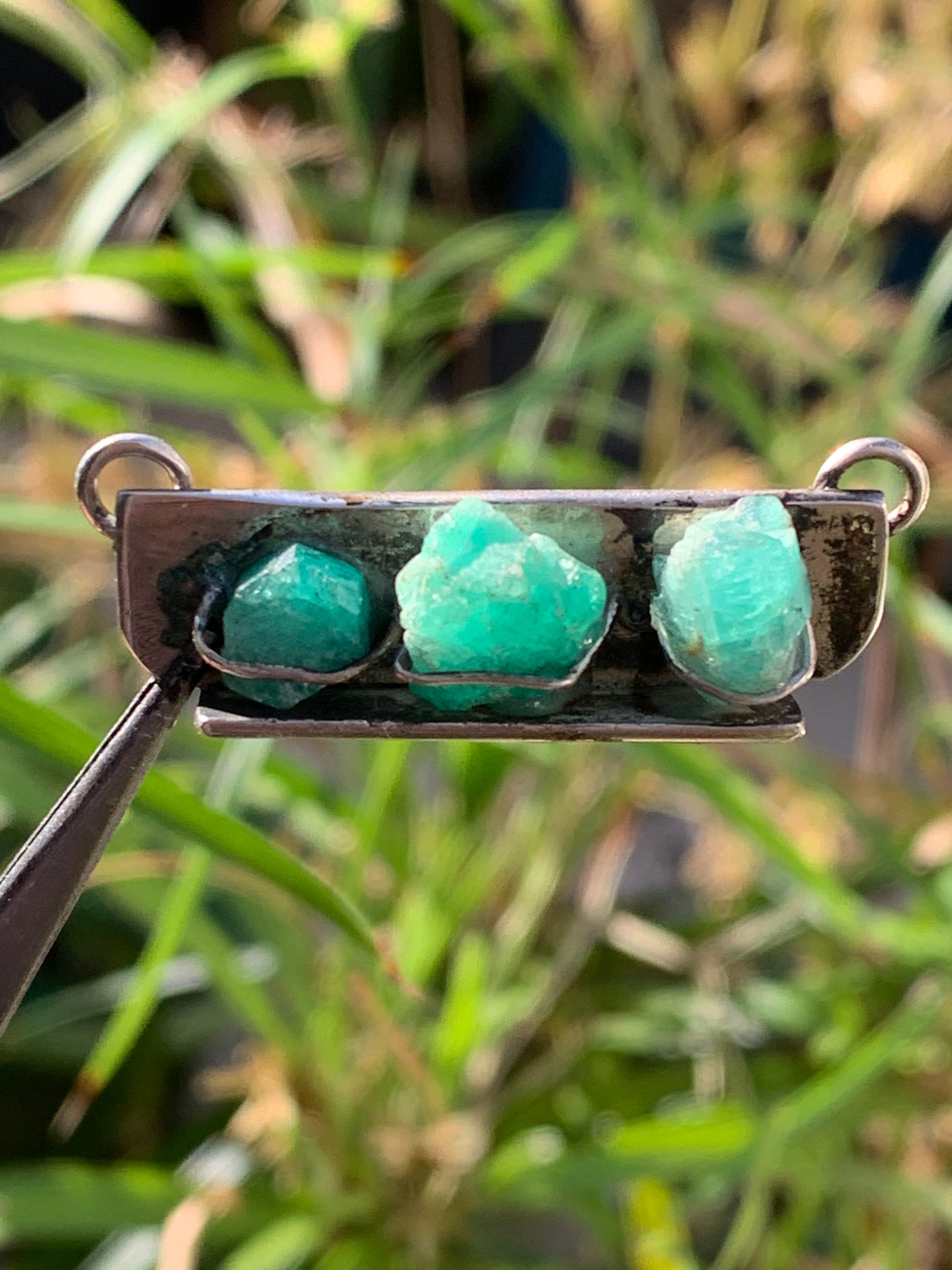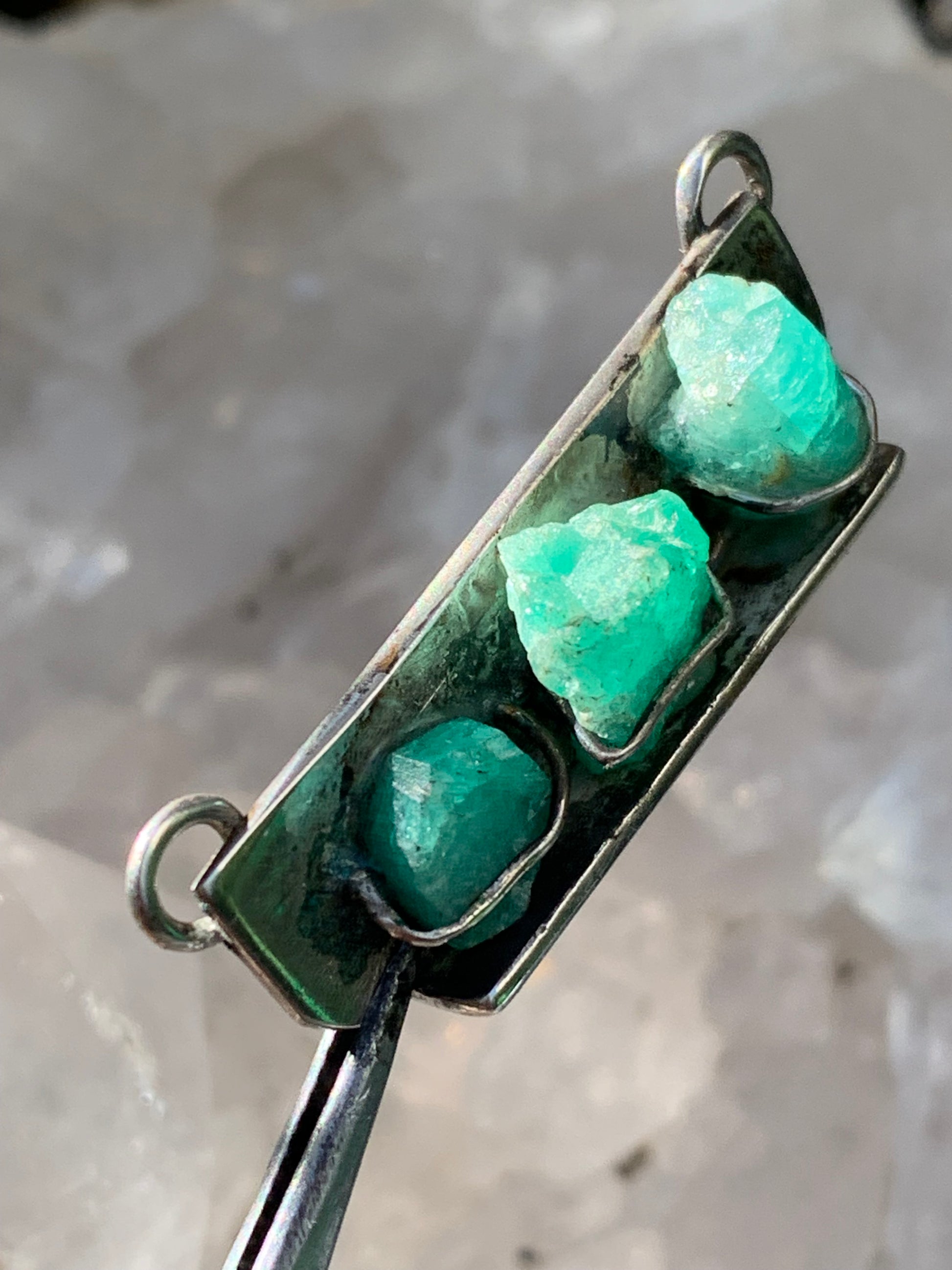 Émeraude, pendentif "double attache" en Argent vieilli de 40mm x12 x10 / 7,1 grammes. Pendentif vendu seul ou sur chaine de 42 cm !
