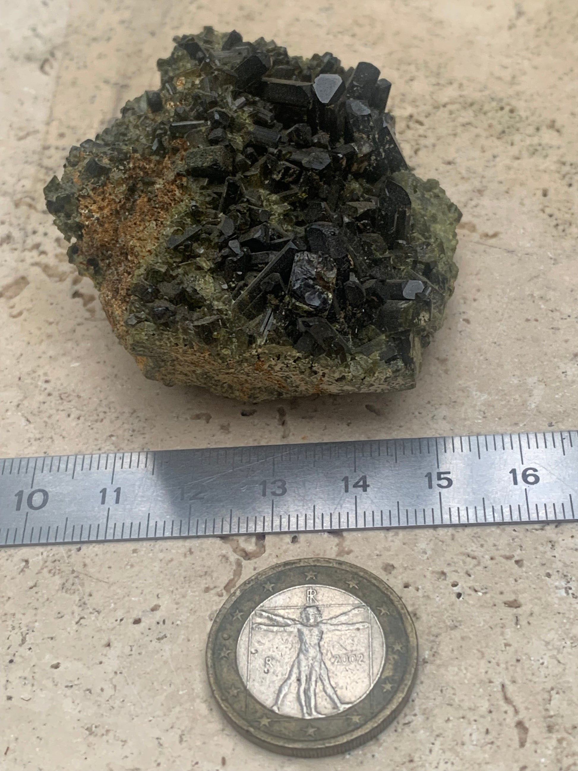 Petite histoire / légende | Nommée en 1801 par René-Just Haüy, “épidote” vient du grec epidosis signifiant “augmentation”, en référence à l’allongement d’un côté du prisme cristallin. Utilisée en lithothérapie comme pierre de transformation et de croissance. |