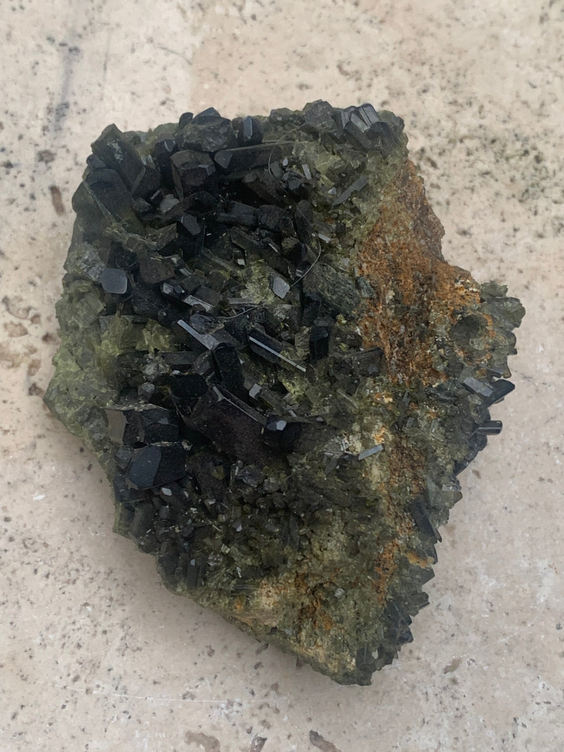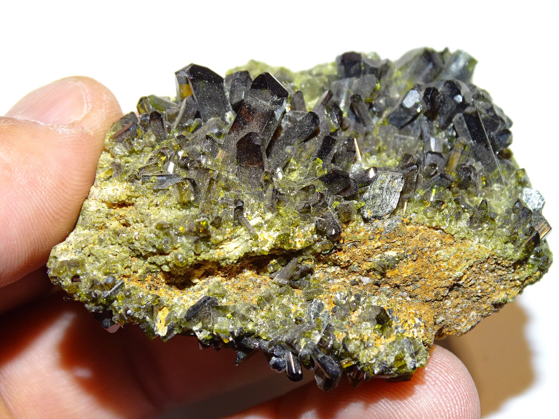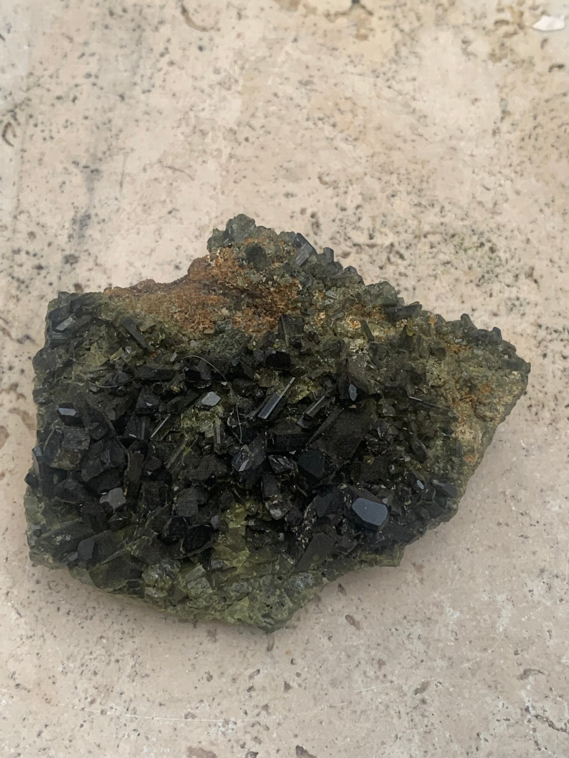 Épidote, belle pièce de minéralogie de 70 x 50 x 30mm - 101 grammes. Parfait en collection, bijouterie, exposition...