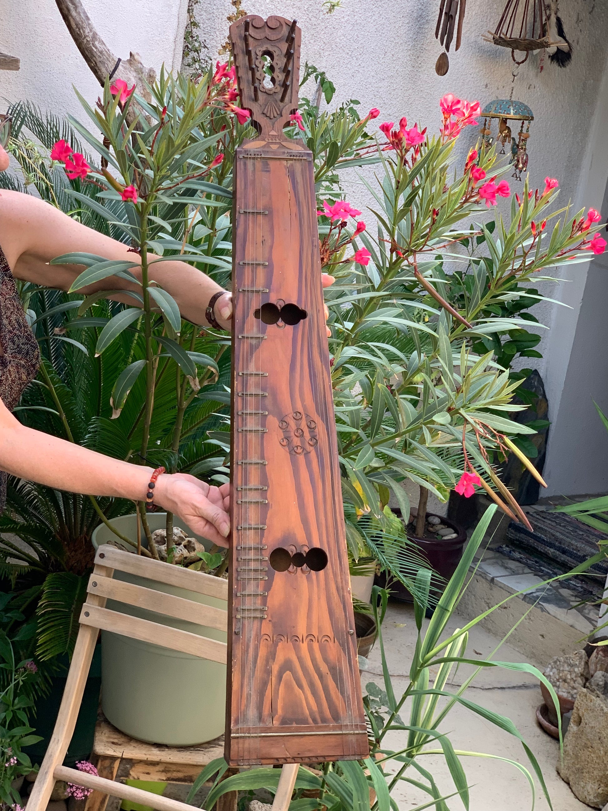 Epinette des Vosges, authentique instrument ancien en bois, prêt à jouer, livrer sans housse. 100 cm x 17 x 7 avec 5 cordes sympathique + 5 cordes de jeux !