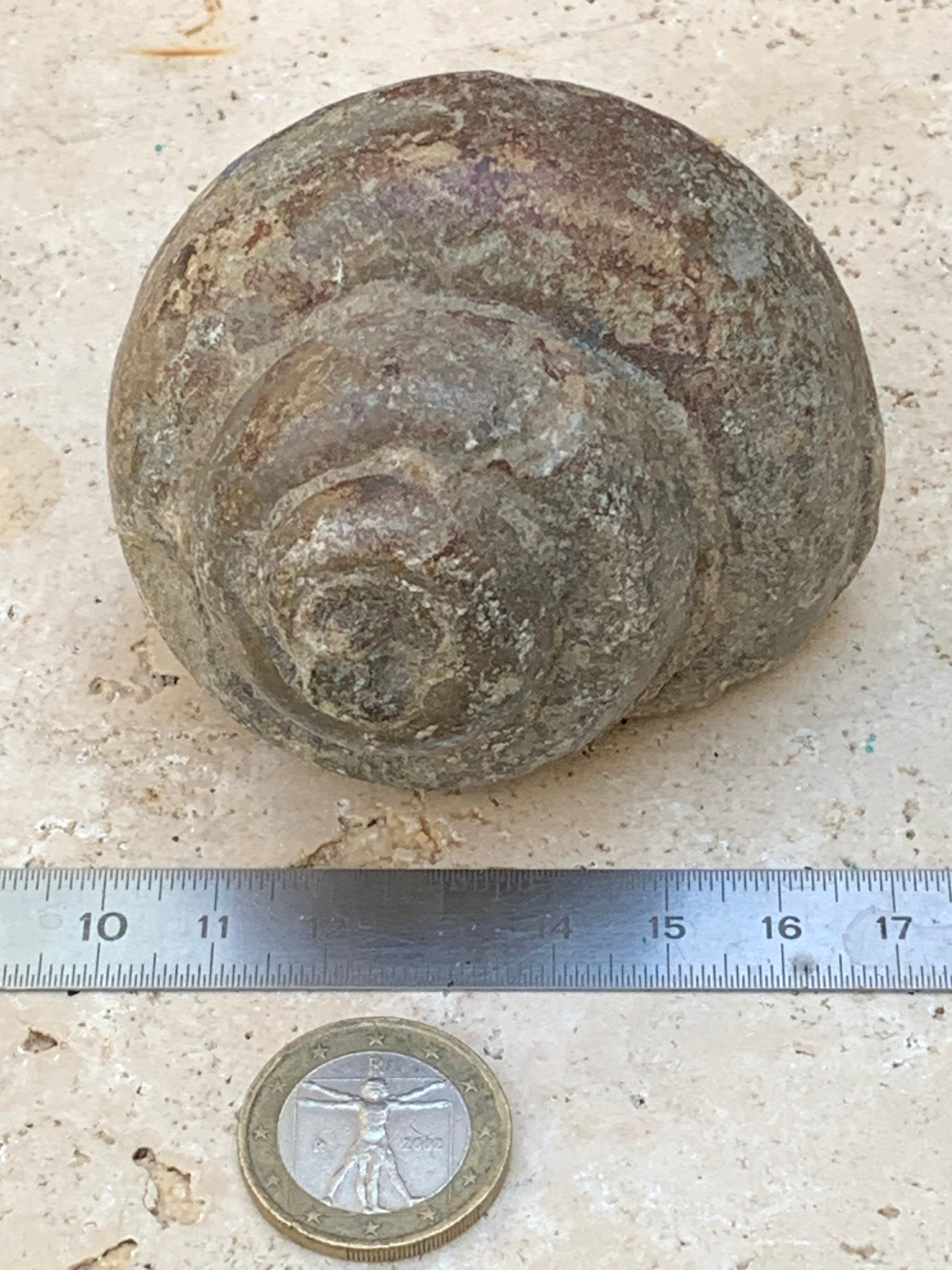 Escargot des Alpes fossilisé de taille XL (rare), 70x60x58 mm - 273 gr. Parfait pour collection, exposition...
