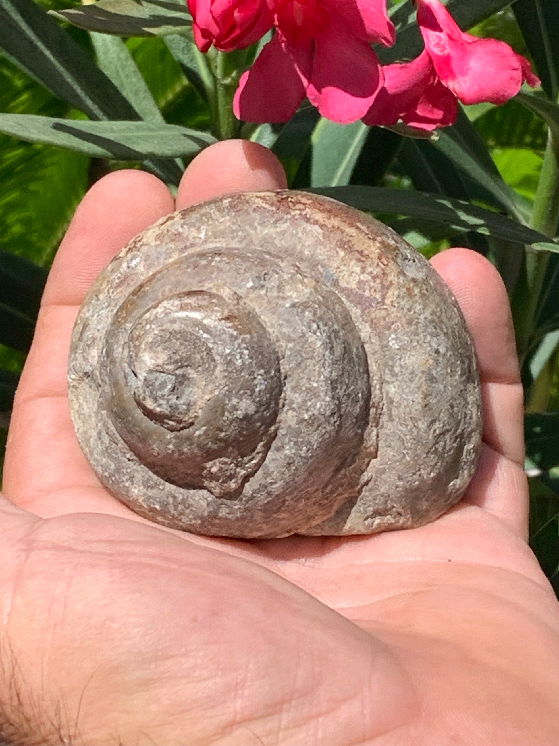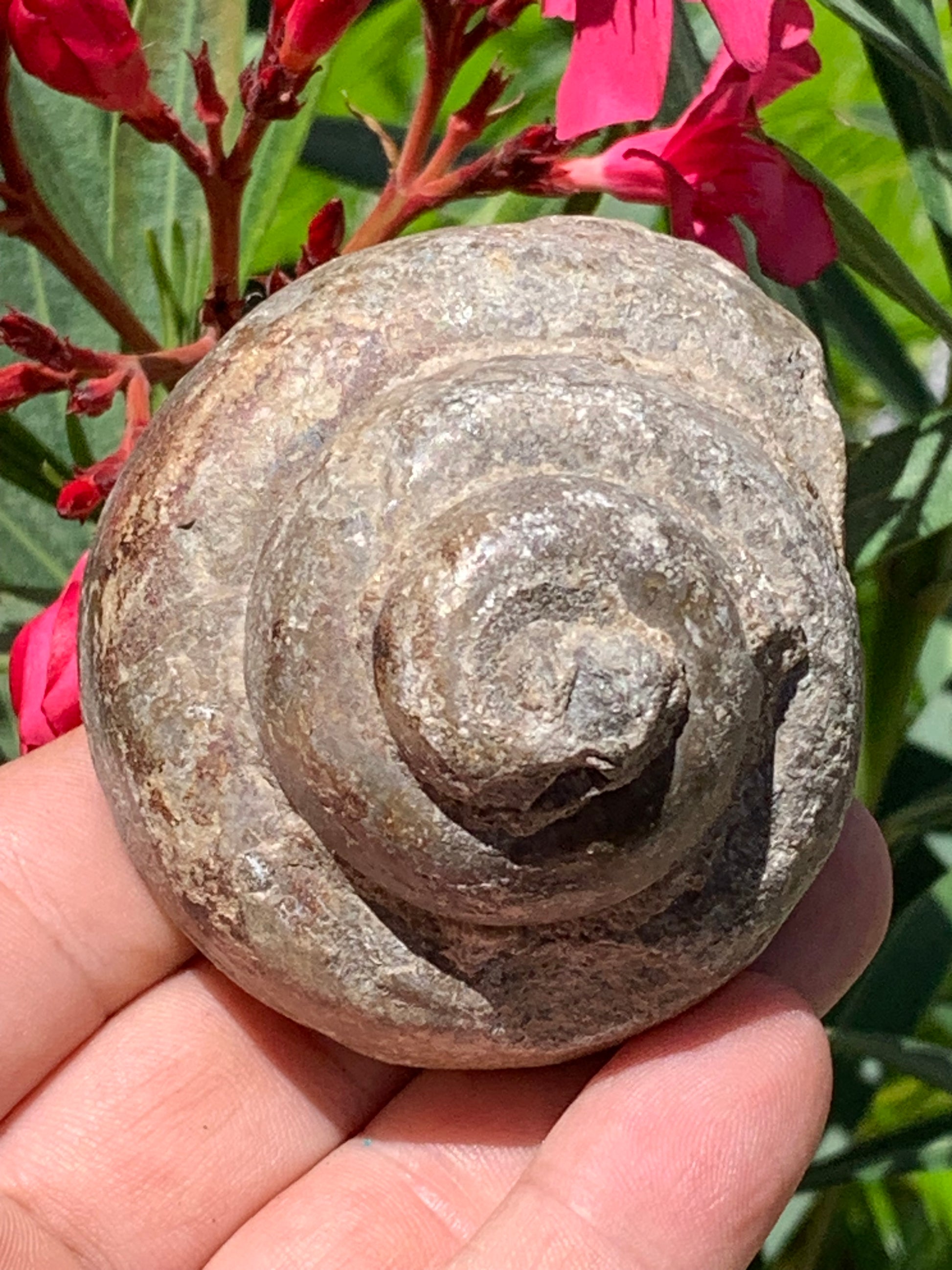 Particularité | Fossile naturel d’escargot ou gastéropode préservé par minéralisation sur des millions d’années |