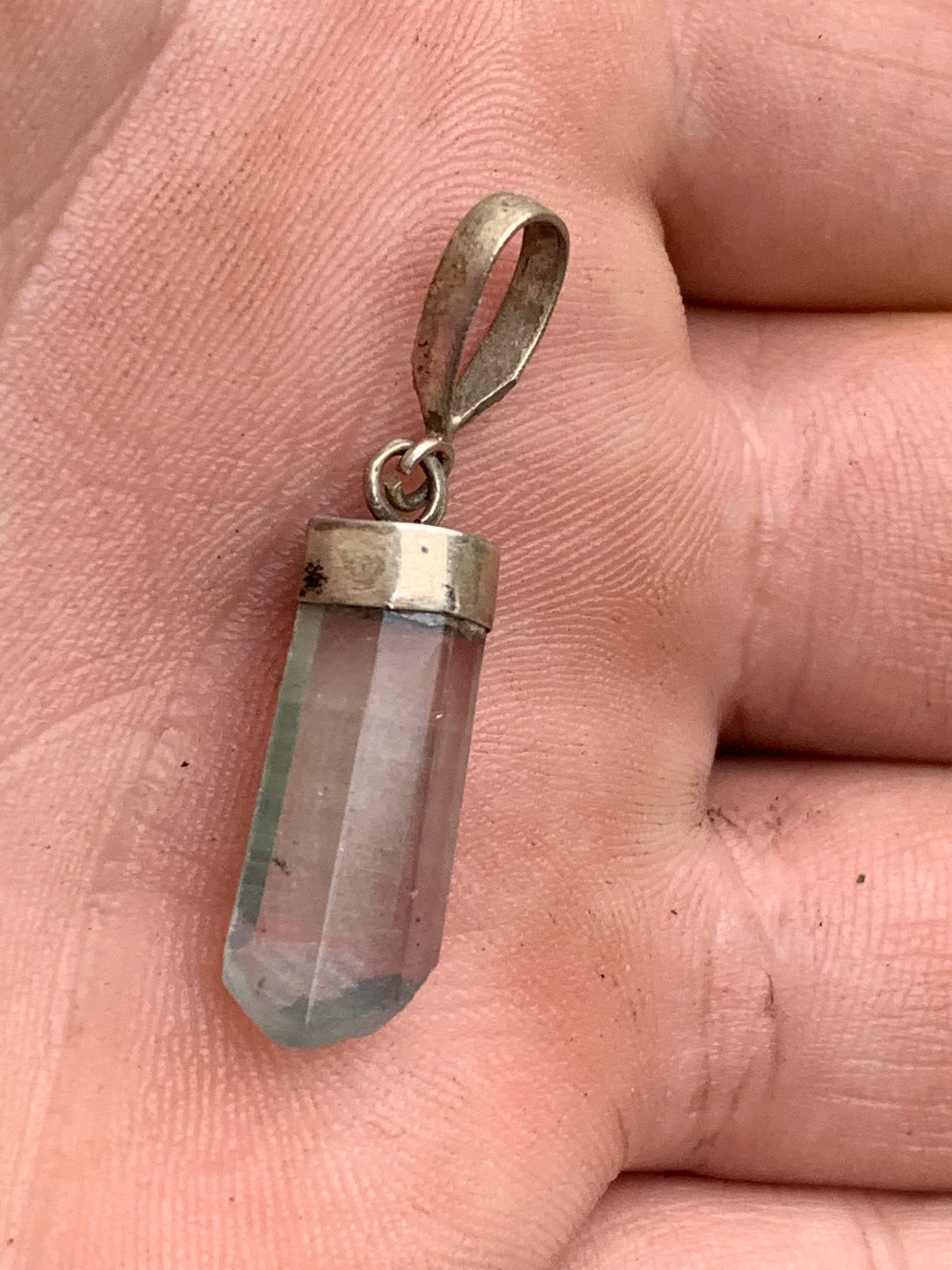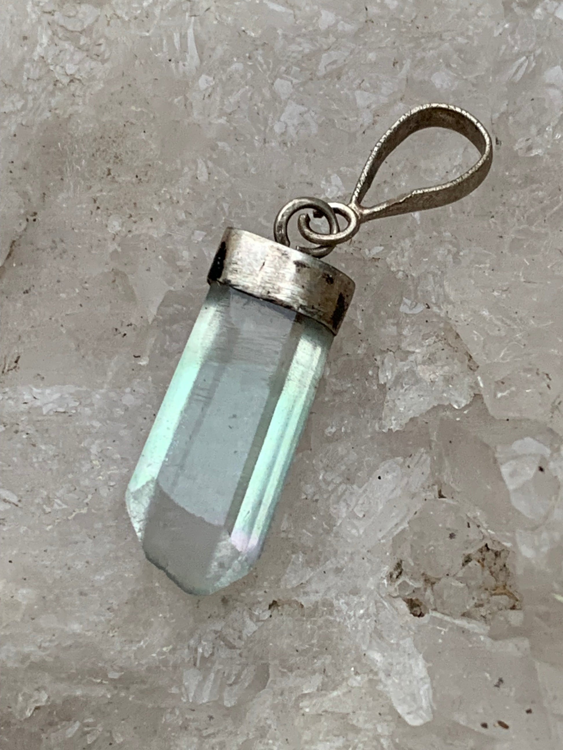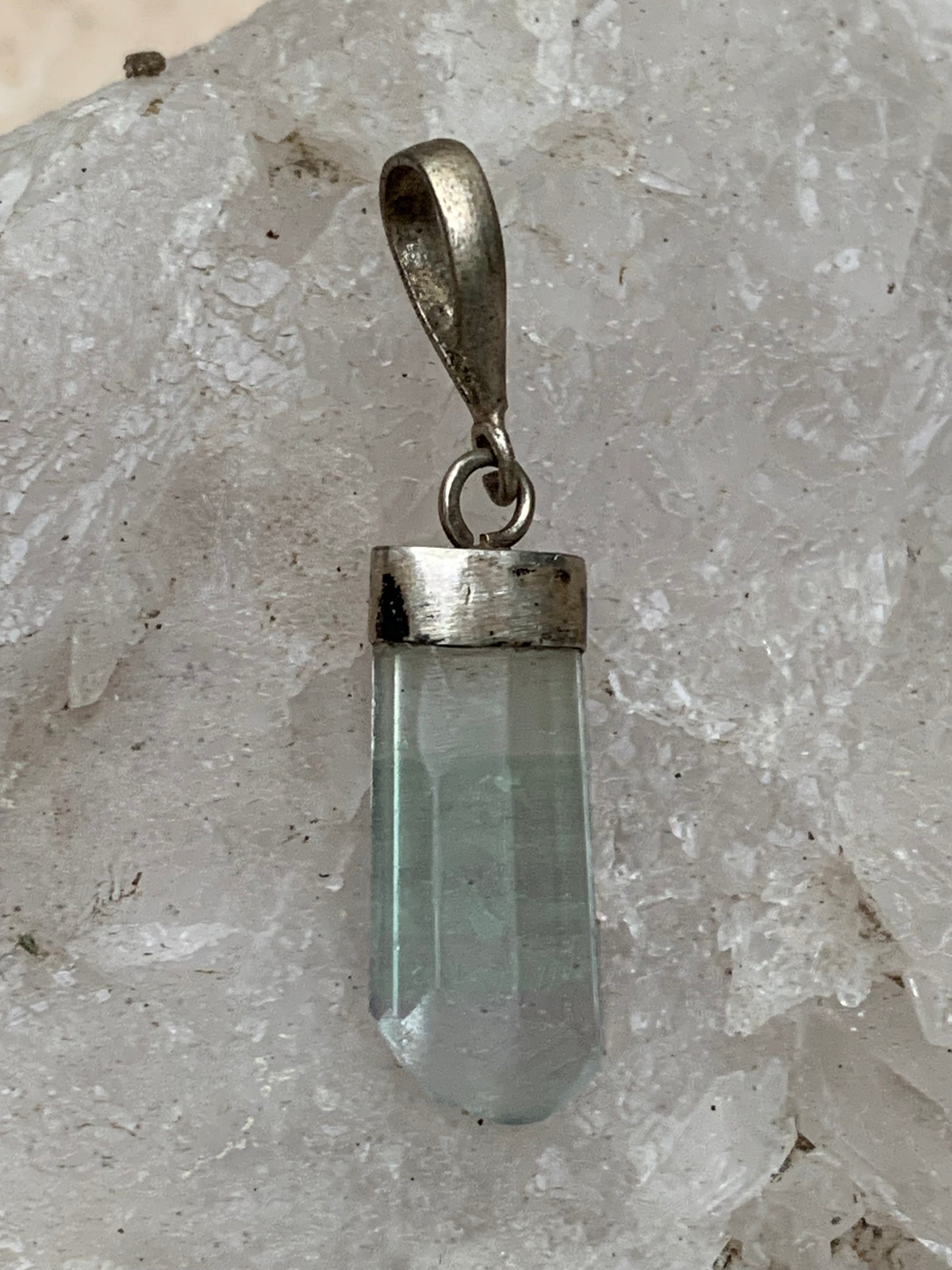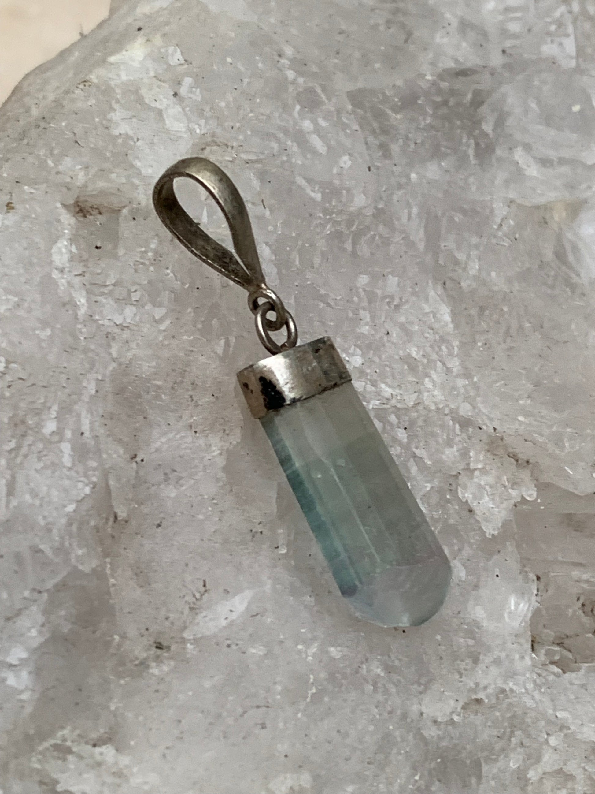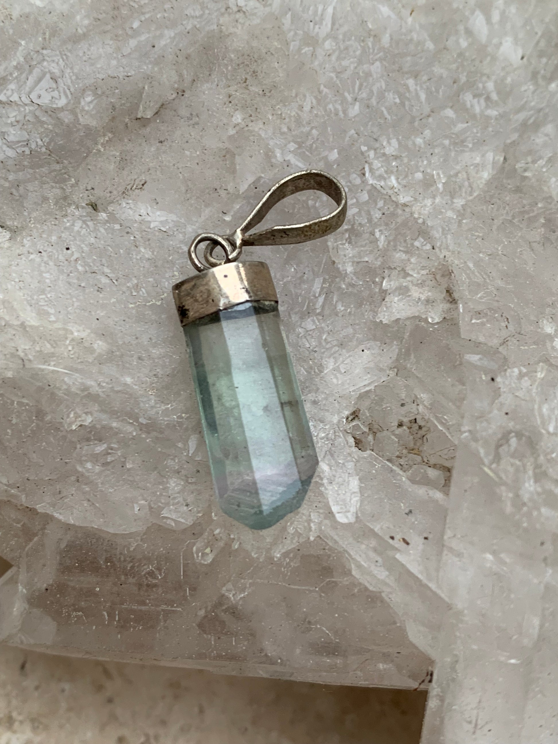 Fluorite bleue, pièce unique en Argent de 35 millimètres x 9 x 5. Vendu avec un cordon réglable de couleur noire !