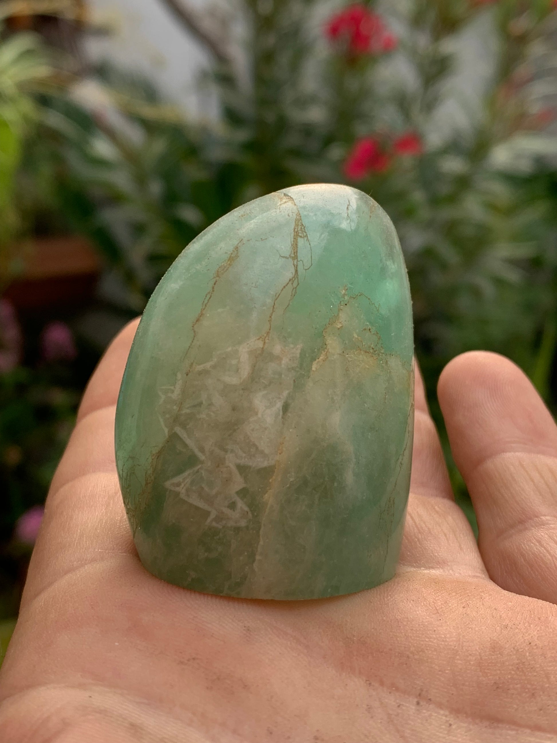 Fluorite verte, forme libre de 50 mm x 43 x 30 - 117,6 grammes. Belle qualité, magnifique pièce !