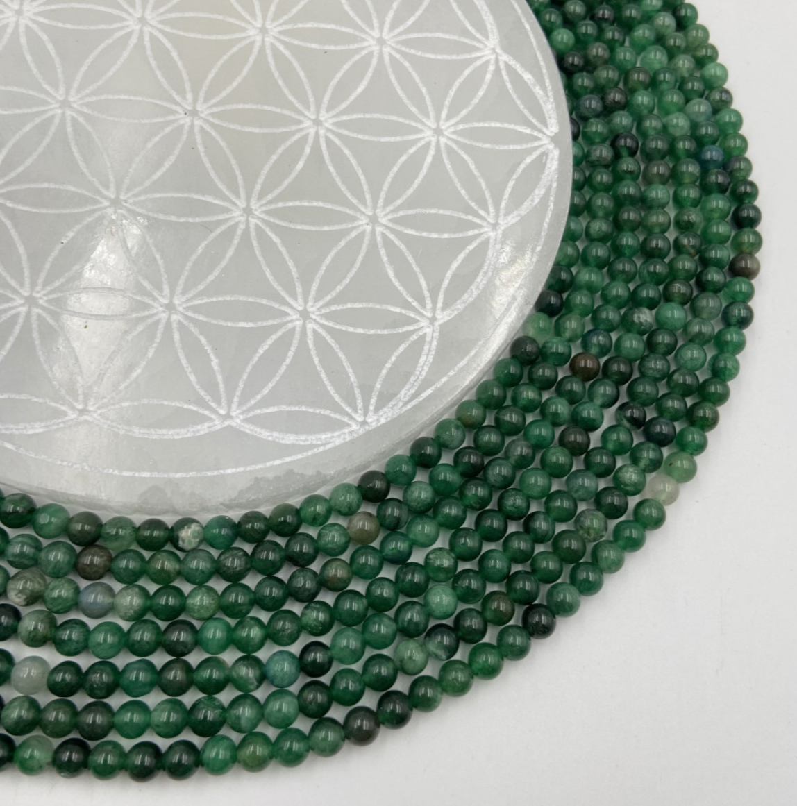 💎 Type de perle : Fuchsite / Mica vert - Qualité AA à AAA - Finition 'ronde', polie et brillante