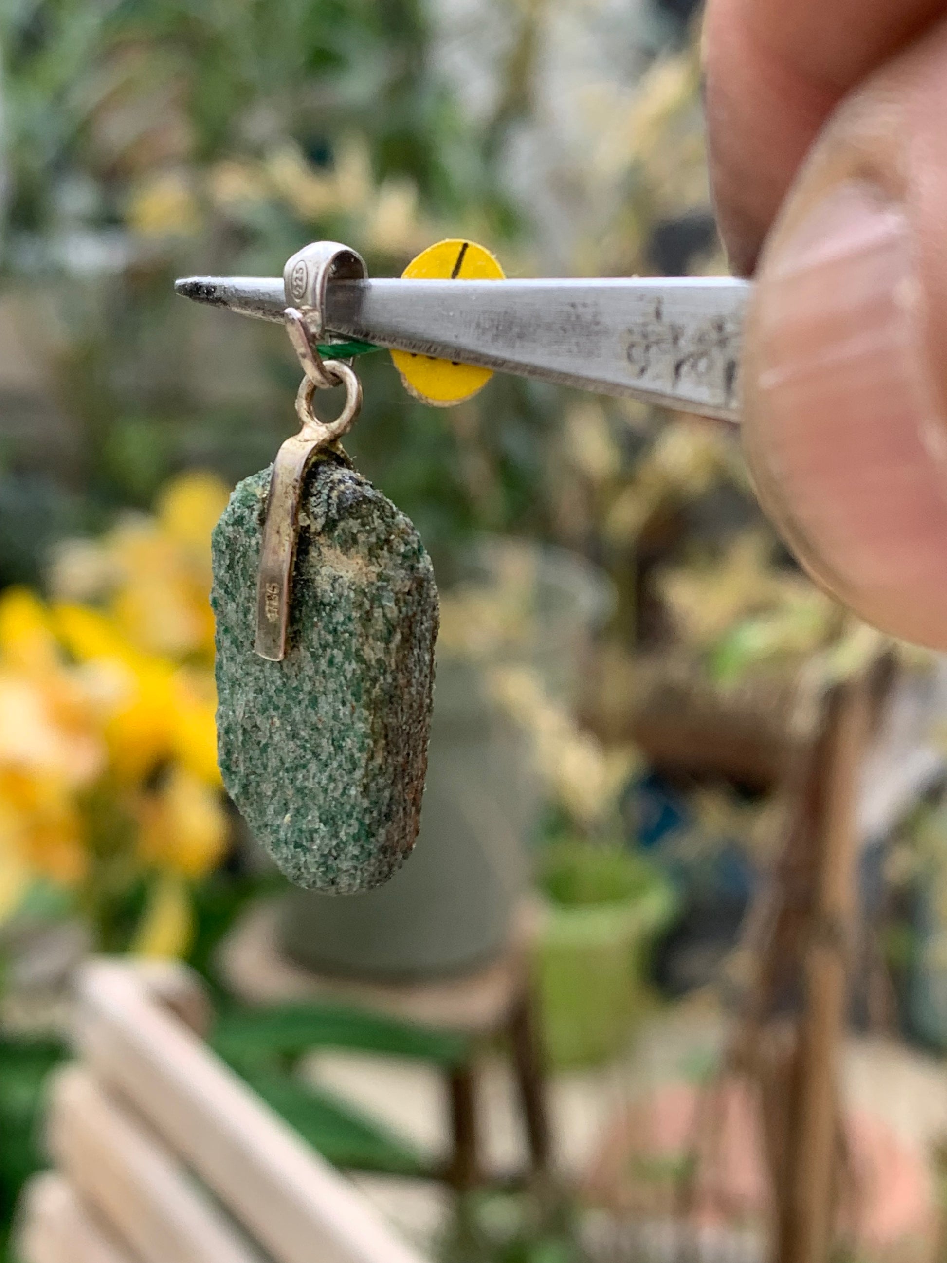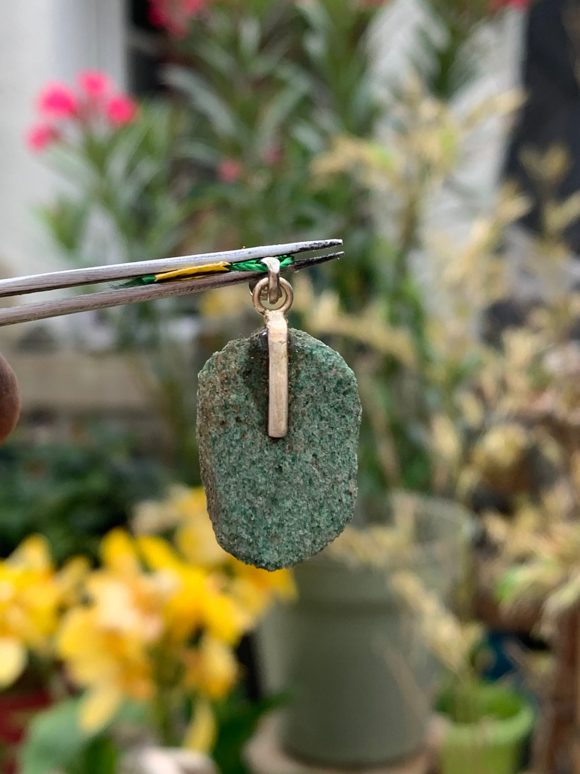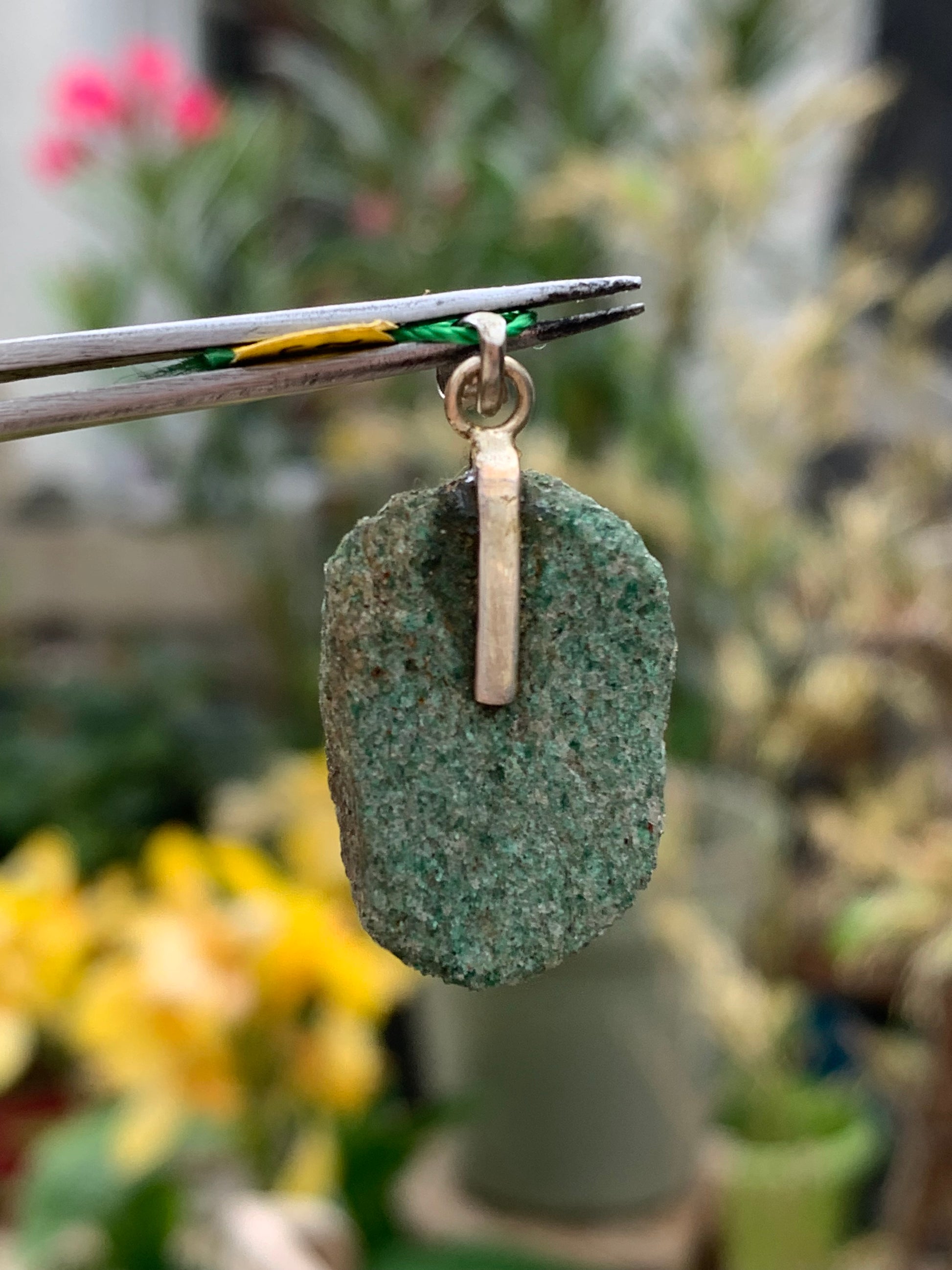 Fuchsite (micas vert) monté par G & Z, de 34 mm de ht x16 x5. Vendu avec un cordon réglable de couleur noire !