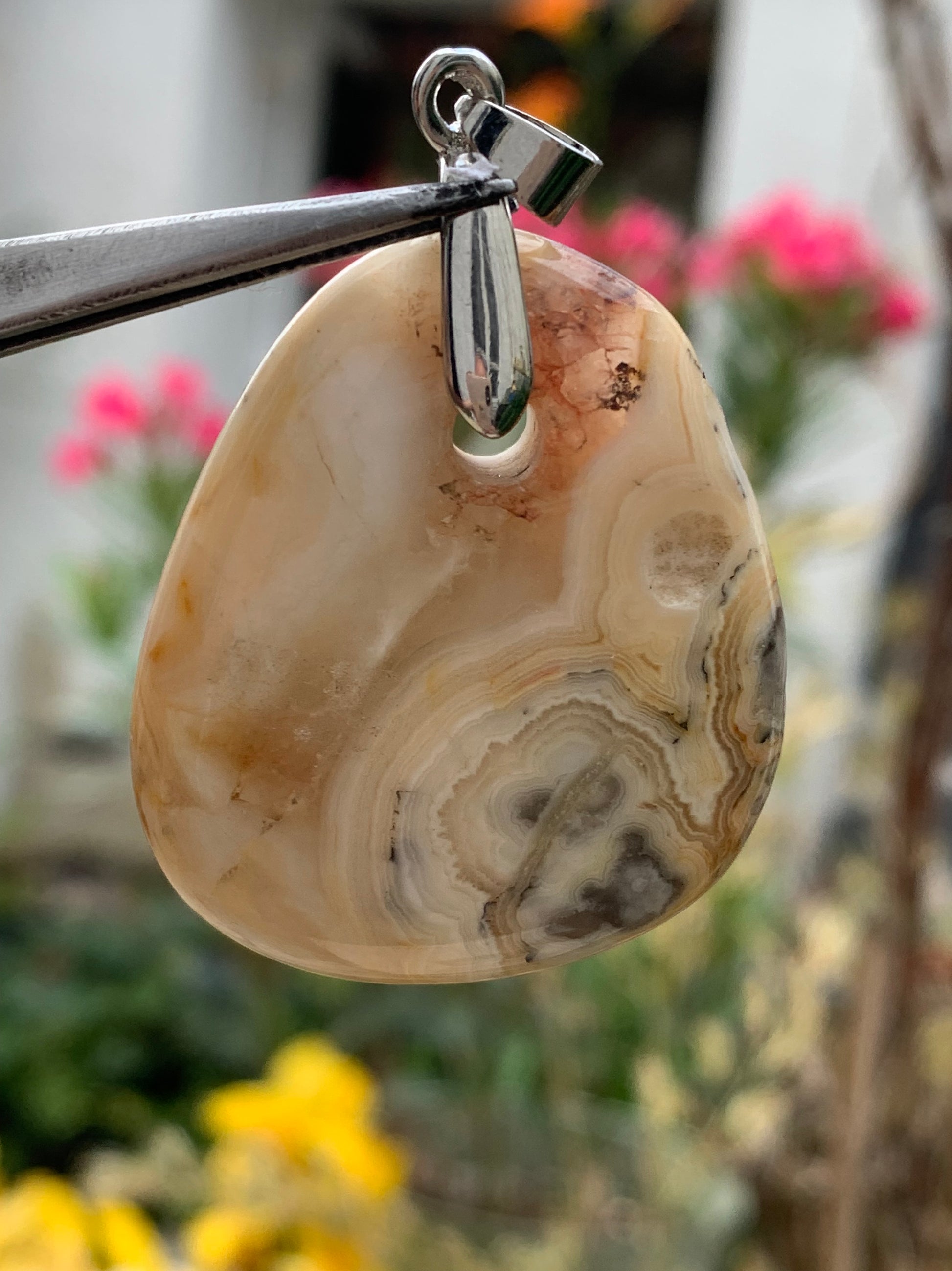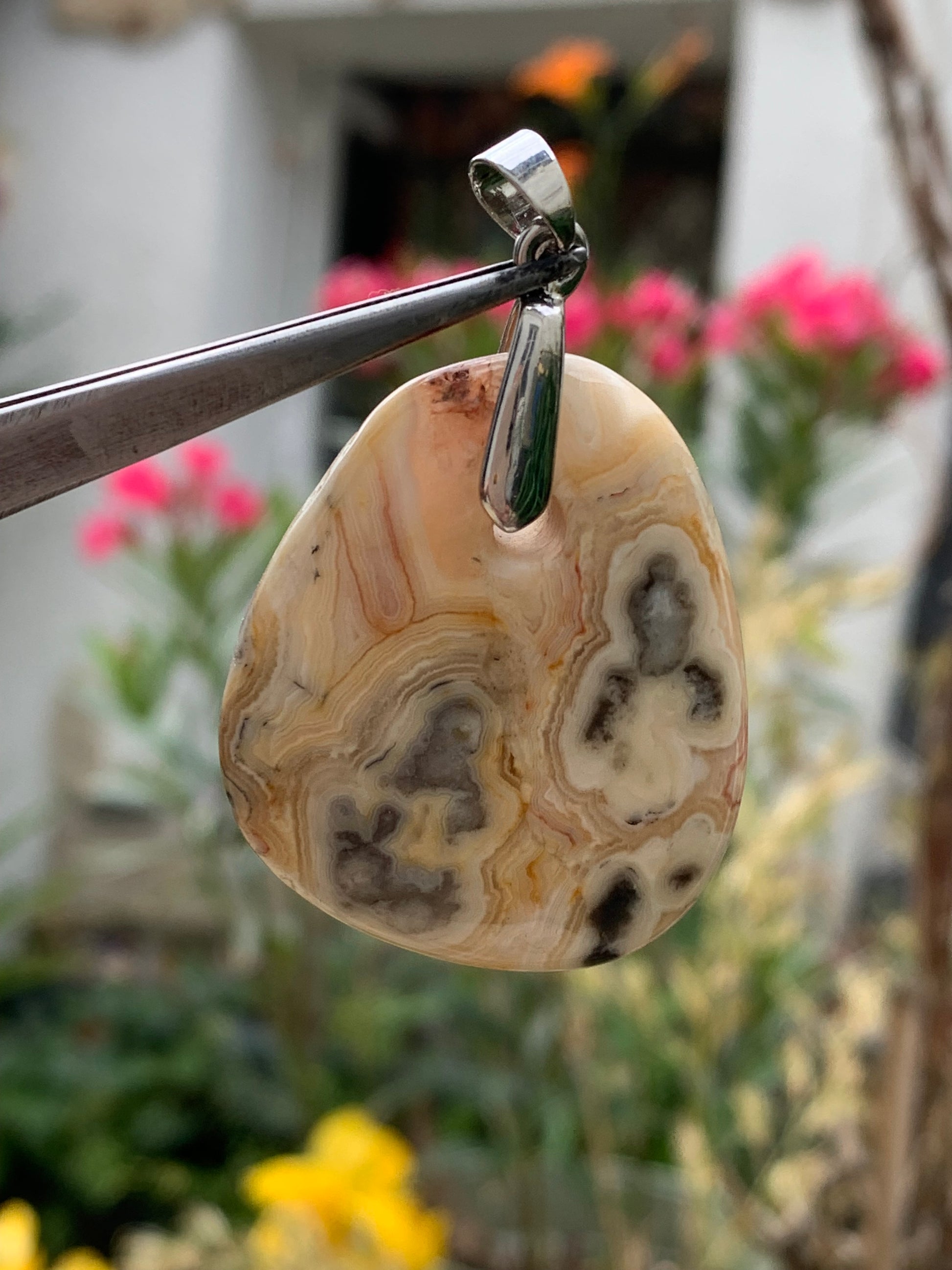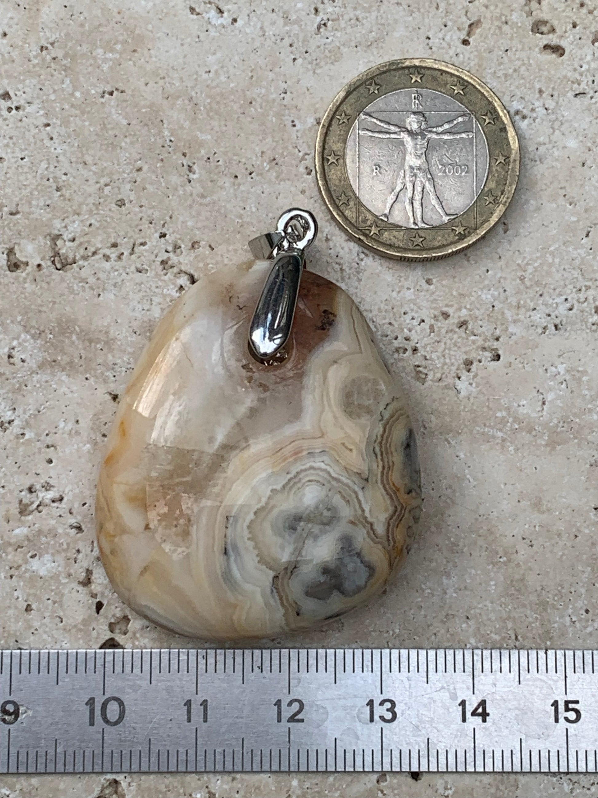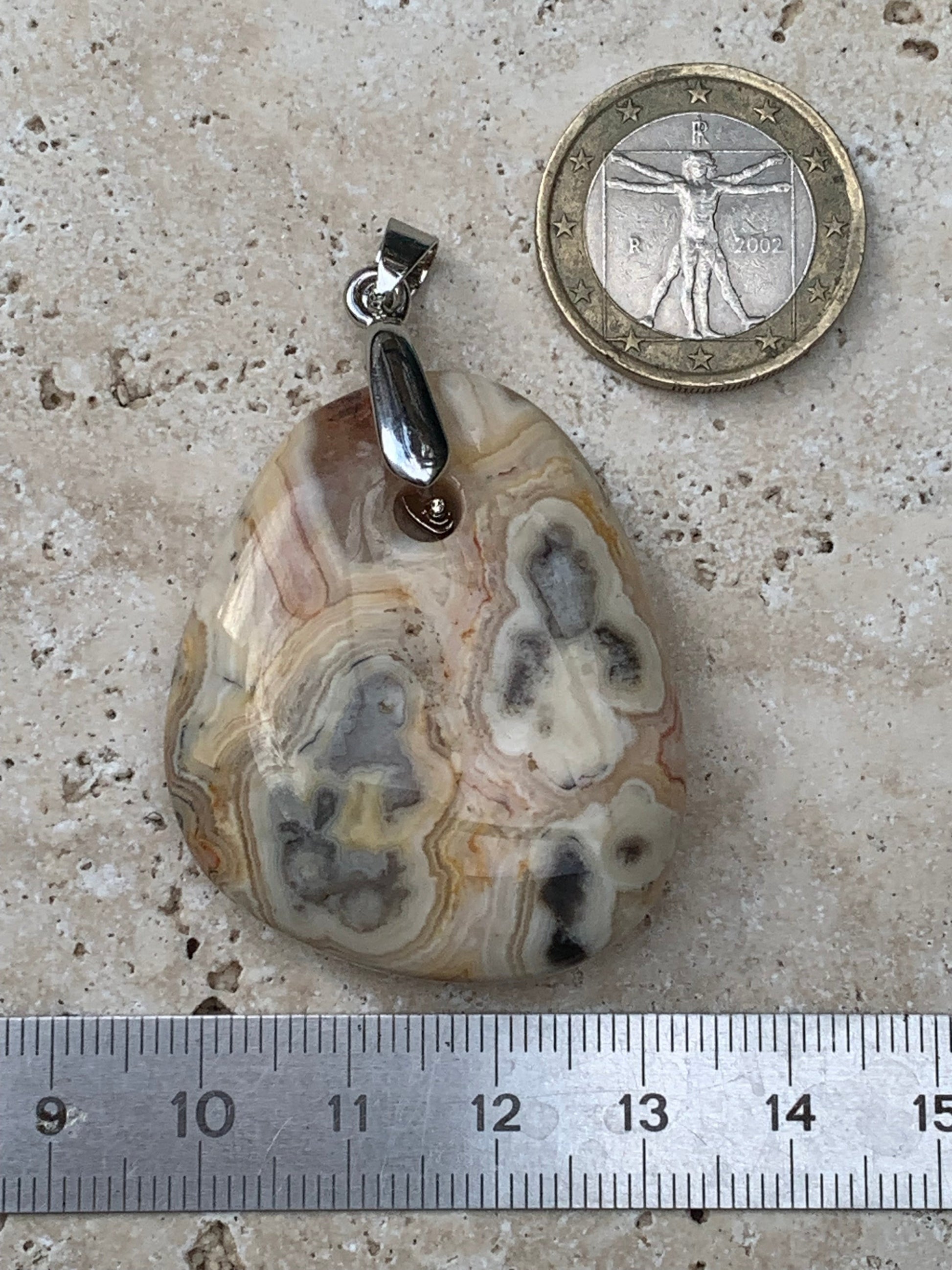 Agate crazy lace, galet percé de 42mm de hauteur x35 de largeur x12 d'épaisseur. Vendu avec cordon réglable !