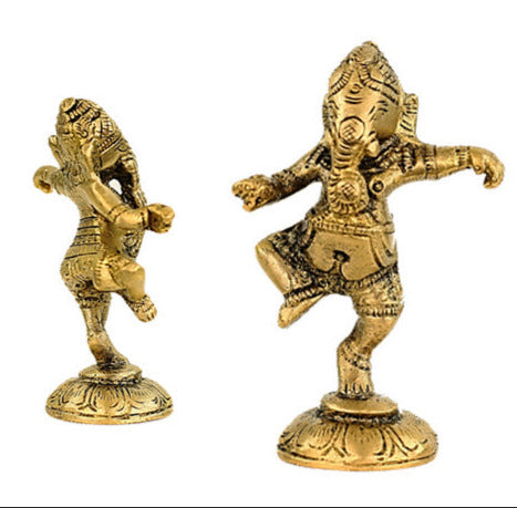 Ganesh 'dansant' fait en métal (laiton), de 10x4,5 centimètres. Parfait dans un Autel, Collection, Exposition...!