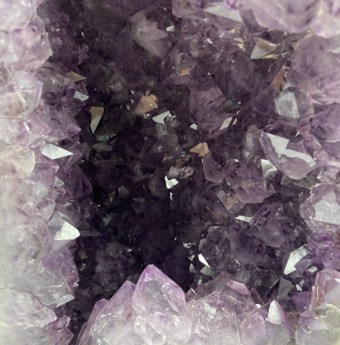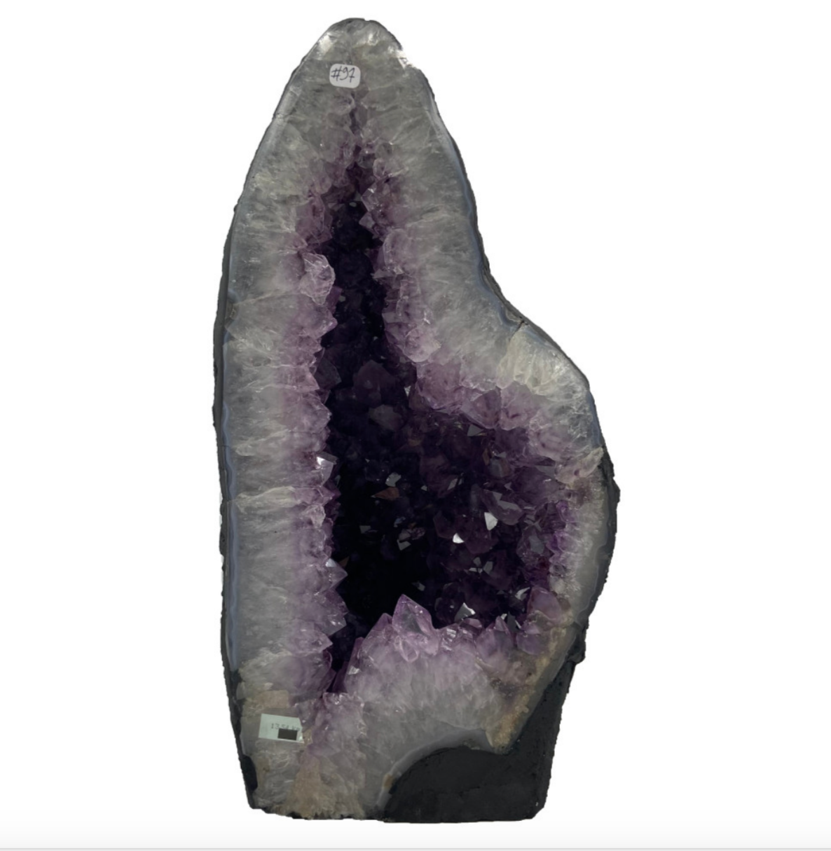 Géode d'améthyste 'cathédrale' de 13,54 kilogrammes, 37 x 19 centimètres. Superbe qualité AA, en provenance du Brésil. Incroyables effets positifs pour vos collections, expositions...parfait !