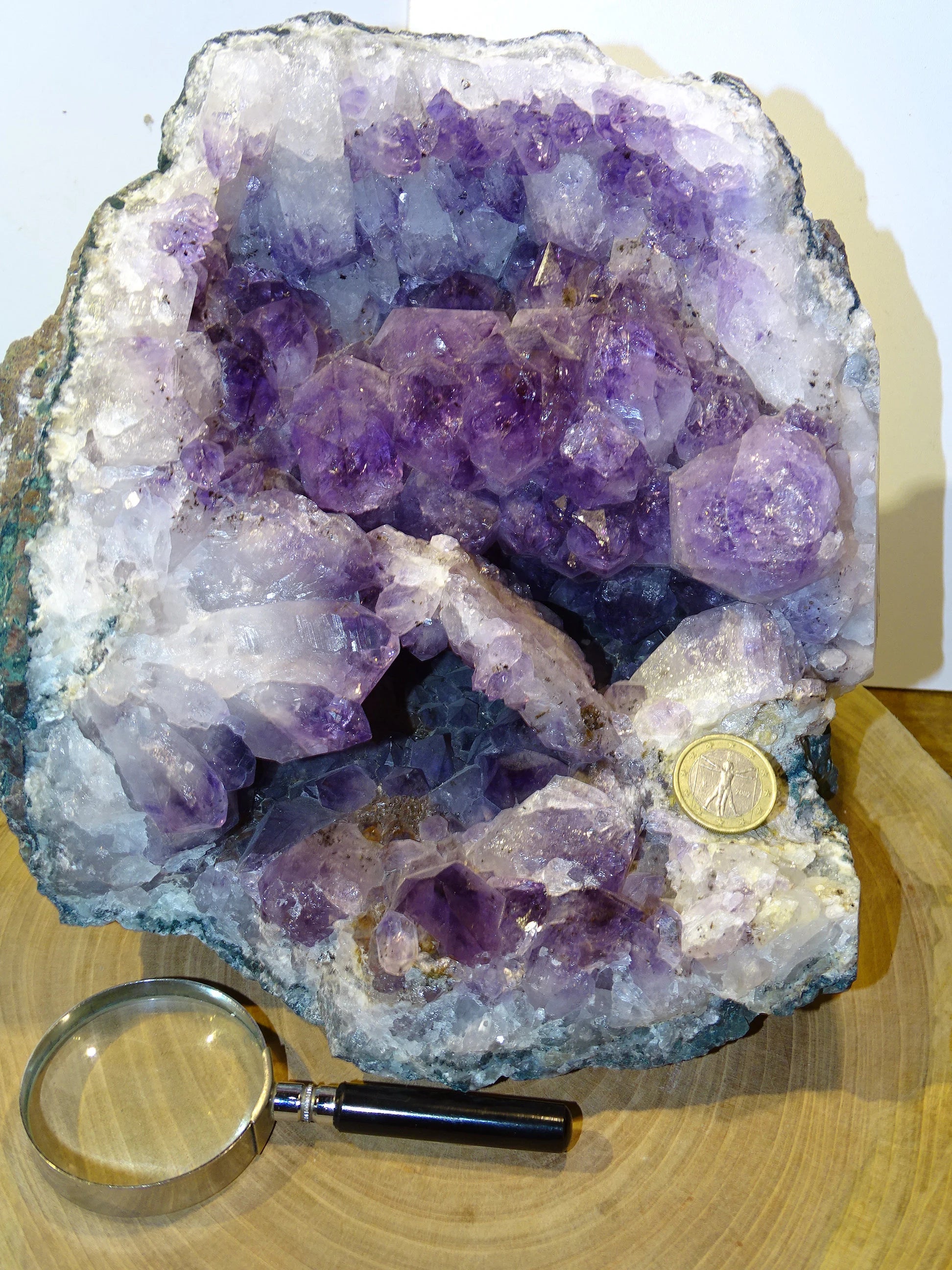 géode d'améthyste de 5,3 kilogrammes, 18x20x17 centimètres. Superbe qualité AA, en provenance du Brésil. Incroyables effets positifs pour vos collections, expositions...parfait !