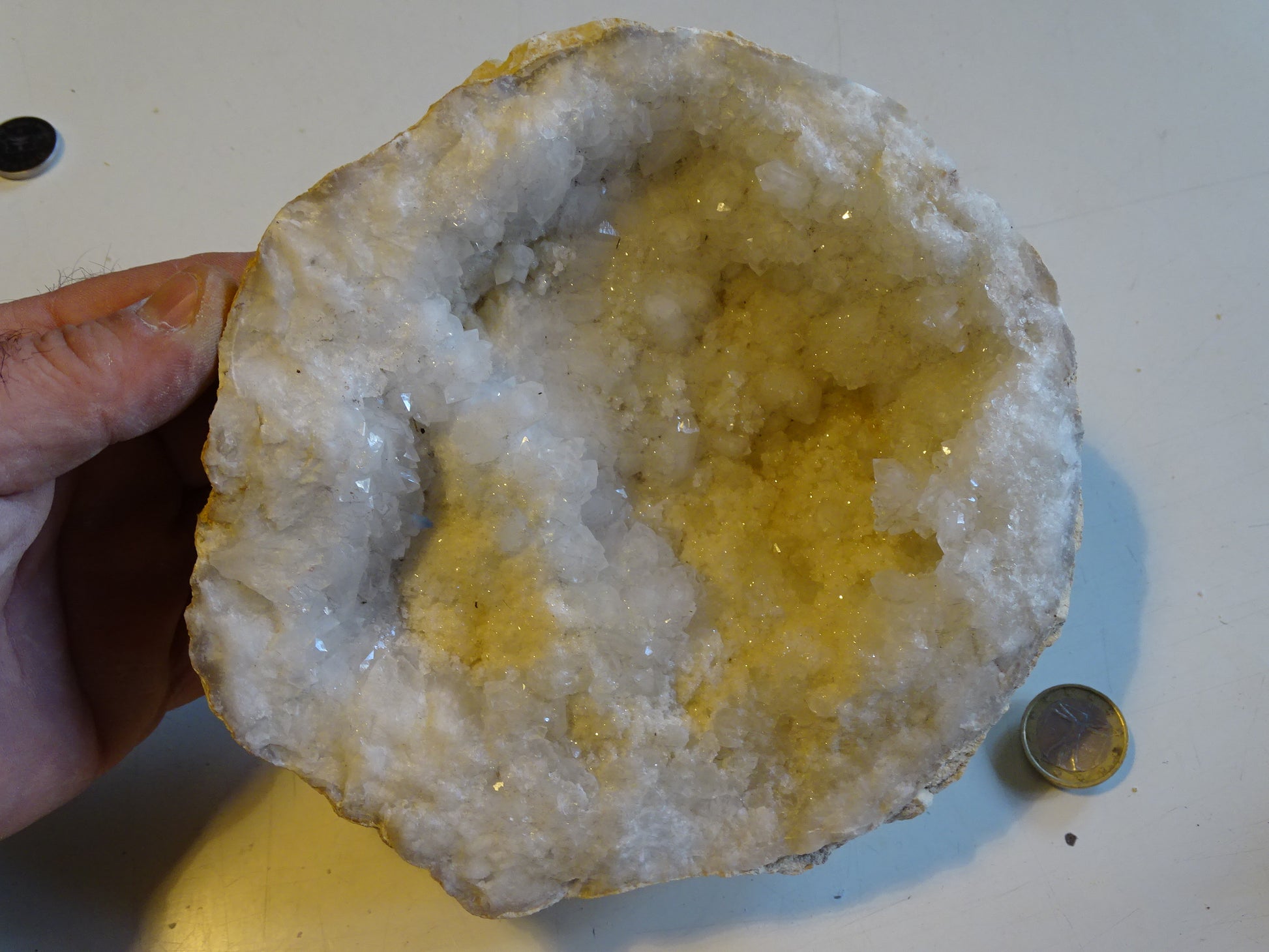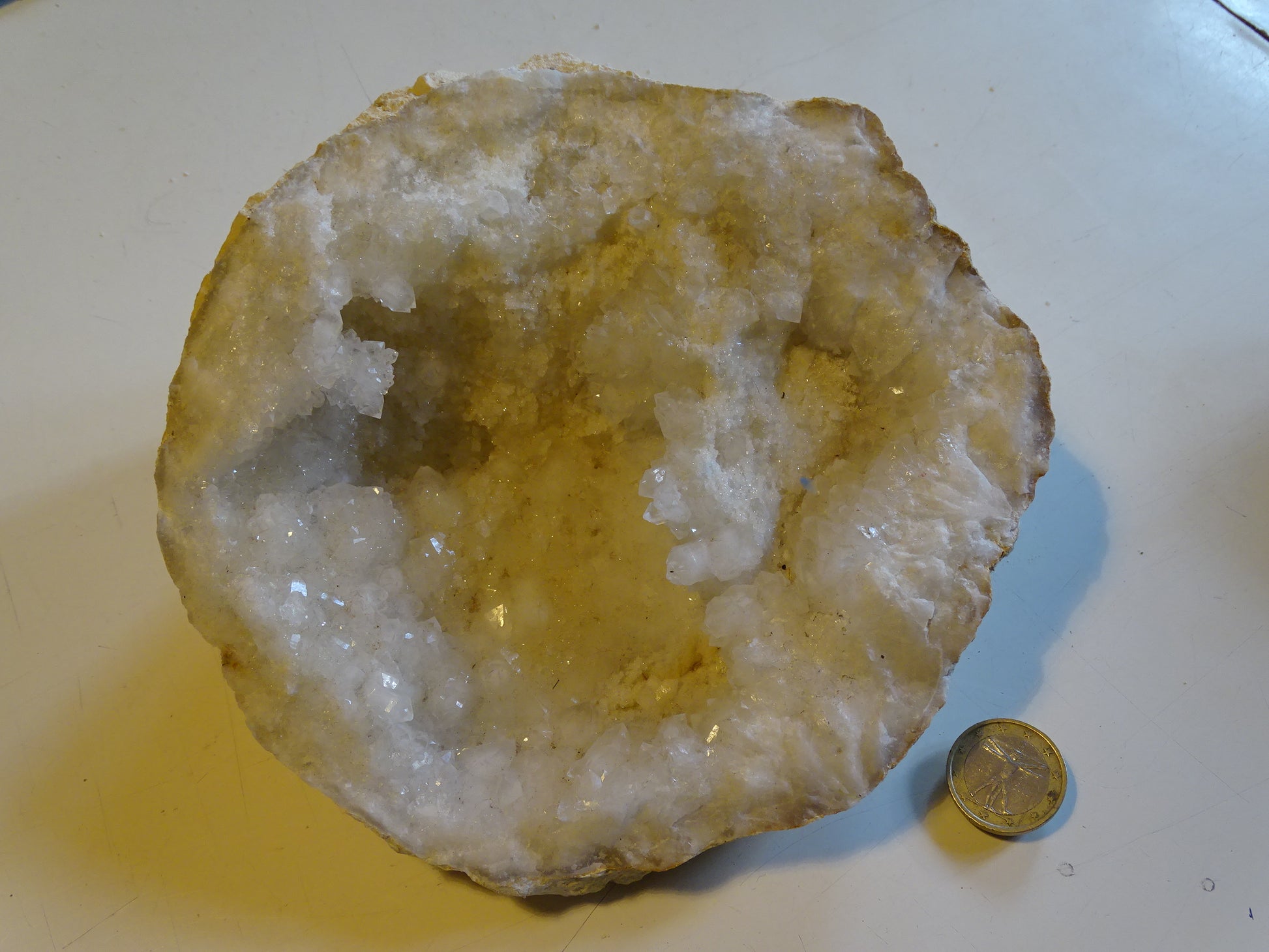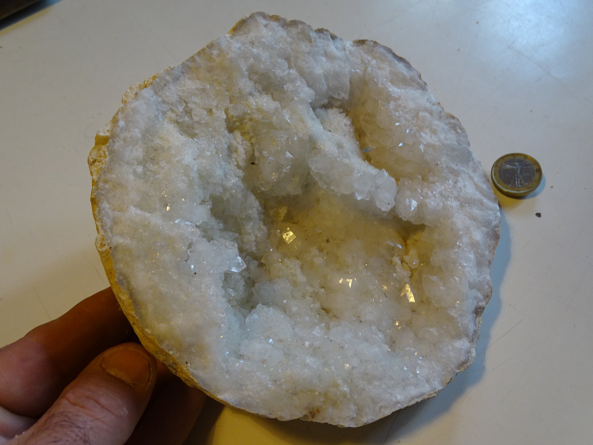 Géode en quartz/ Cristal de roche naturel de 17x17x9 centimètres - 1 610 grammes. Magnifique pièce presque ronde !