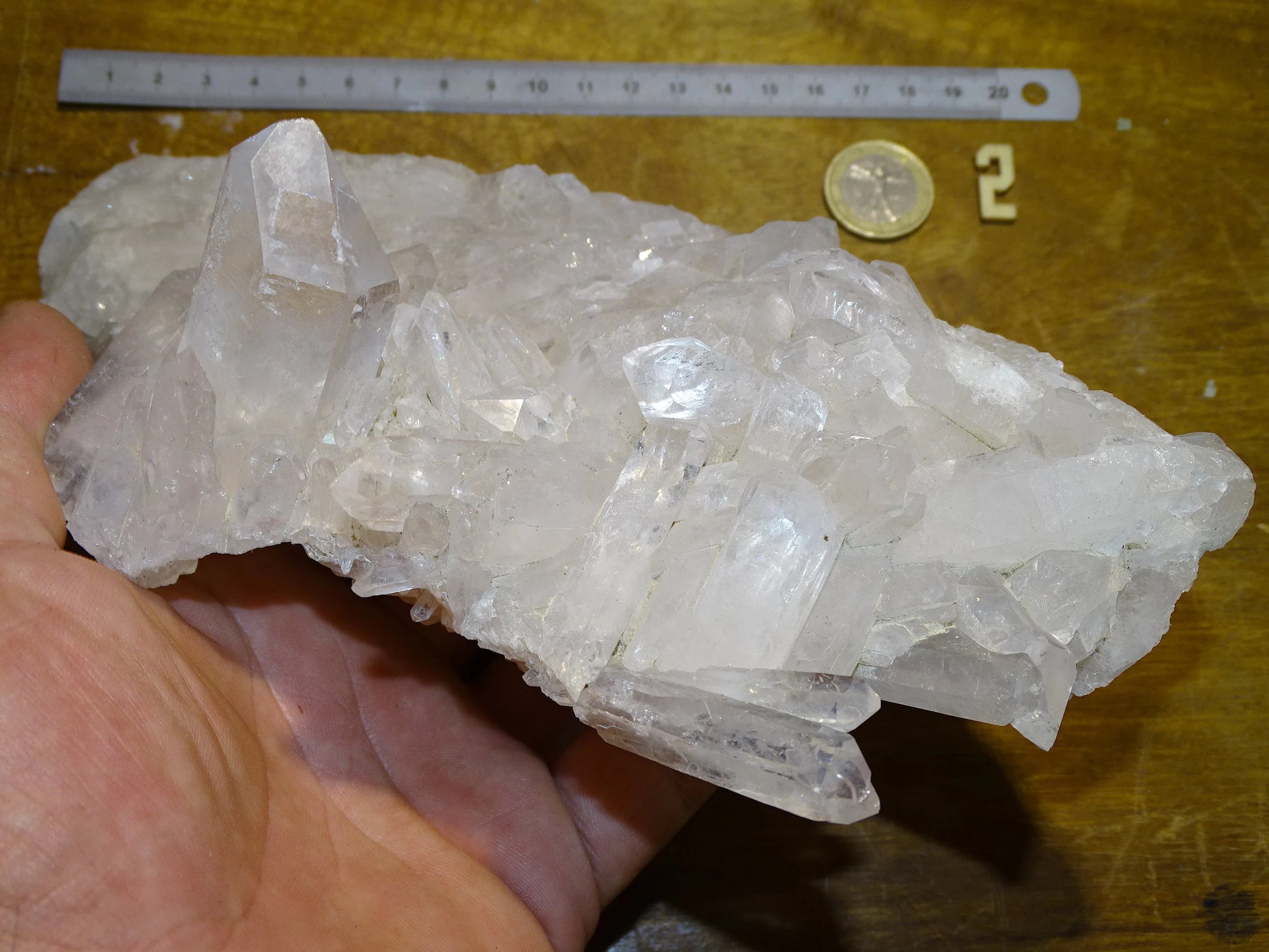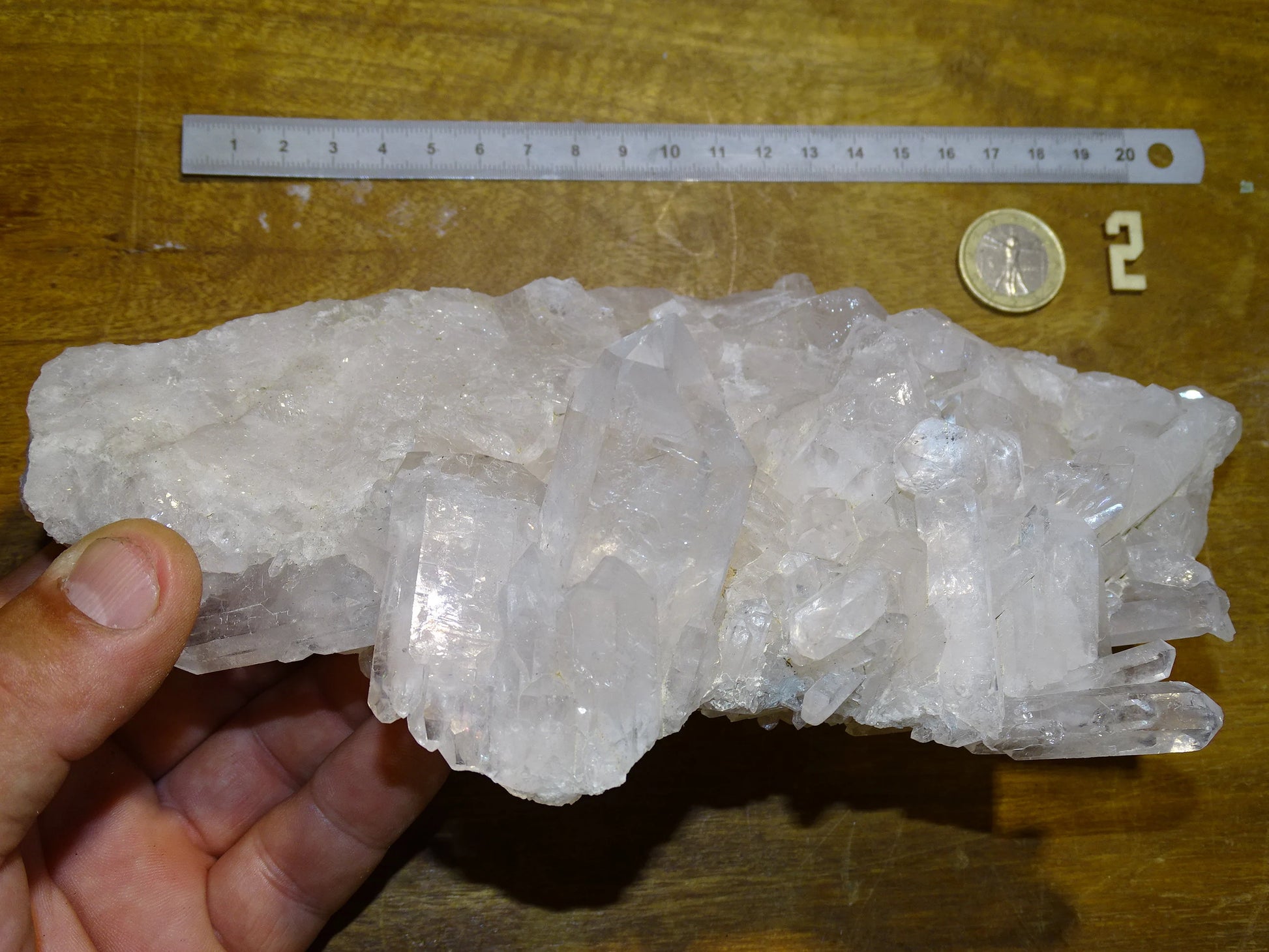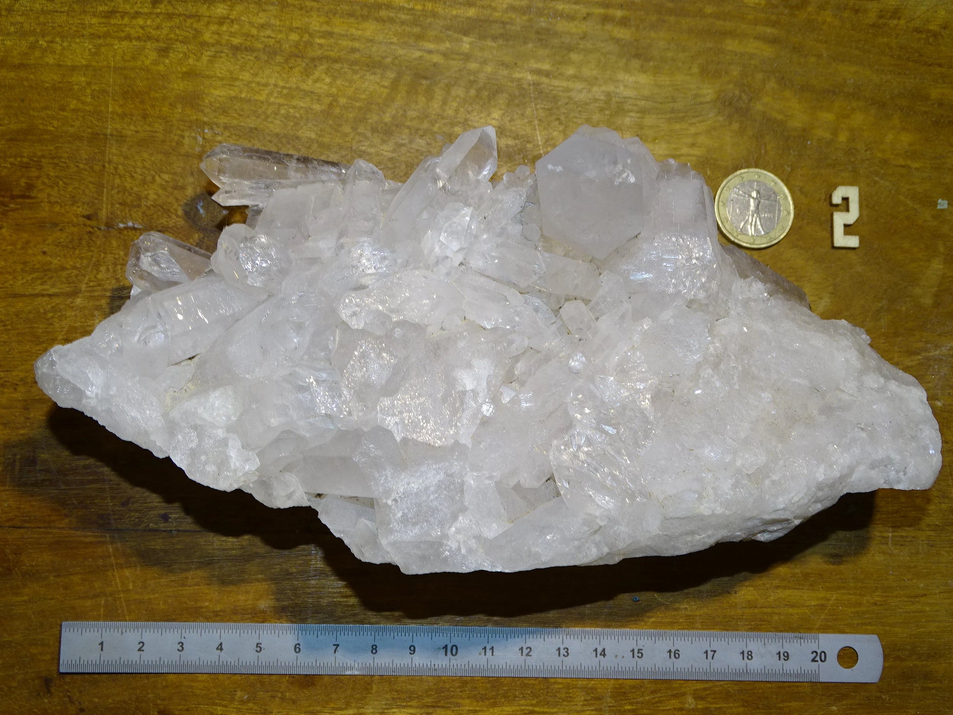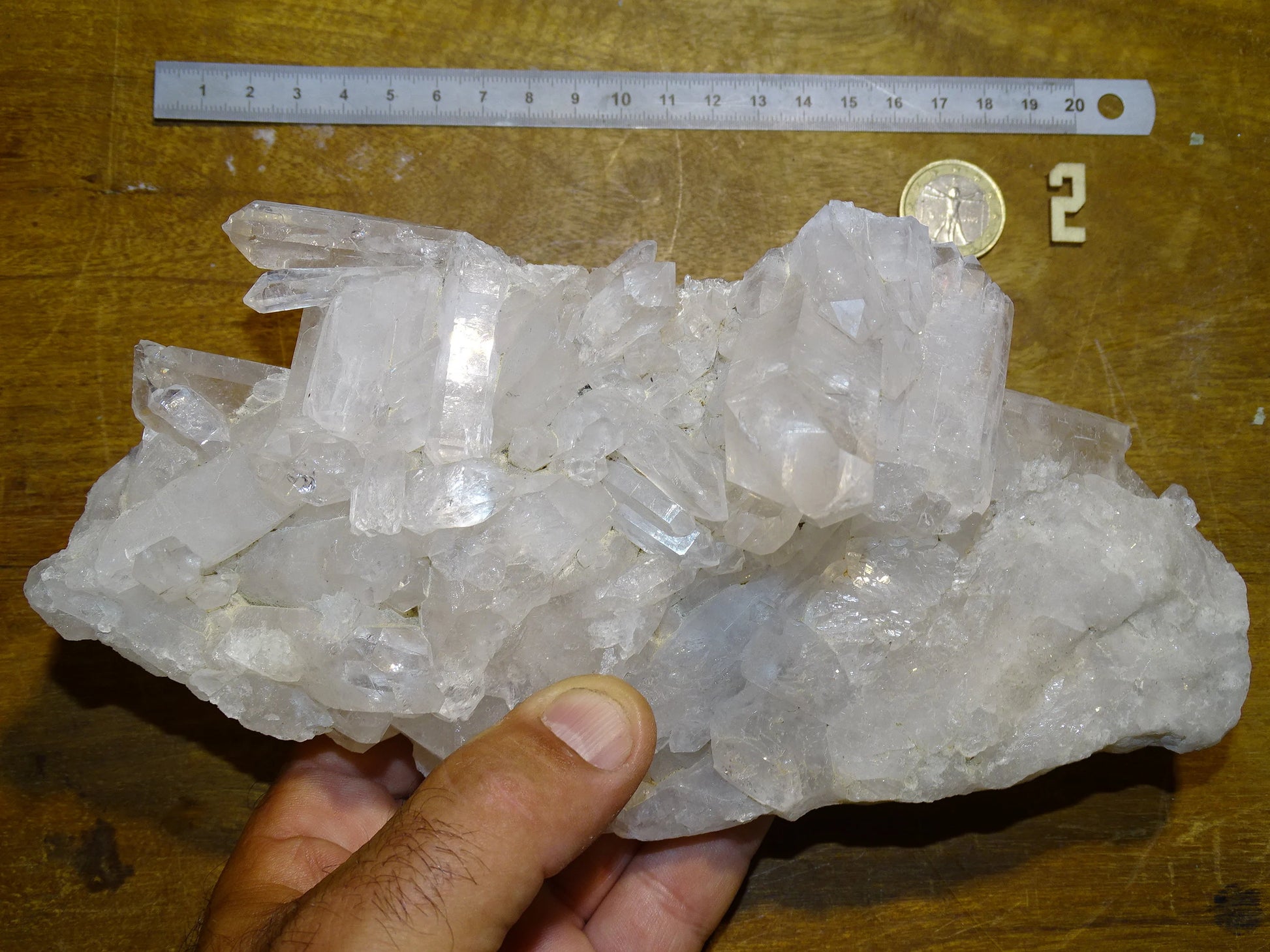 Druse ou Macle en quartz/ Cristal de roche naturel de 21 L x 11 l x 9 cm hauteur - 1150 grammes. Magnifique spécimen avec un gros cristal dressé en avant !