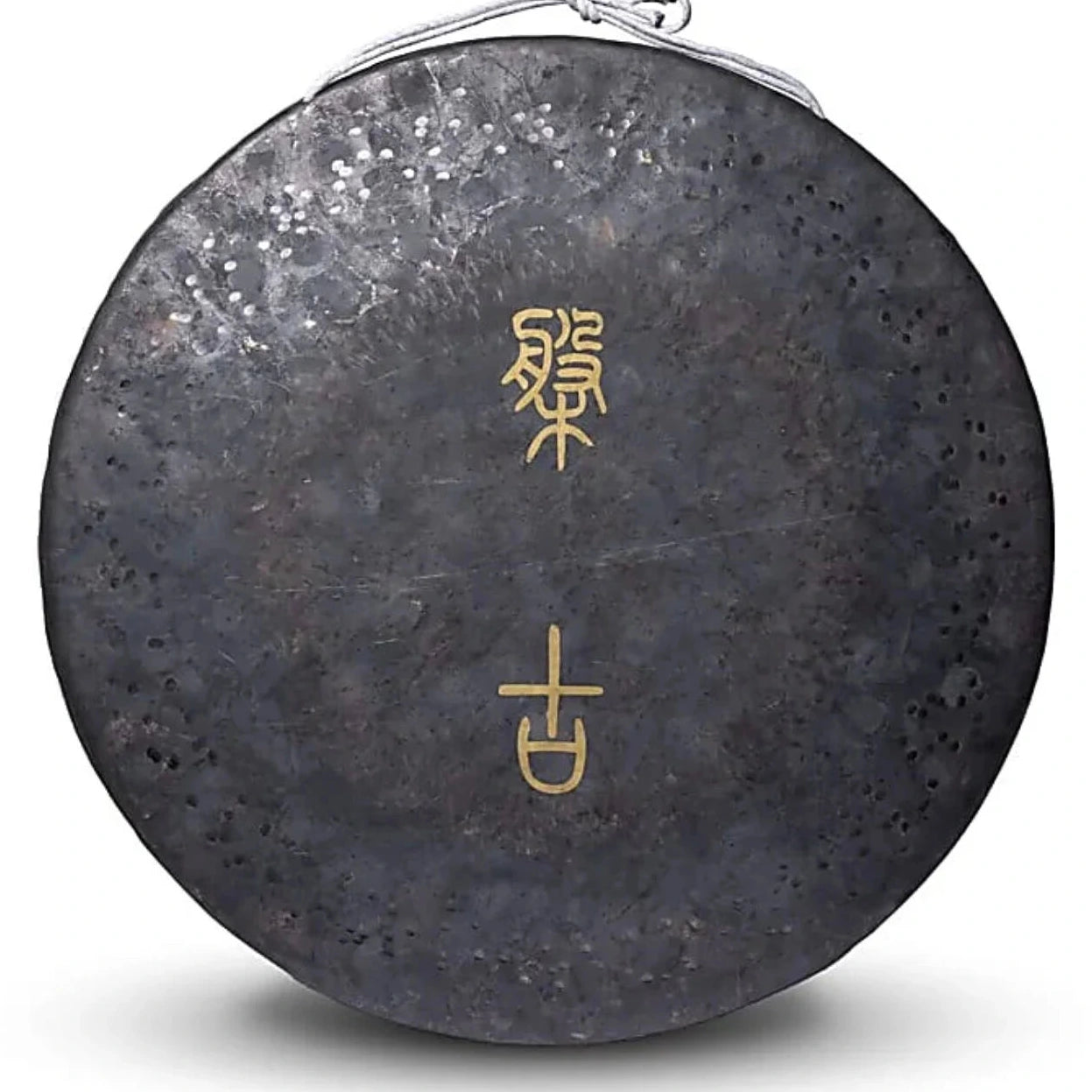 Le Gong tonalité Terre est un gong non plaqué. Voici à quoi ressemble un gong lorsqu'il sort de son moule. La plupart des gongs chinois ont cette couleur lorsqu'ils sortent de leur moule de fonte.