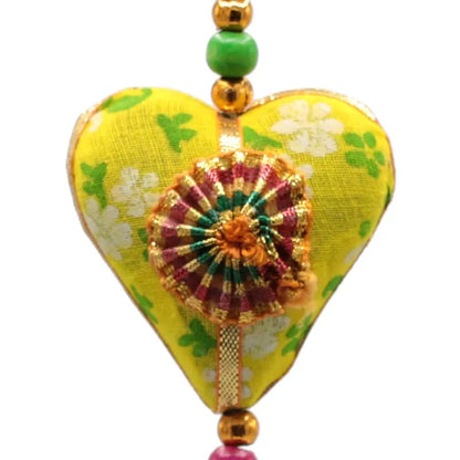 🪔 Type/ Nom : Guirlande colorée avec 5 coeurs de coton colorés - Avec une clochette à son extrémité - Les couleurs et les motifs varient et peuvent différer suivant les arrivages mais seront fidèles aux photos