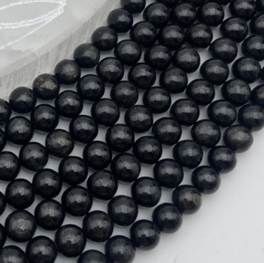 Hypersthène, perles rondes de 6 ou 8 mm. Vendu en fil de perle 38/39 cm, en bracelet de 17 à 21cm, en collier de 45 ou sautoir de 60cm. Qualité AA à AAA, superbes perles à l'effet puissant !