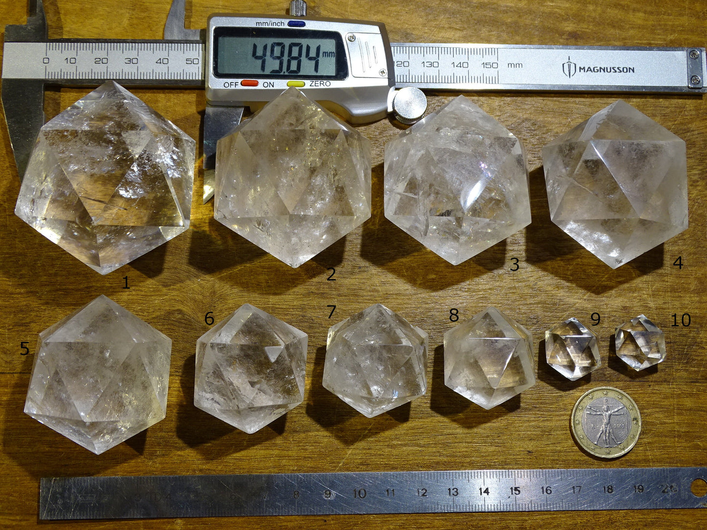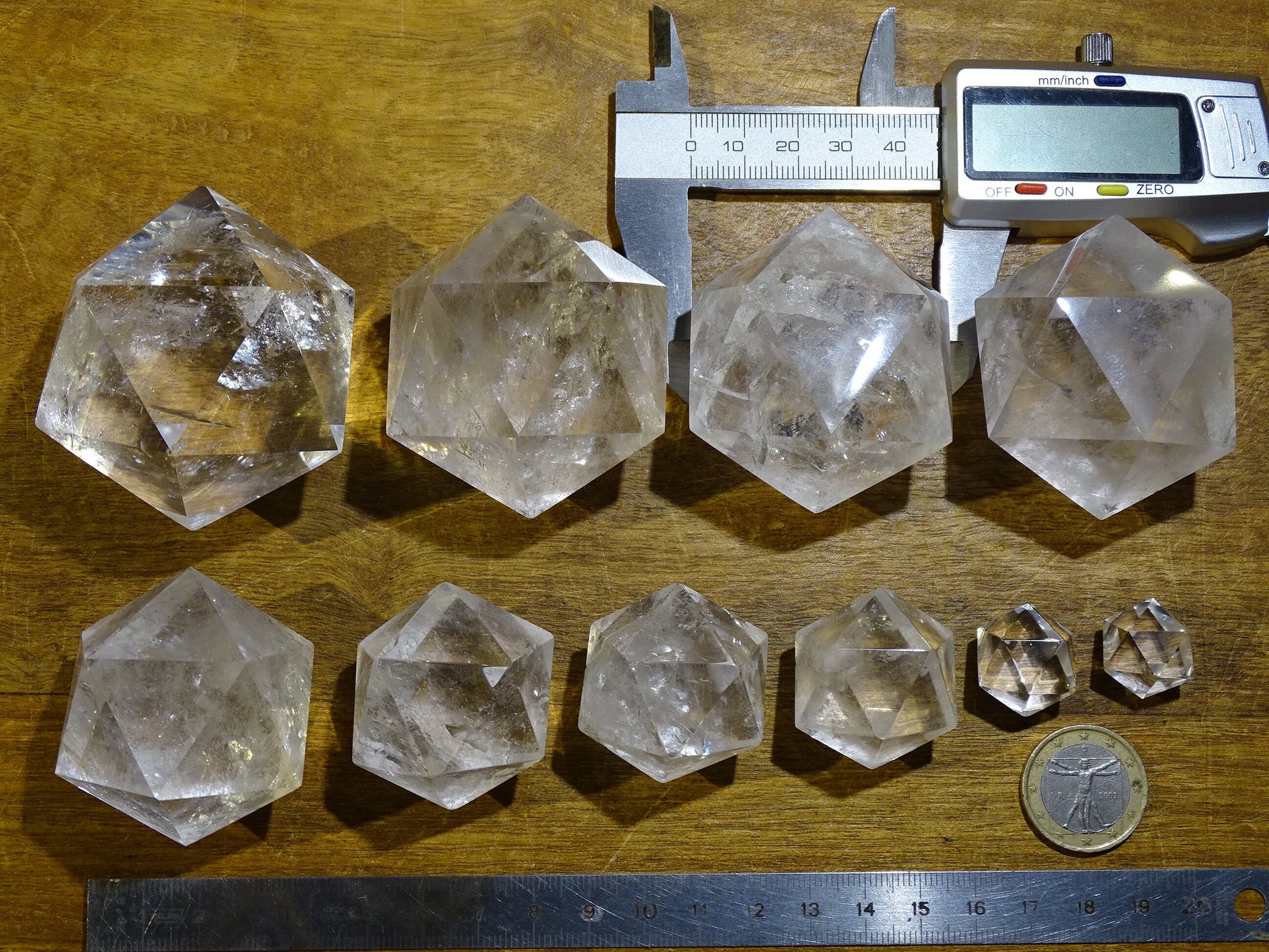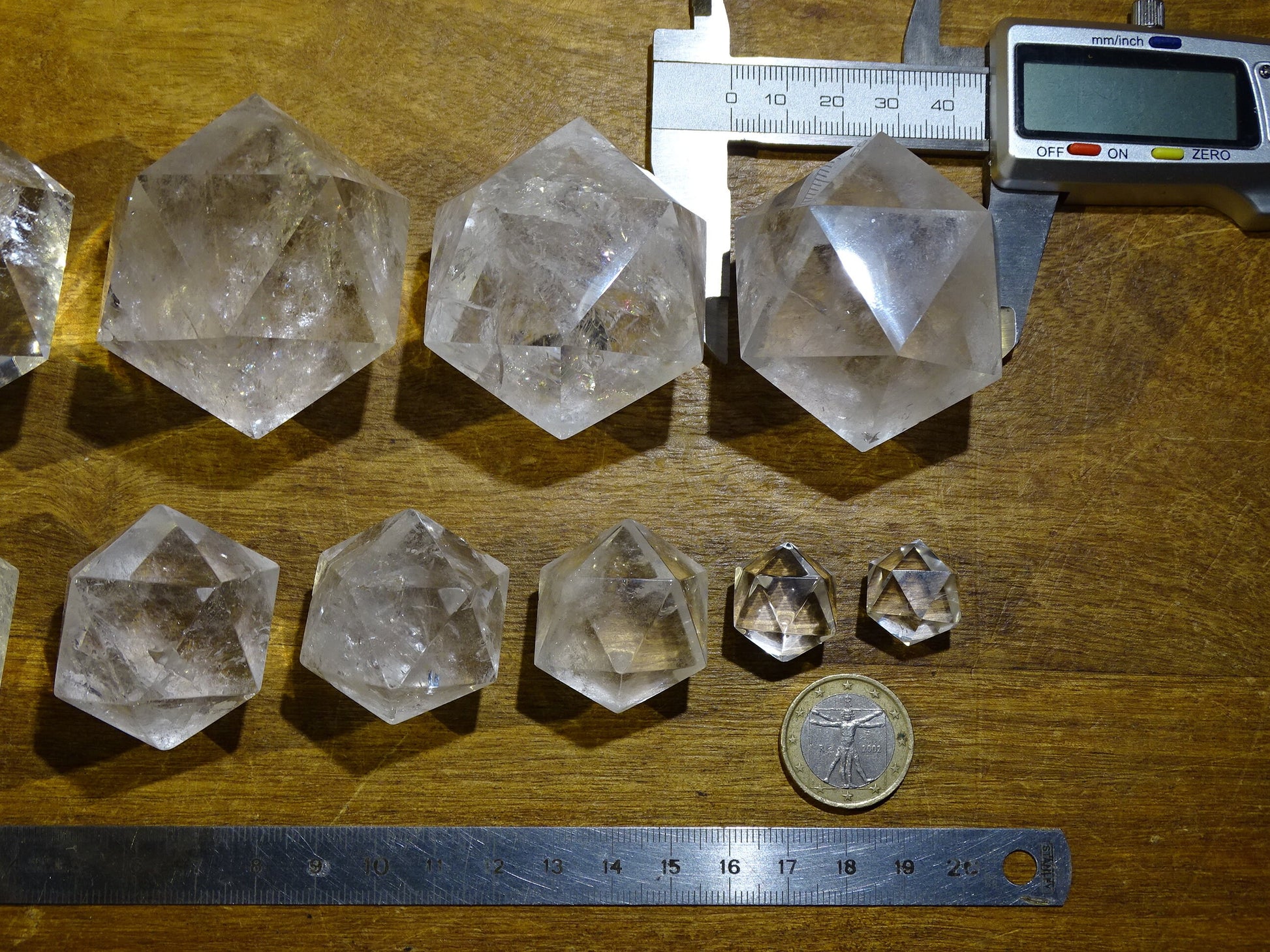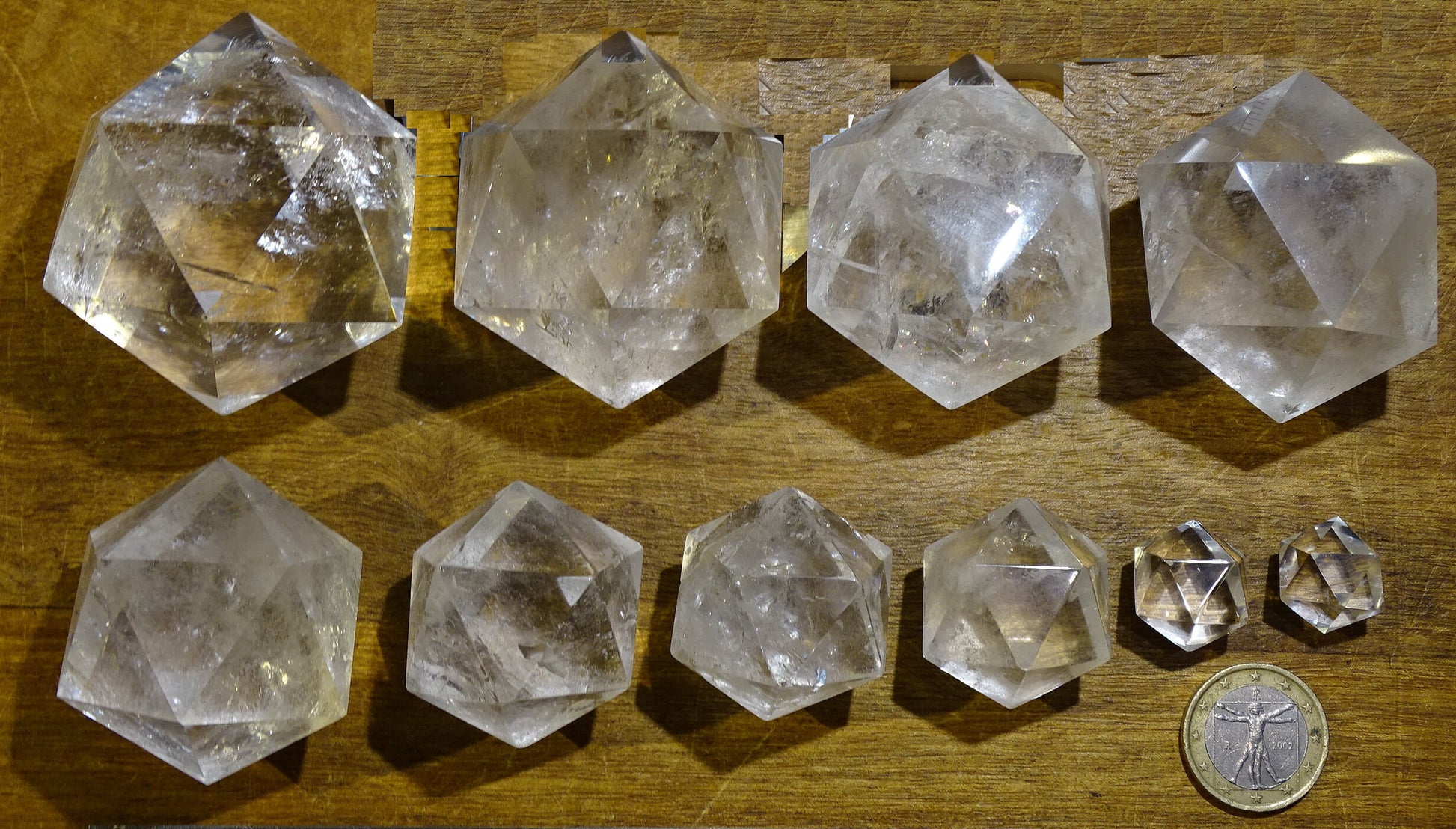 Icosaèdre en cristal de roche, un des 5 Solids/ Solides de Platon, taille S à XL, vente à l'unité. Dimensions des pièces : environ 1,5 à 6 cm. Qualité A à AAA ! Parfait pour l'étude de la géométrie sacré et ses applications ! (Copie)