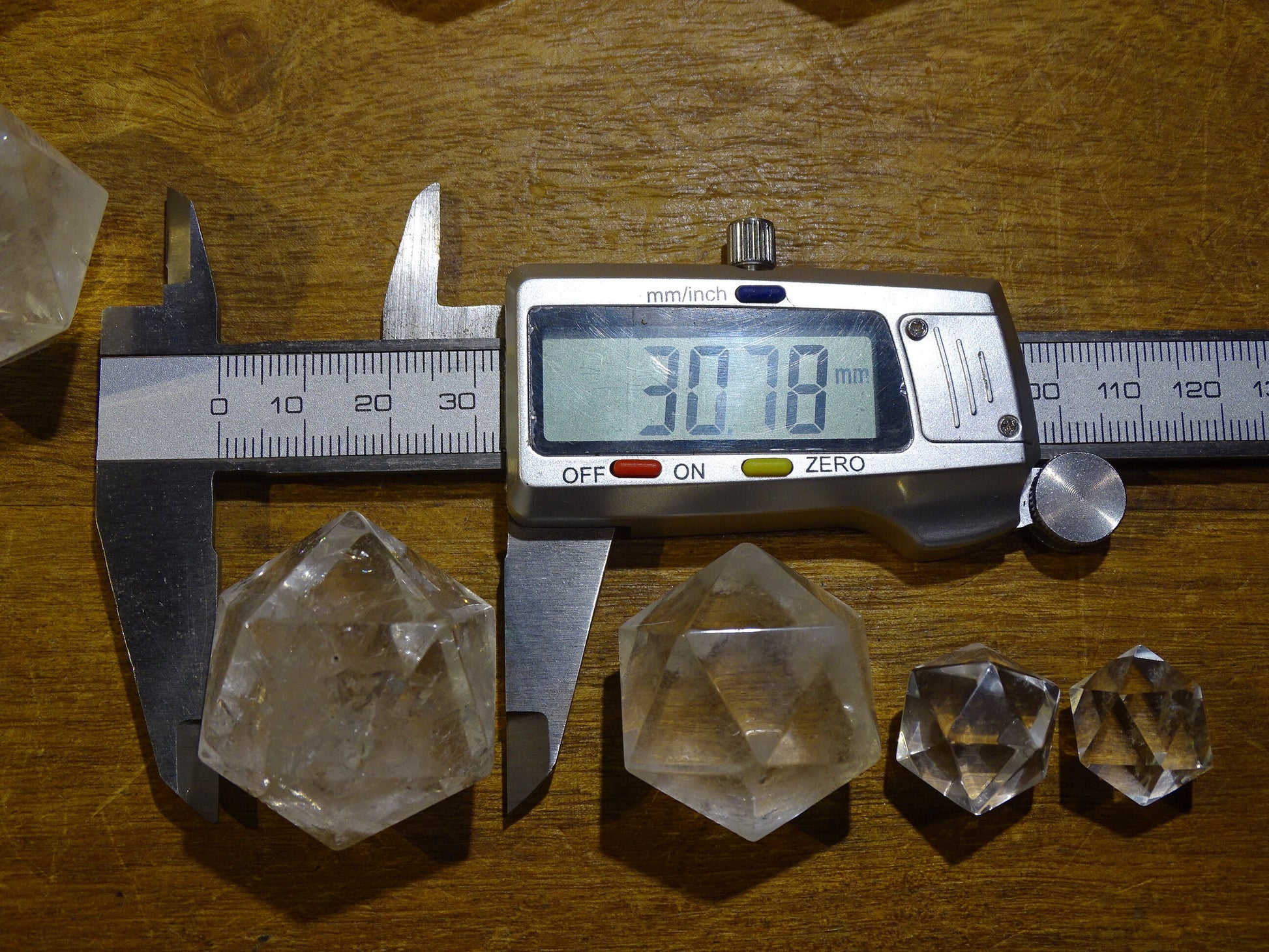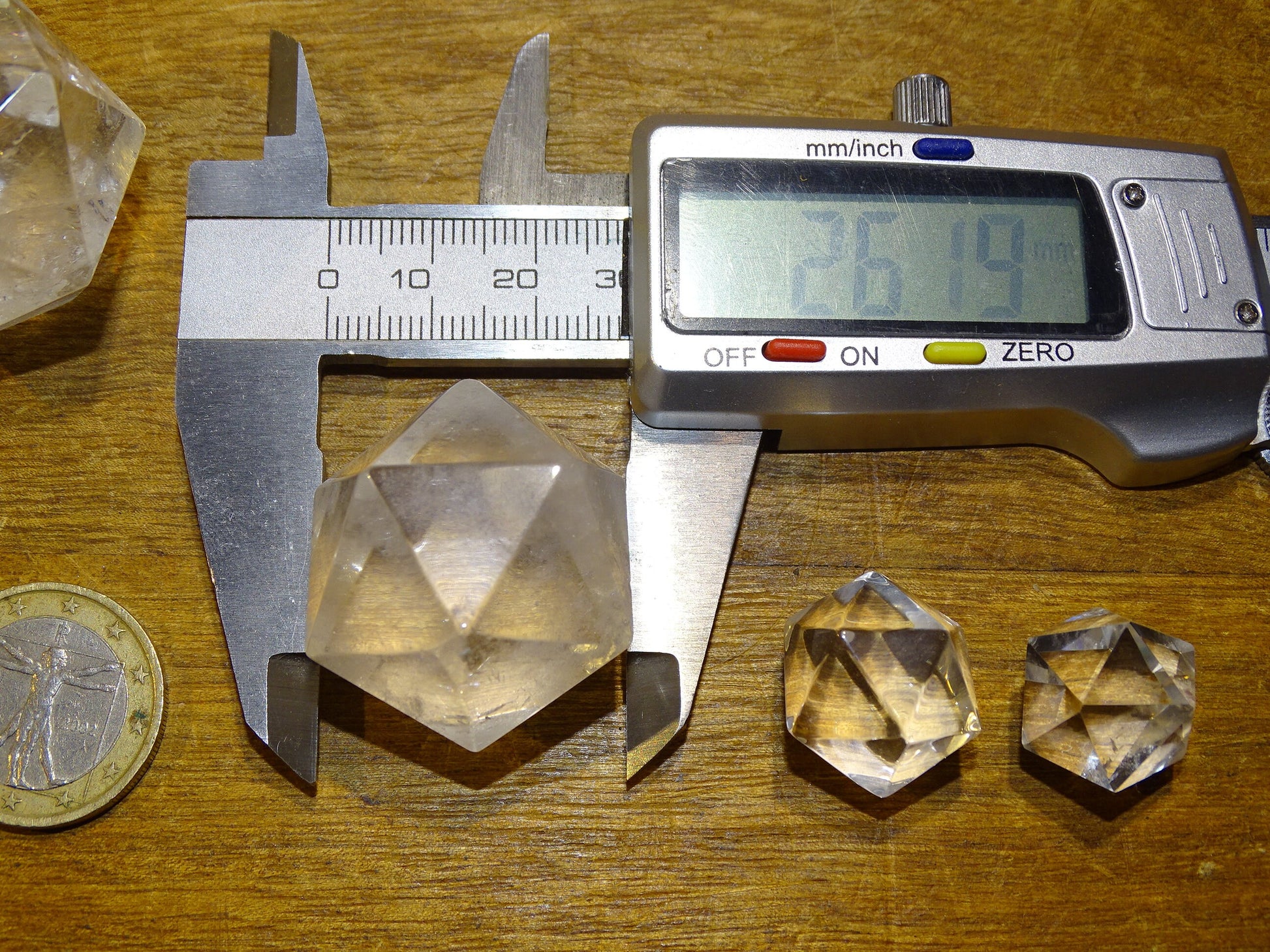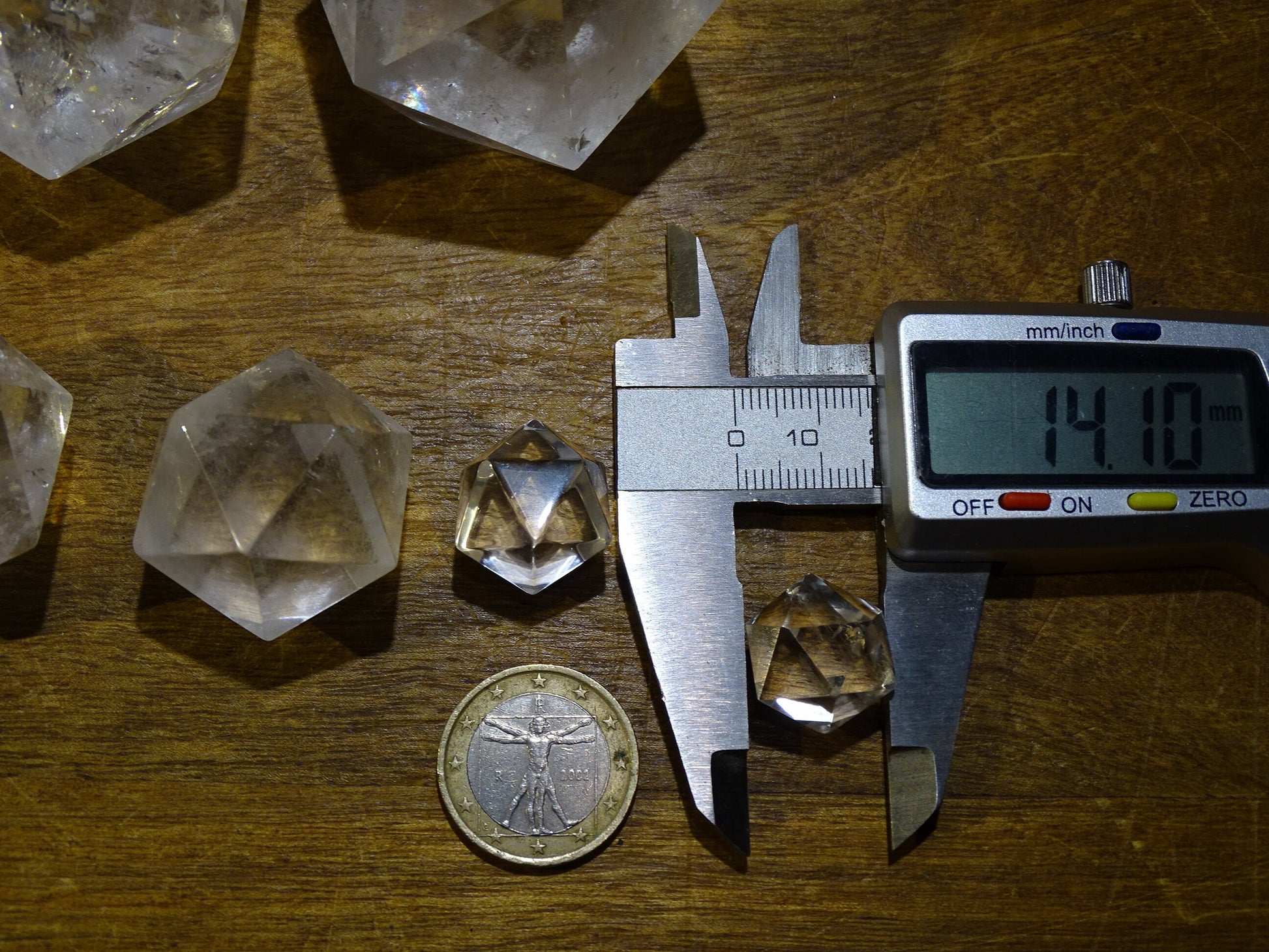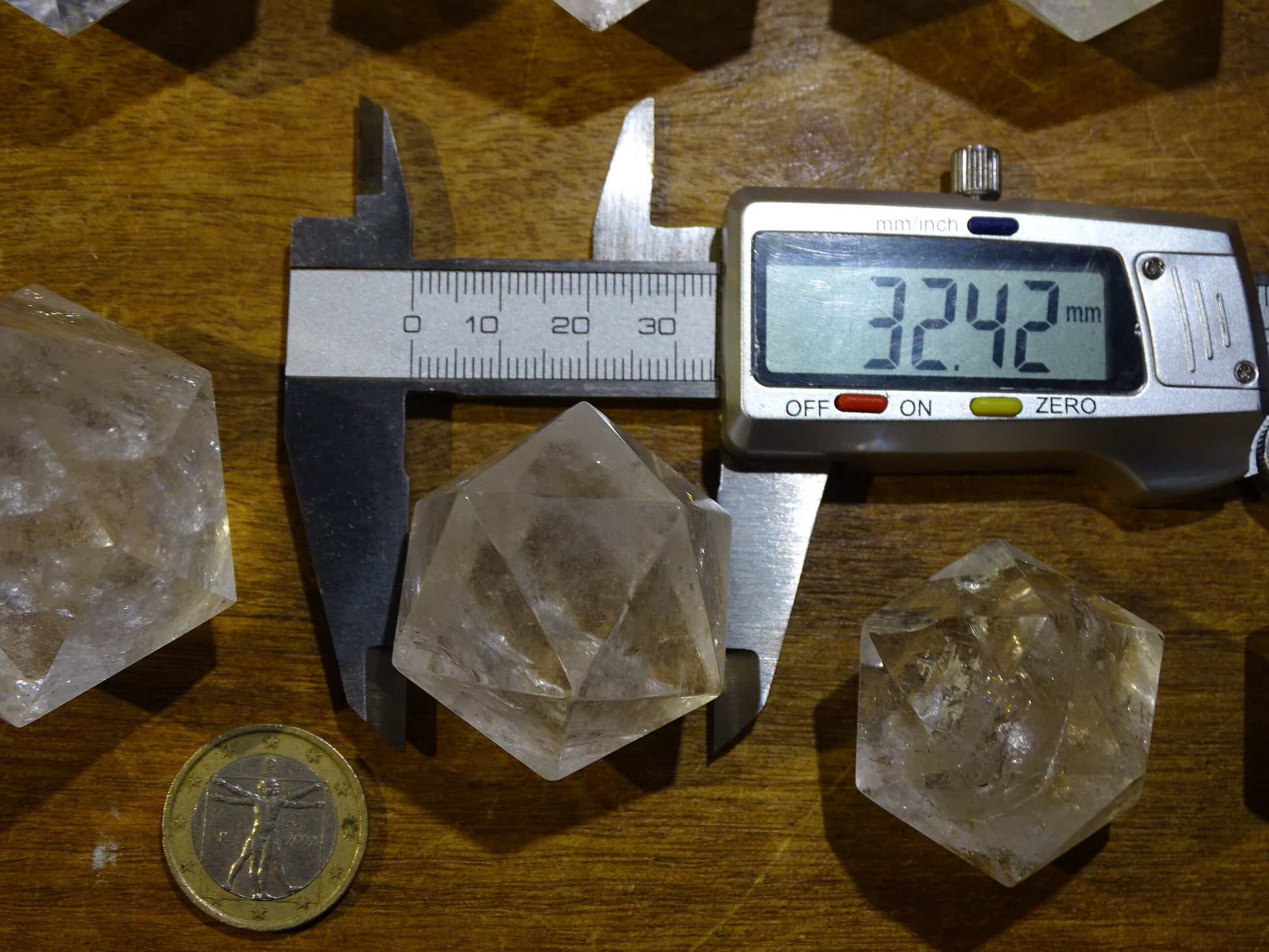 Icosaèdre en cristal de roche, un des 5 Solids/ Solides de Platon, taille S à XL, vente à l'unité. Dimensions des pièces : environ 1,5 à 6 cm. Qualité A à AAA ! Parfait pour l'étude de la géométrie sacré et ses applications ! (Copie)