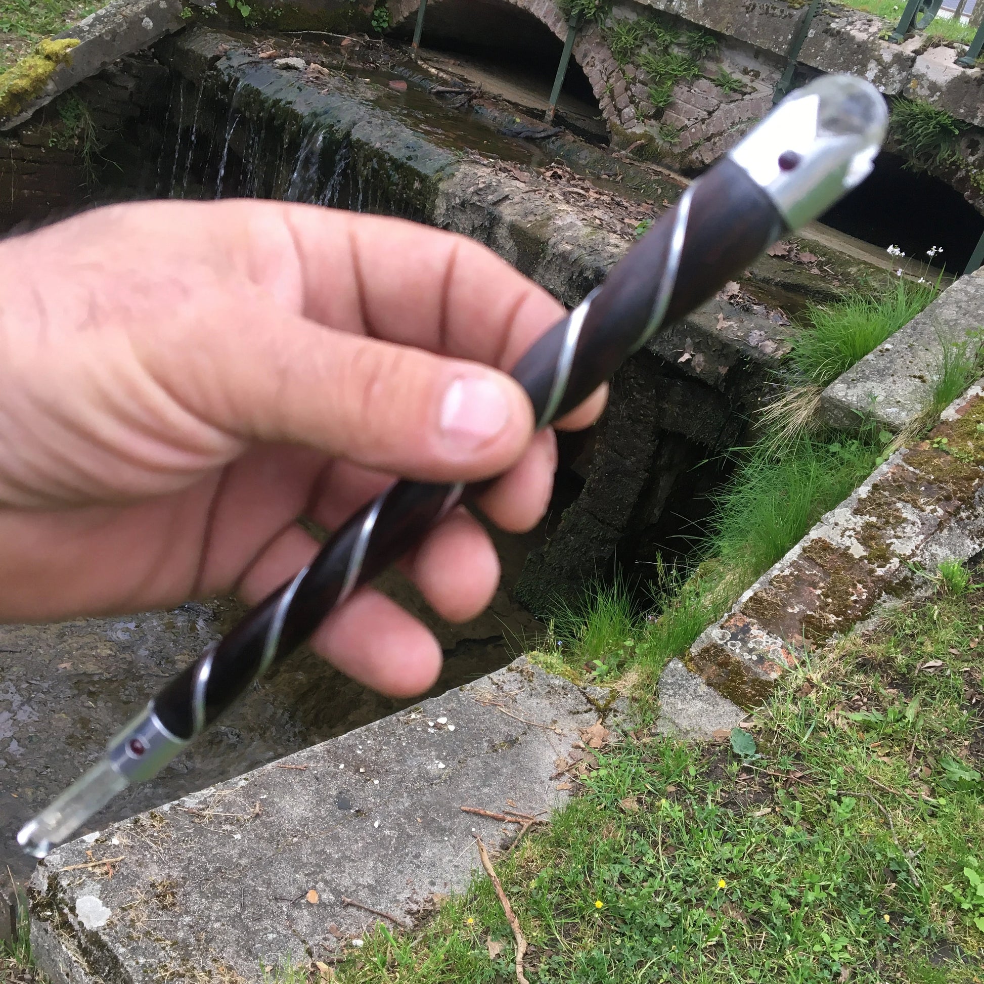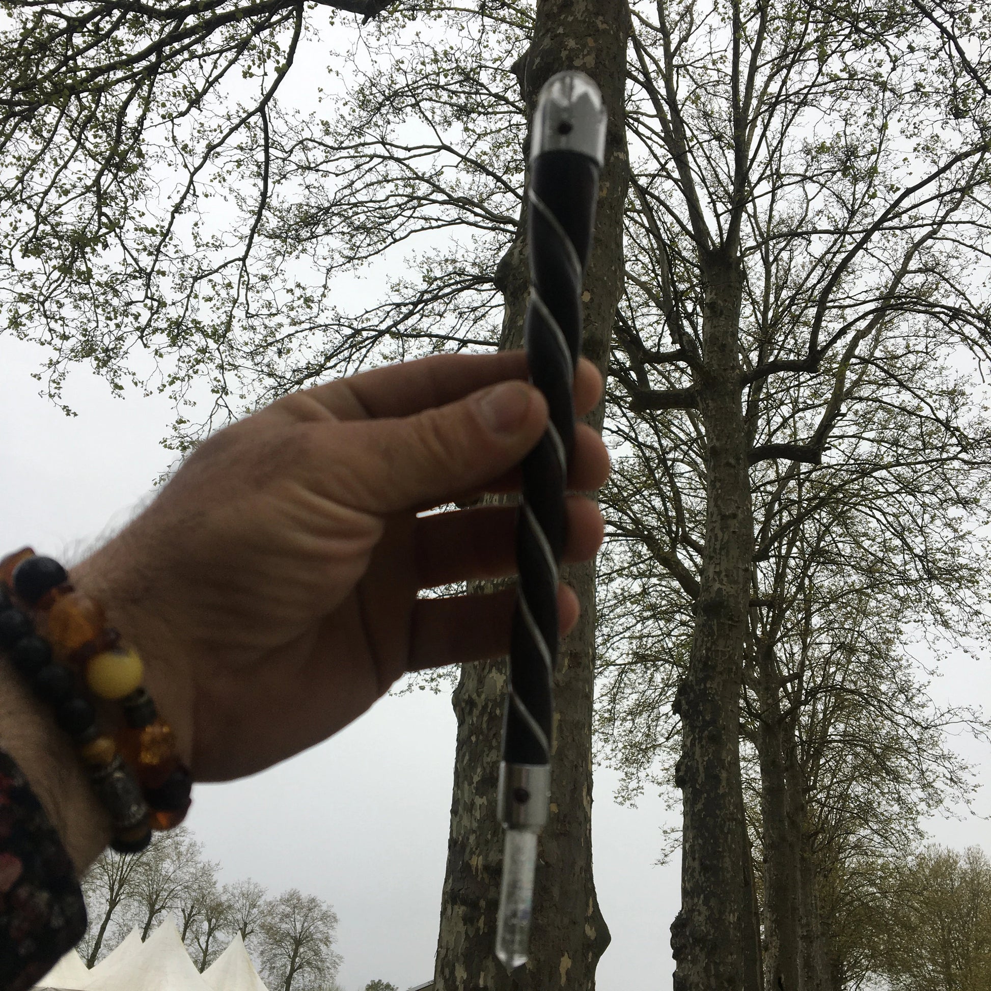 ✨ Superbe baguette en bois de rose, élégamment entrelacée d’un fil argenté !