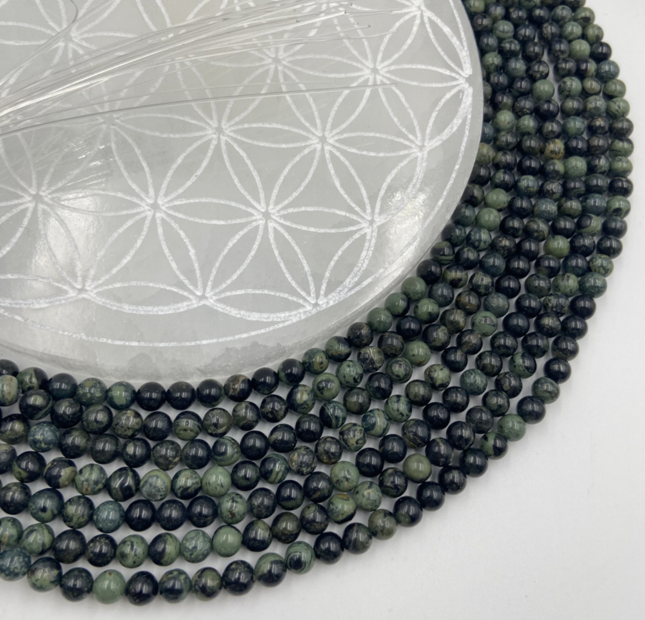 Jaspe Kambaba, perles rondes de 6 ou 8 mm. Vendu en fil de perle 38/39 cm, en bracelet de 17 à 21cm, en collier de 45 ou sautoir de 60cm. Qualité AA à AAA !