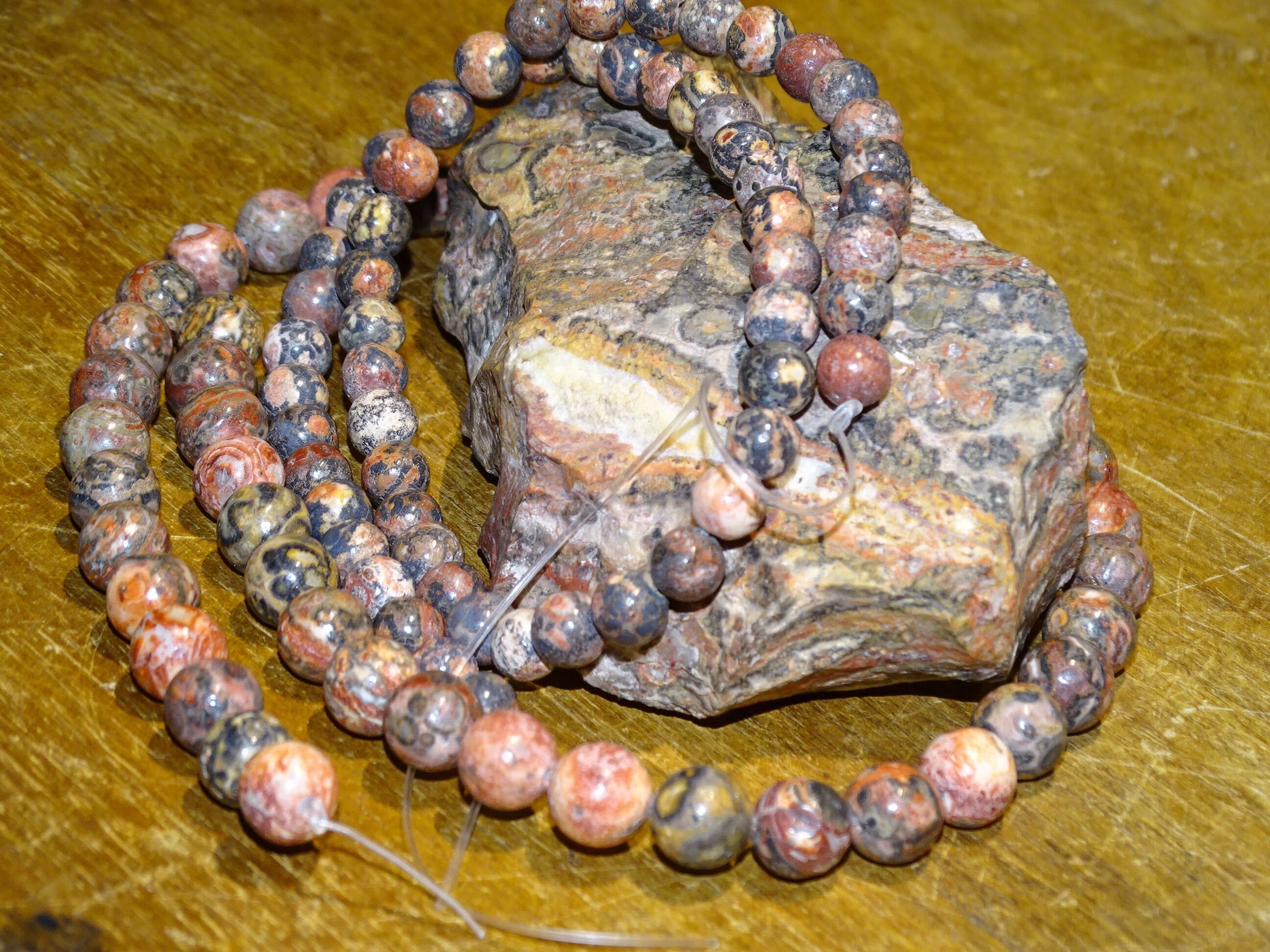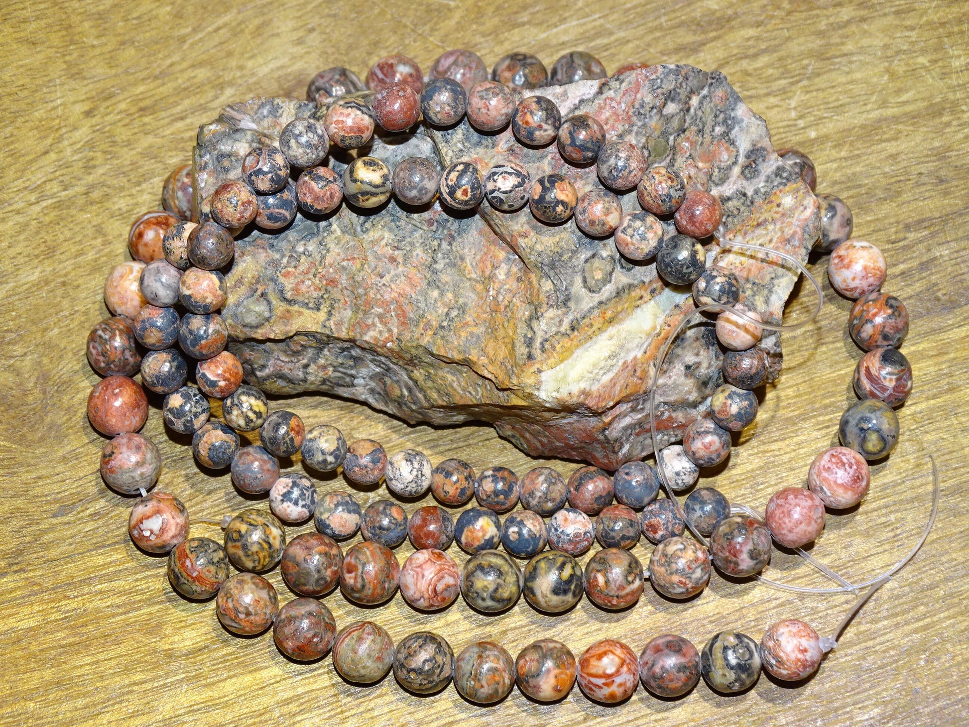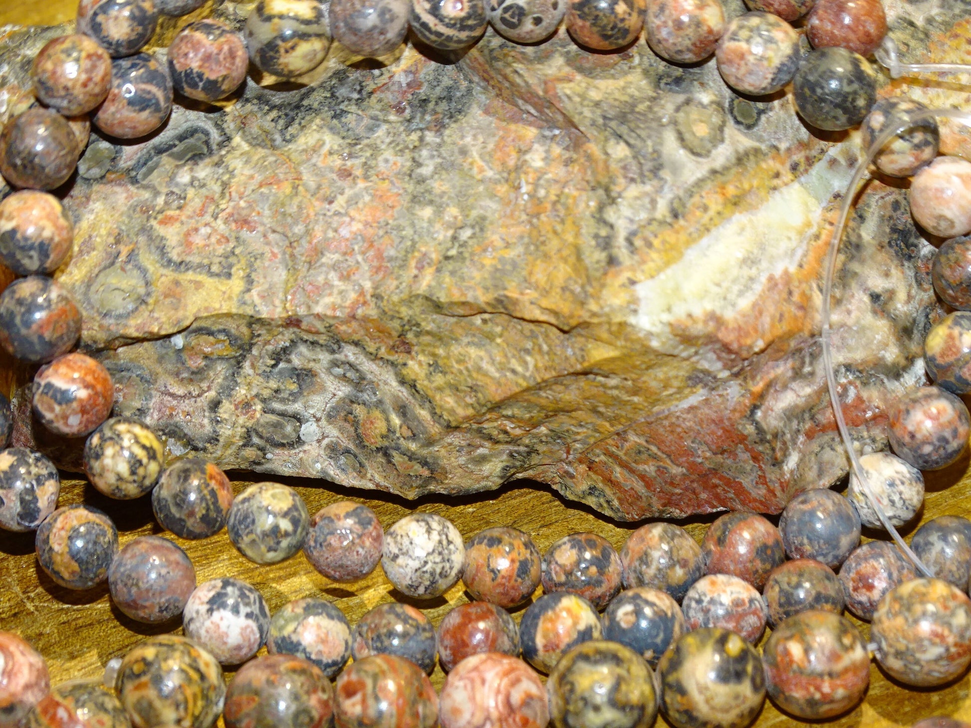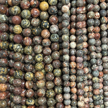 Jaspe léopard, perles rondes de 6 ou 8 mm. Vendu en fil de perle 38/39 cm, en bracelet de 17 à 21cm, en collier de 45 ou sautoir de 60cm. Qualité AA à AAA, superbes perles naturelles !