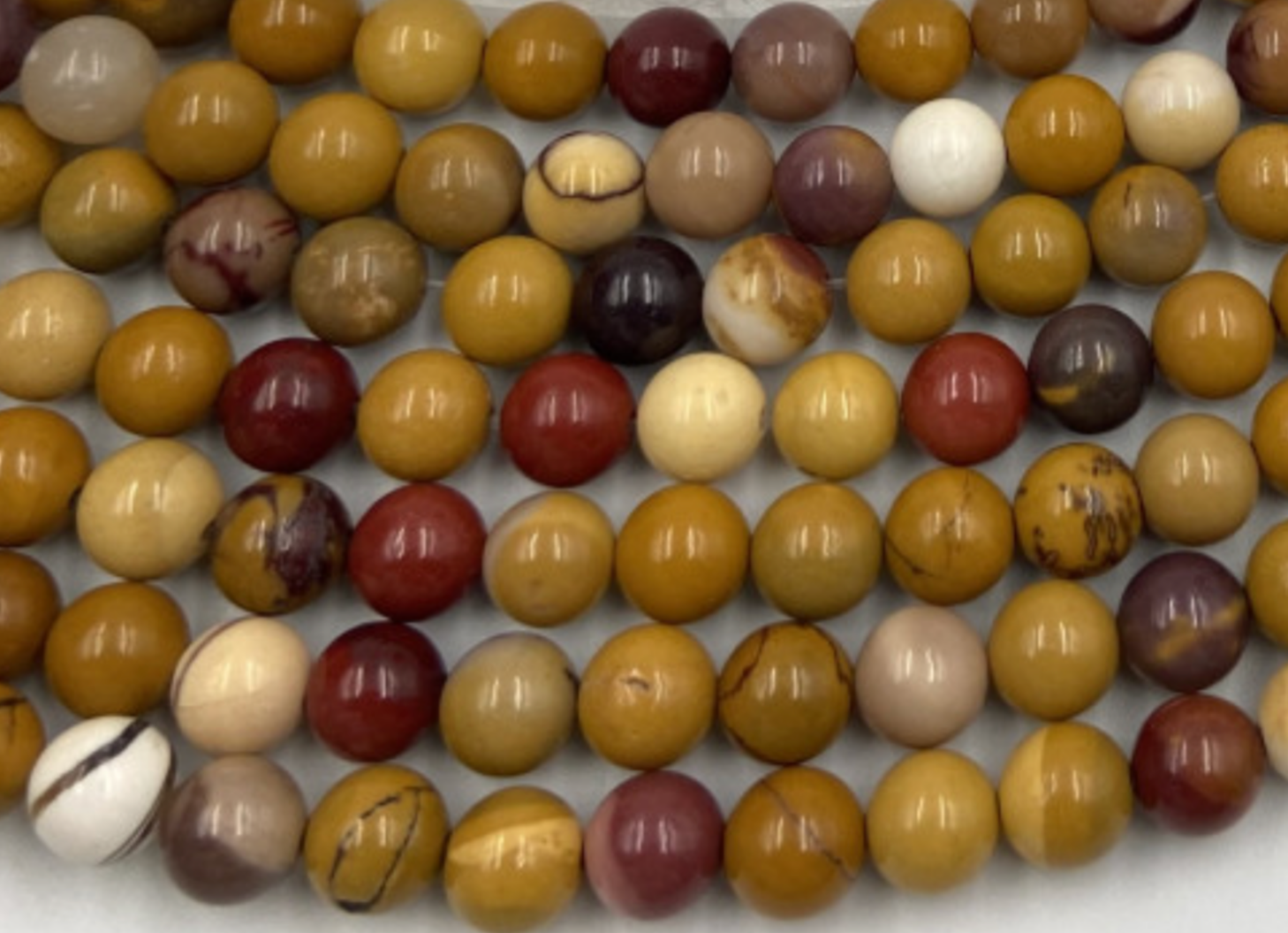 Jaspe Mokaïte, perles rondes de 6 ou 8 mm. Vendu en fil de perle 38/39 cm, en bracelet de 17 à 21cm, en collier de 45 ou sautoir de 60cm. Qualité AA à AAA !