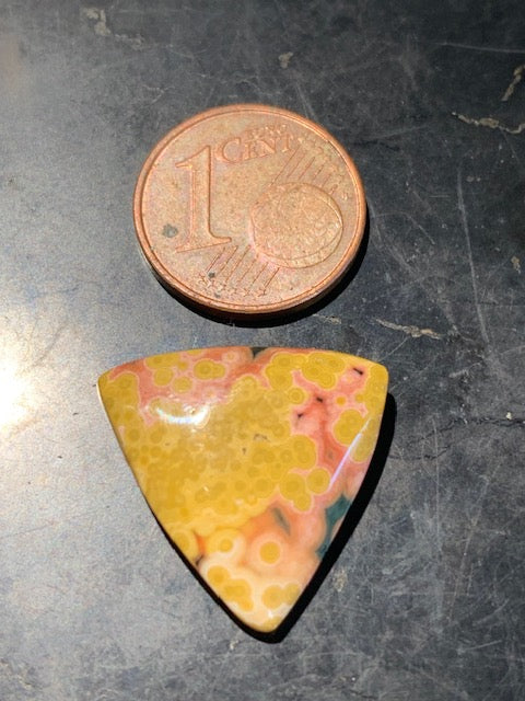Jaspe Orbiculaire (Aussi appelé Jaspe Océan), cabochon de forme 'Trillion' - ± 17 x 5 mm - 2,1 gr. - Qualité AAA !