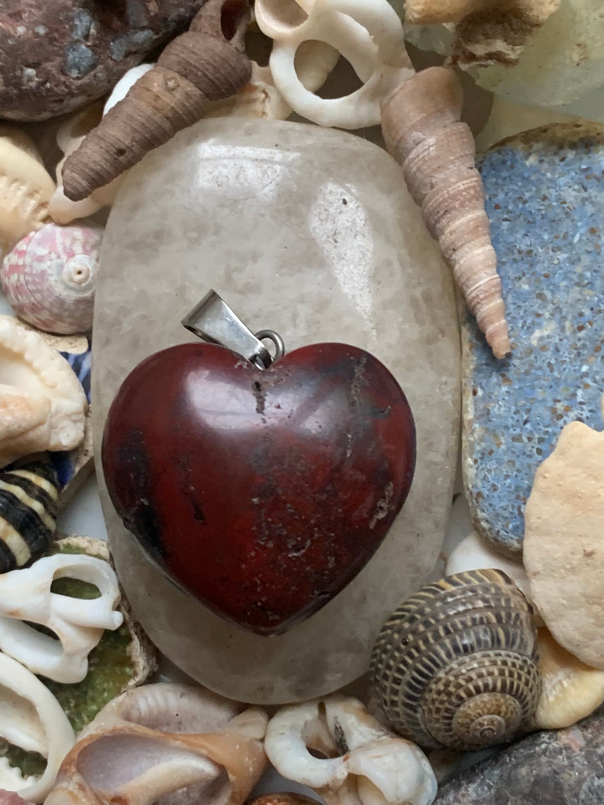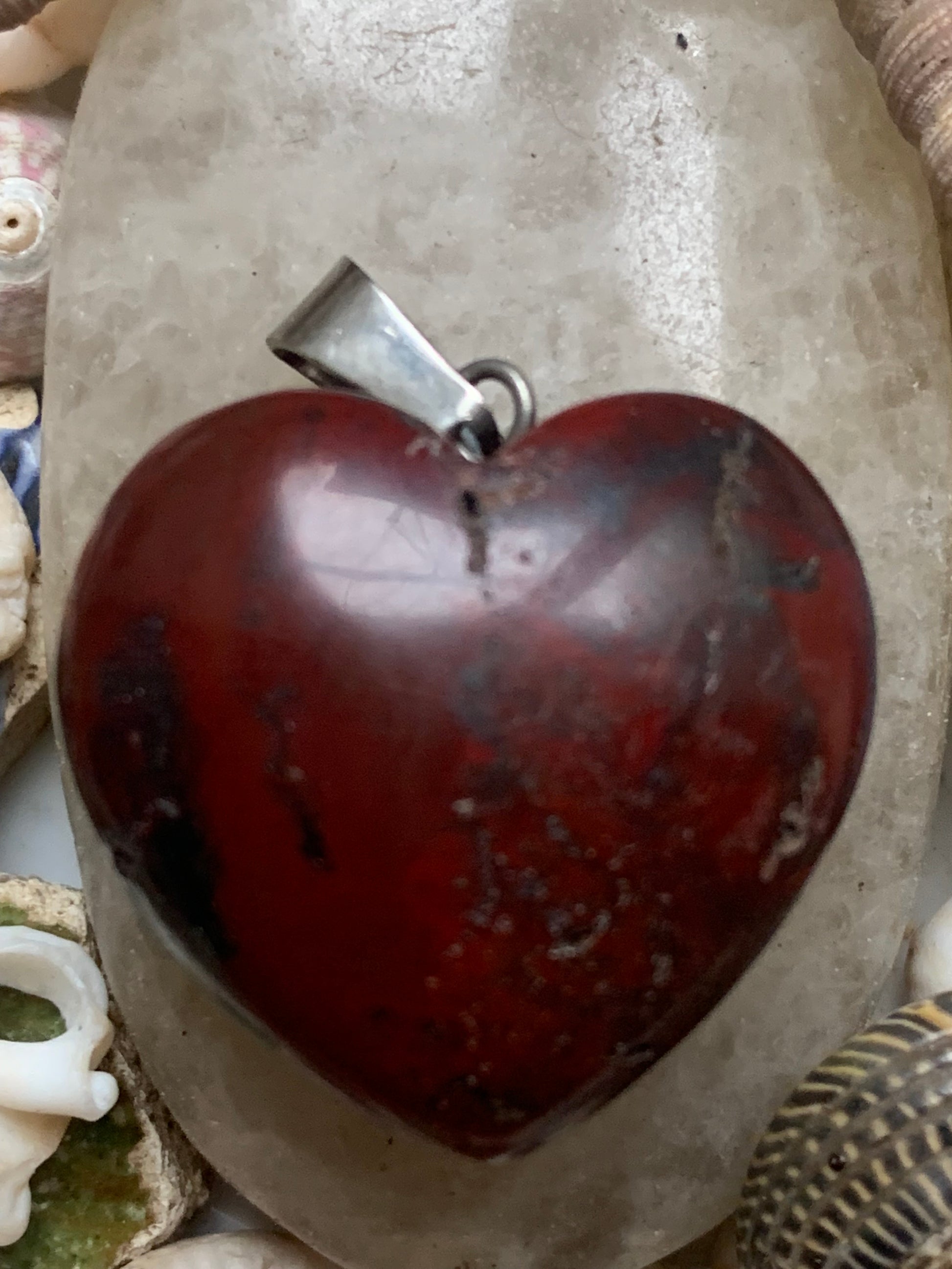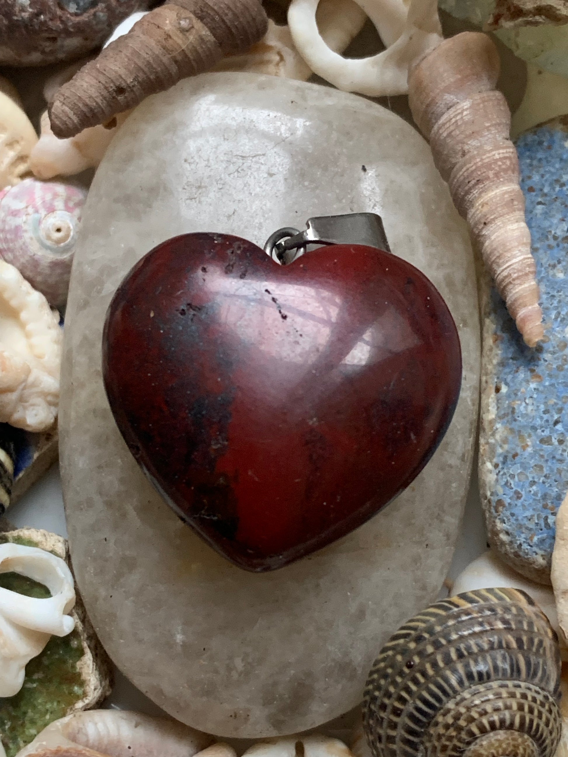 Jaspe rouge, pendentif 'Coeur' en Argent, de 32 millimètres de hauteur x 25 millimètres de largeur x 11 d'épaisseur. Vendu avec un cordon réglable de couleur noire !