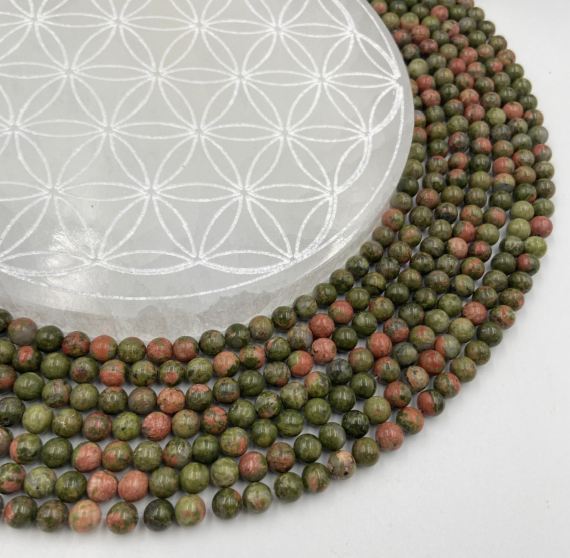 💎 Type de perle : Jaspe Unakite - Qualité AA à AAA - Finition 'ronde', polie et brillante
