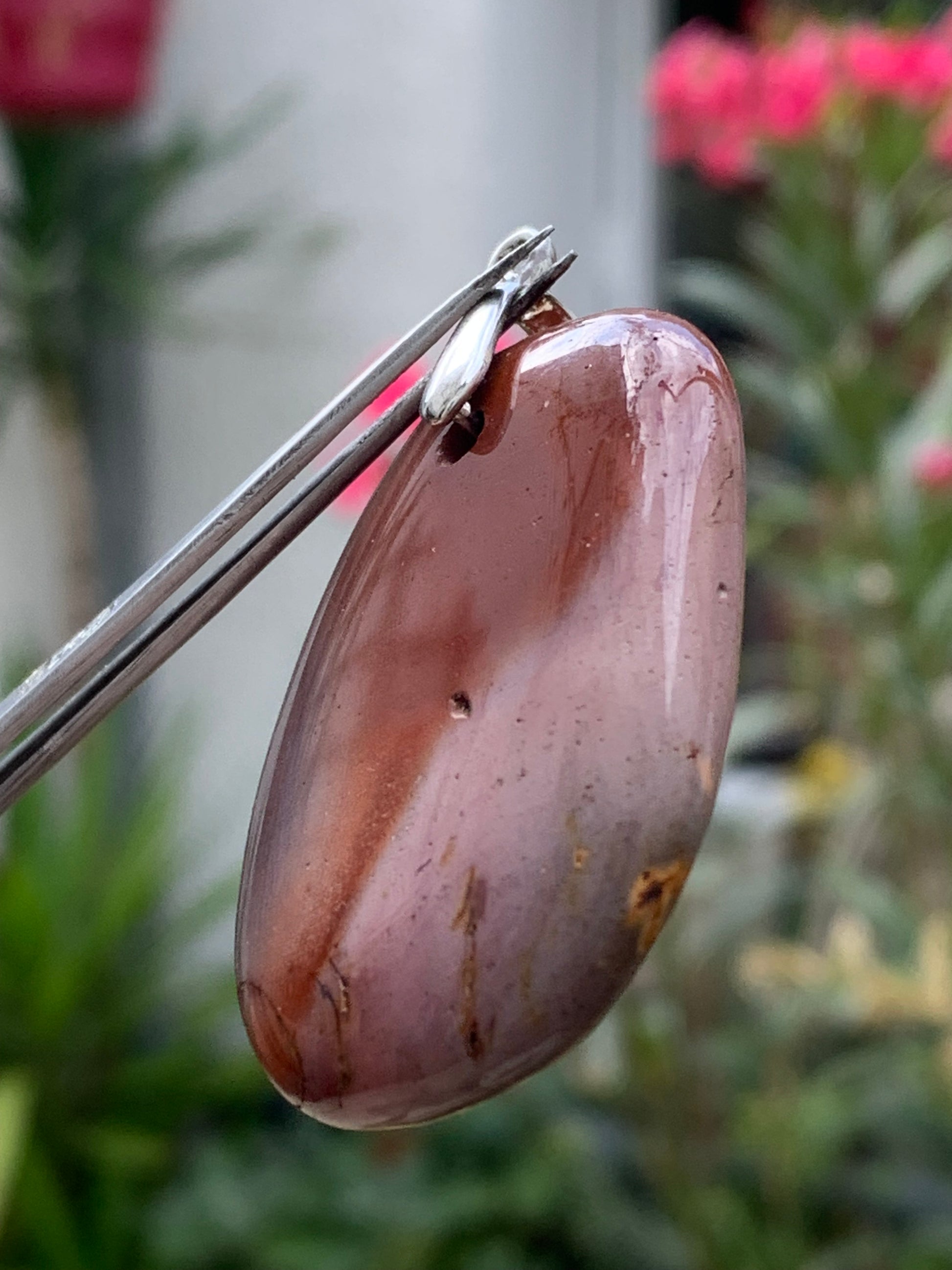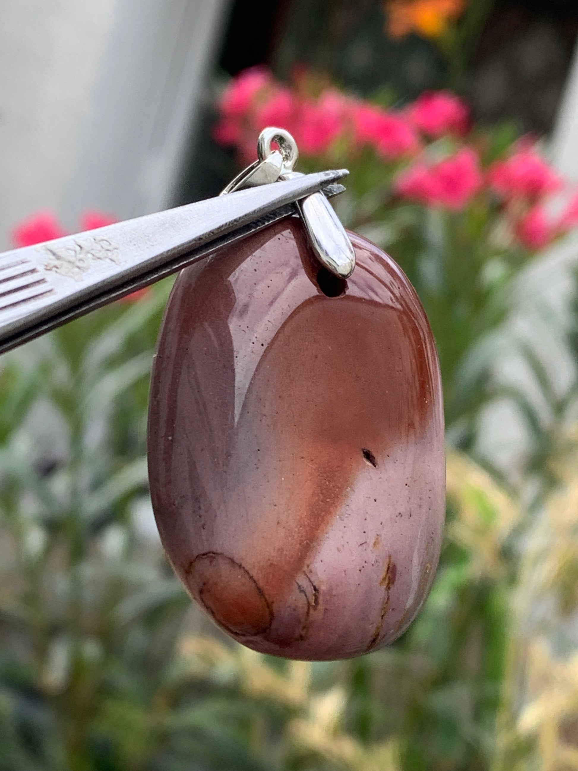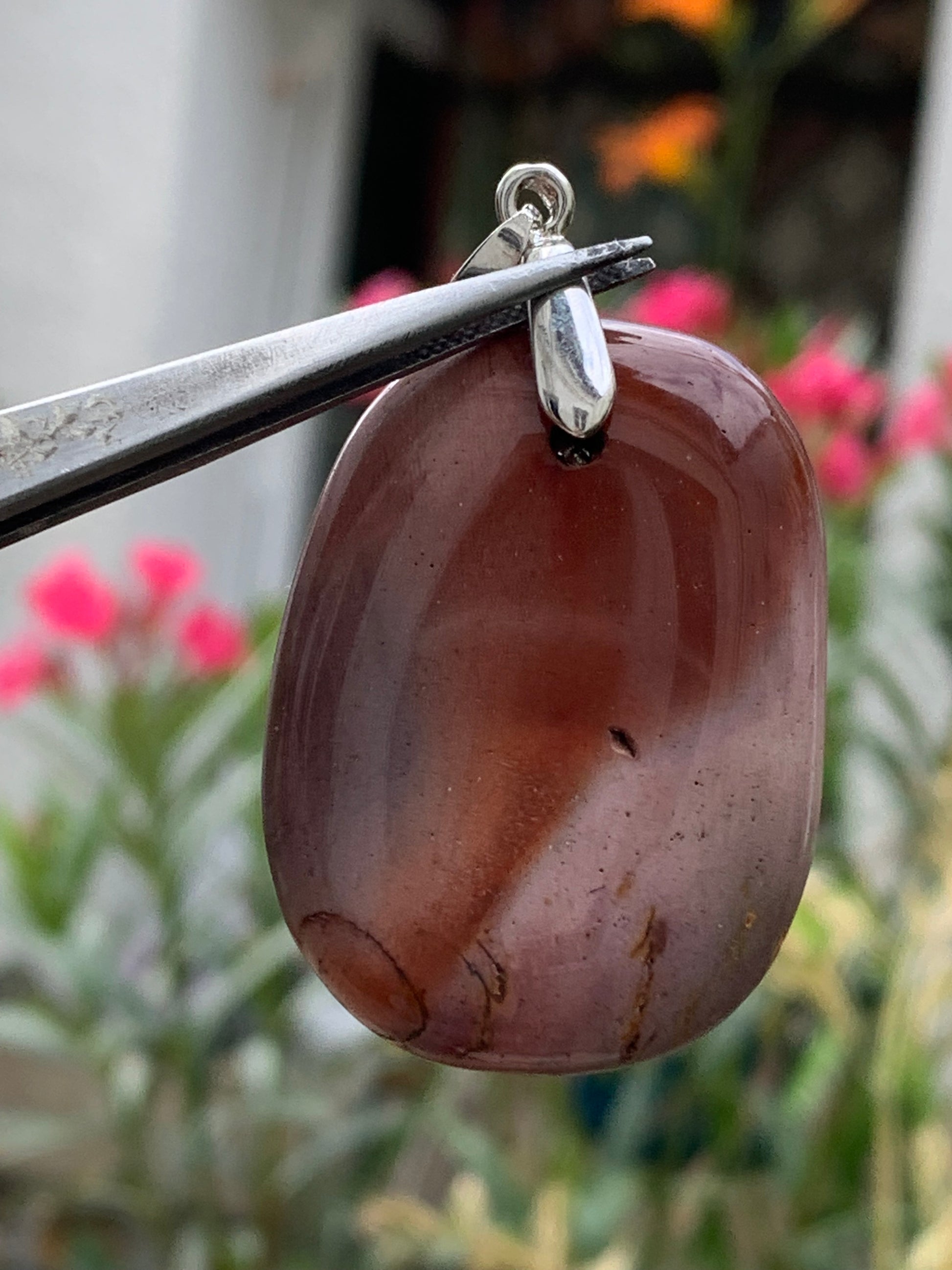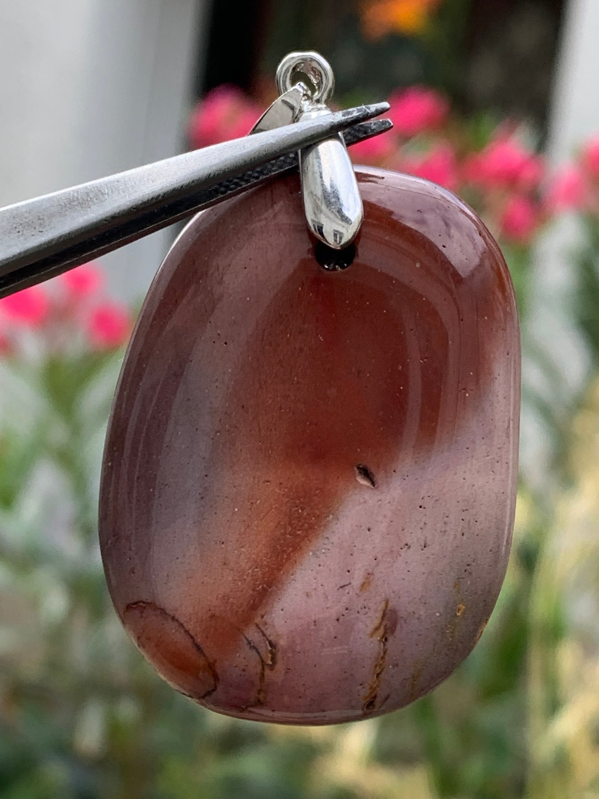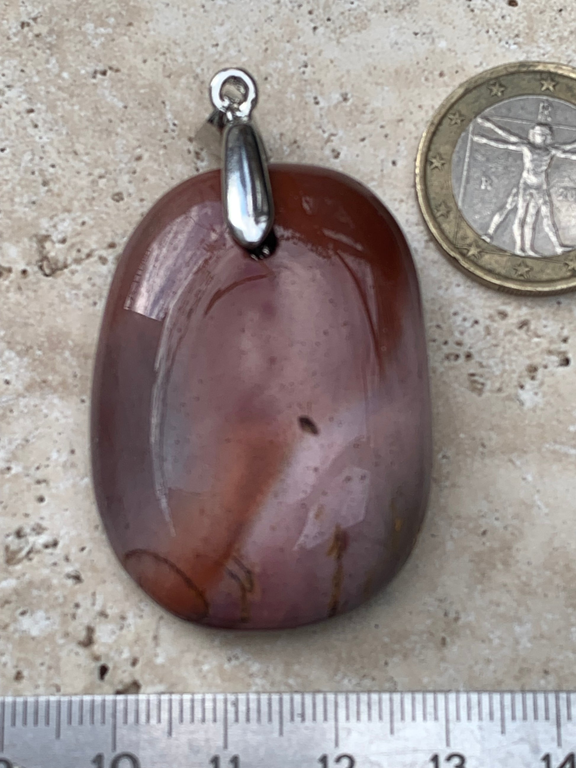 Jaspe polychrome, pendentif de 44mm de ht x32 x10. Vendu avec un cordon réglable de couleur noire !