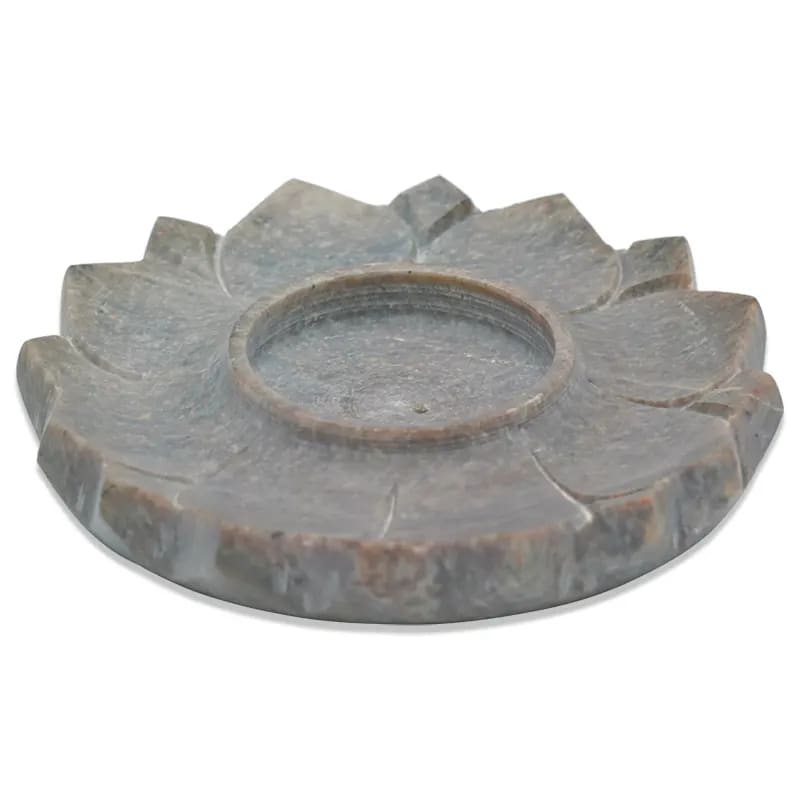 Joli bougeoir ou brûle encens en forme de lotus, fait en pierre dîtes 'ollaire'. 10x1 cm - ± 200 gr. - Vente à l'unité ou par 2 !