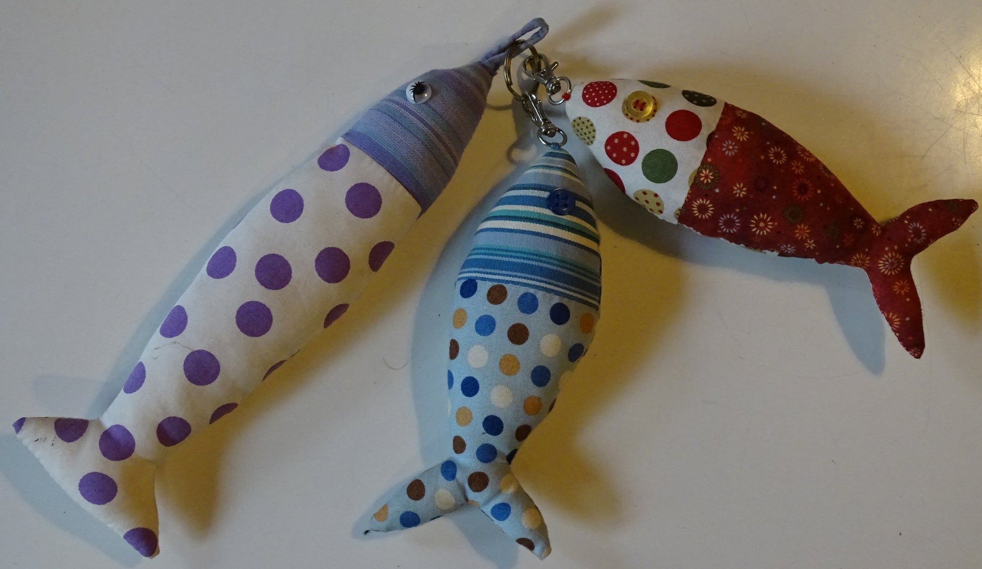 Jolis petits poissons de 17, 18 ou 24 centimètres, '100 % fait main'. Demandez nous un format sur mesure suivant vos besoins !