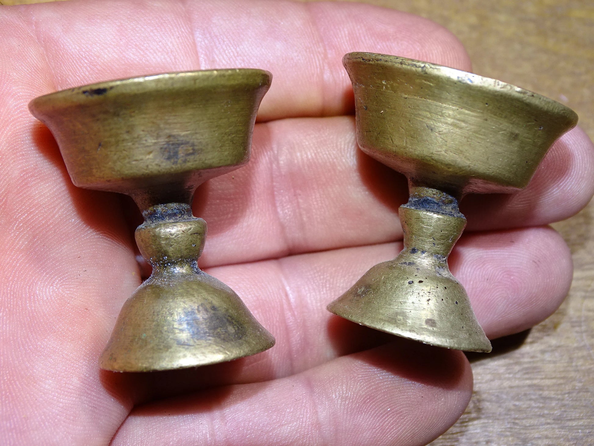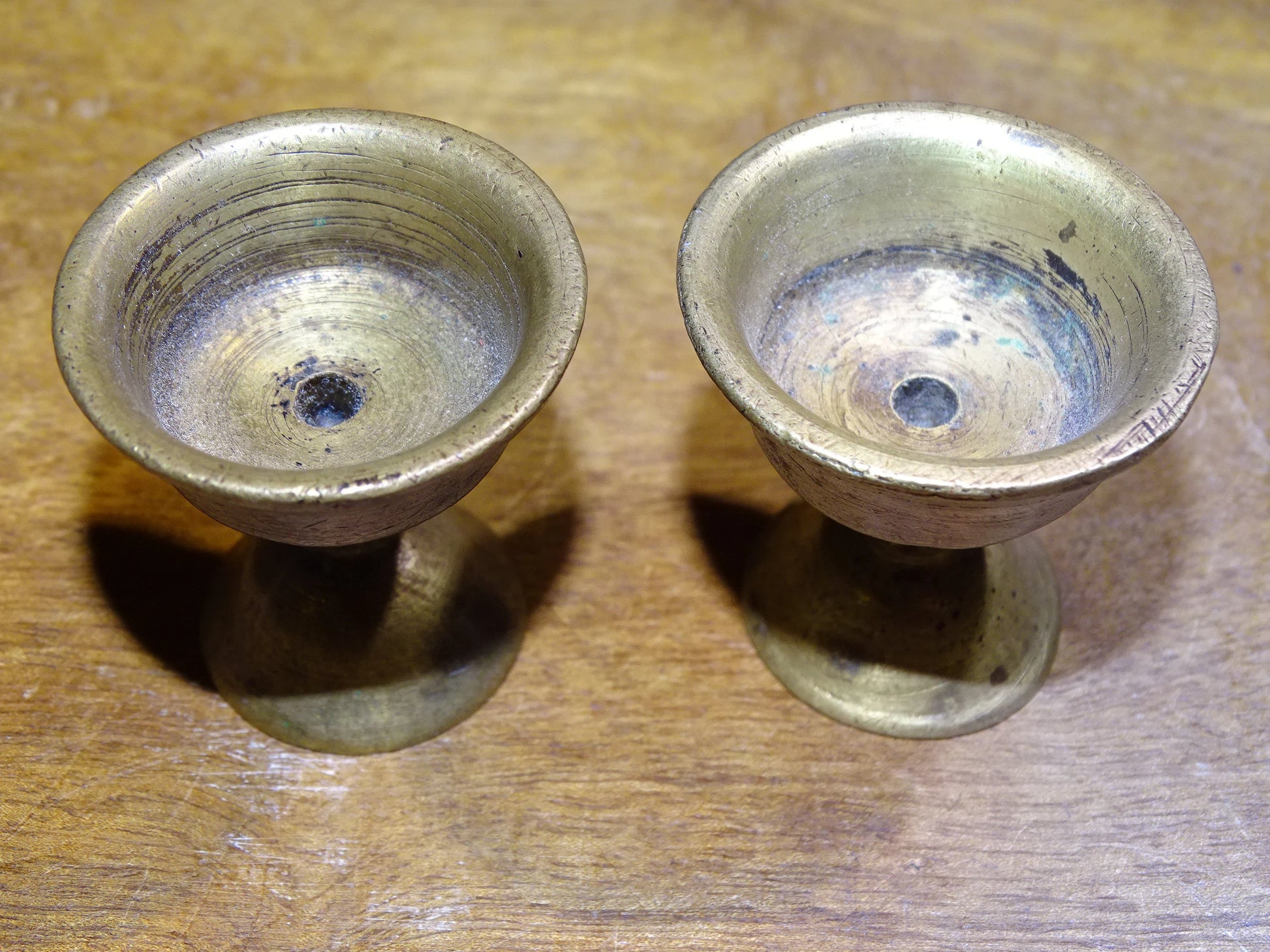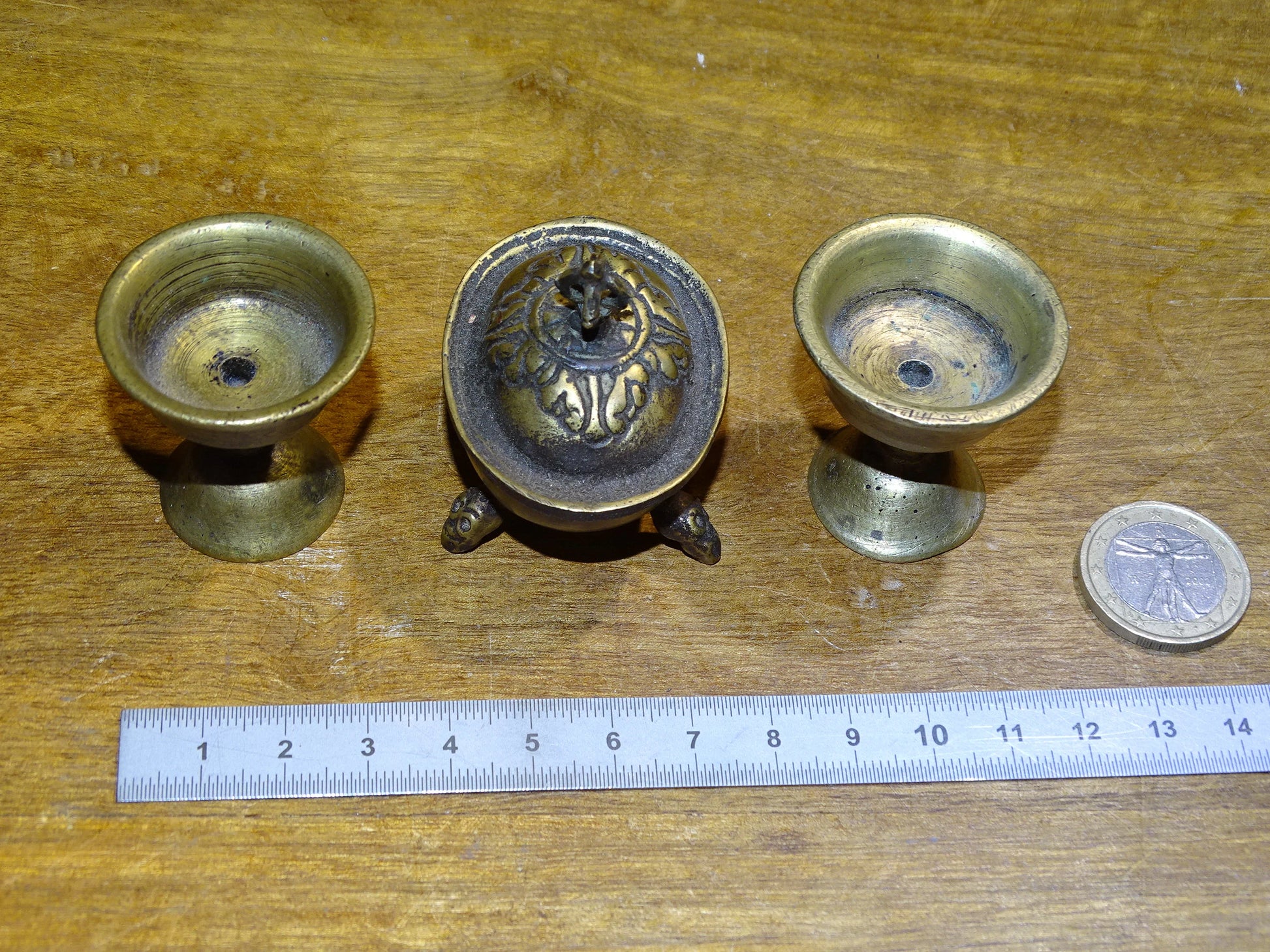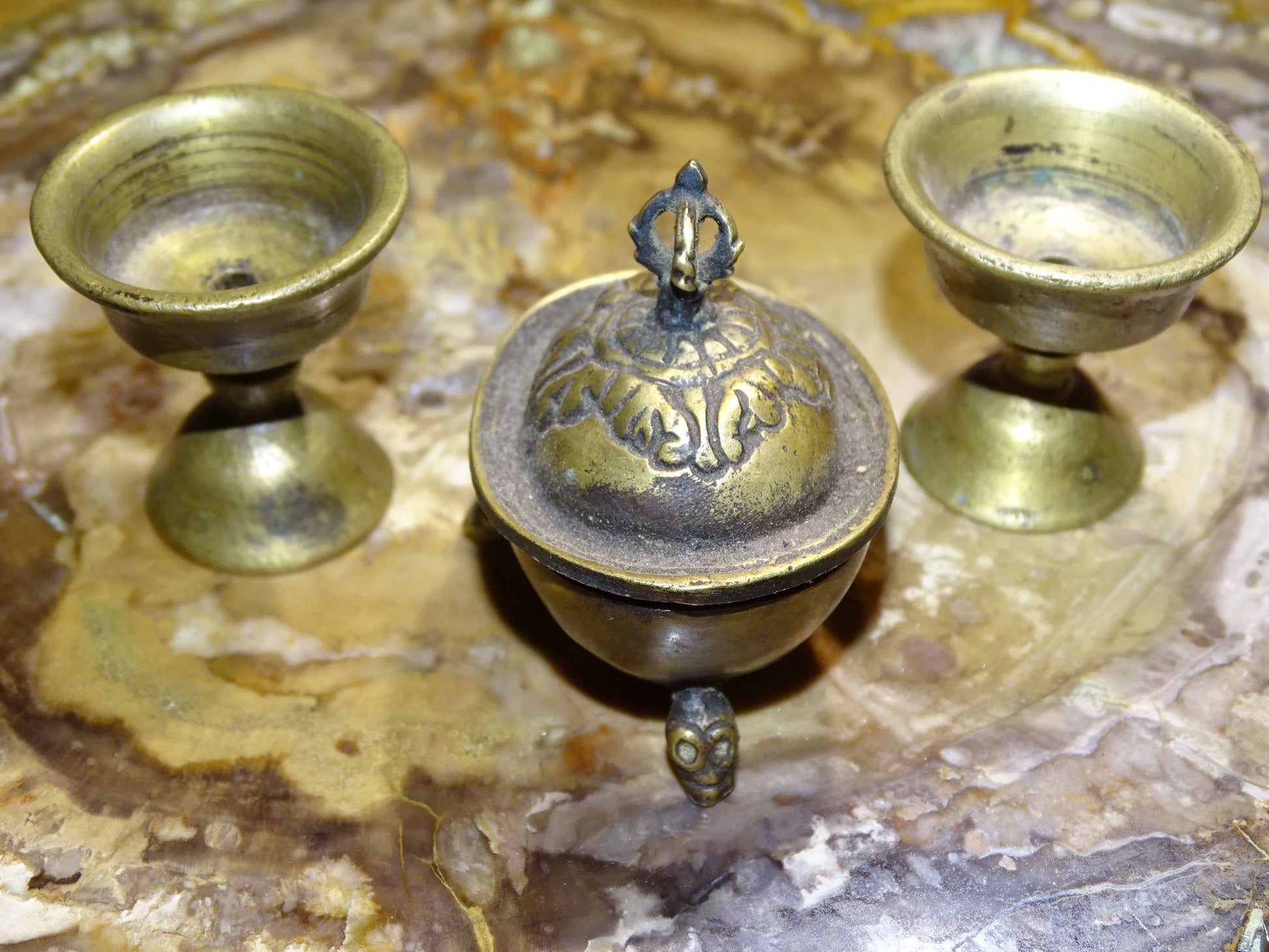 Set de Kapala et mini bougeoir pour Ghee, en bronze, magnifiques pièces anciennes de rituels, parfait pour une collection, exposition ou utlisation sur un Autel !