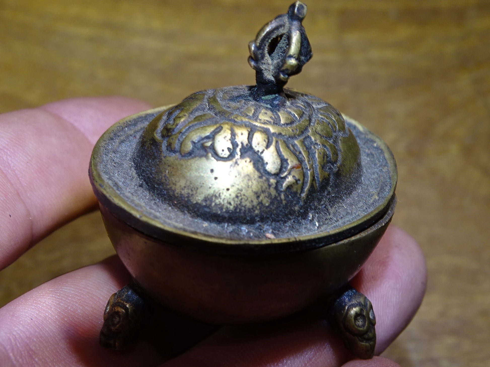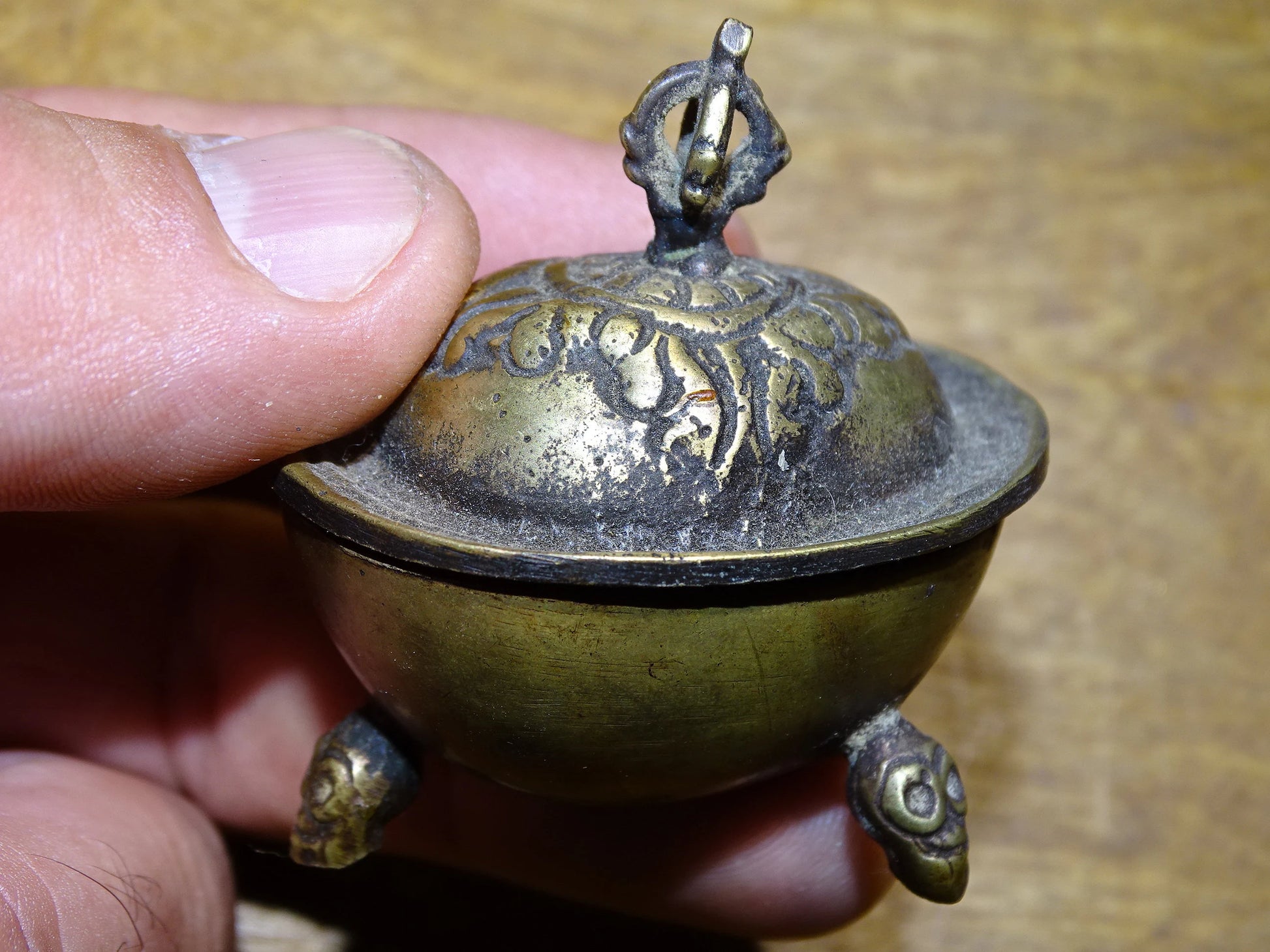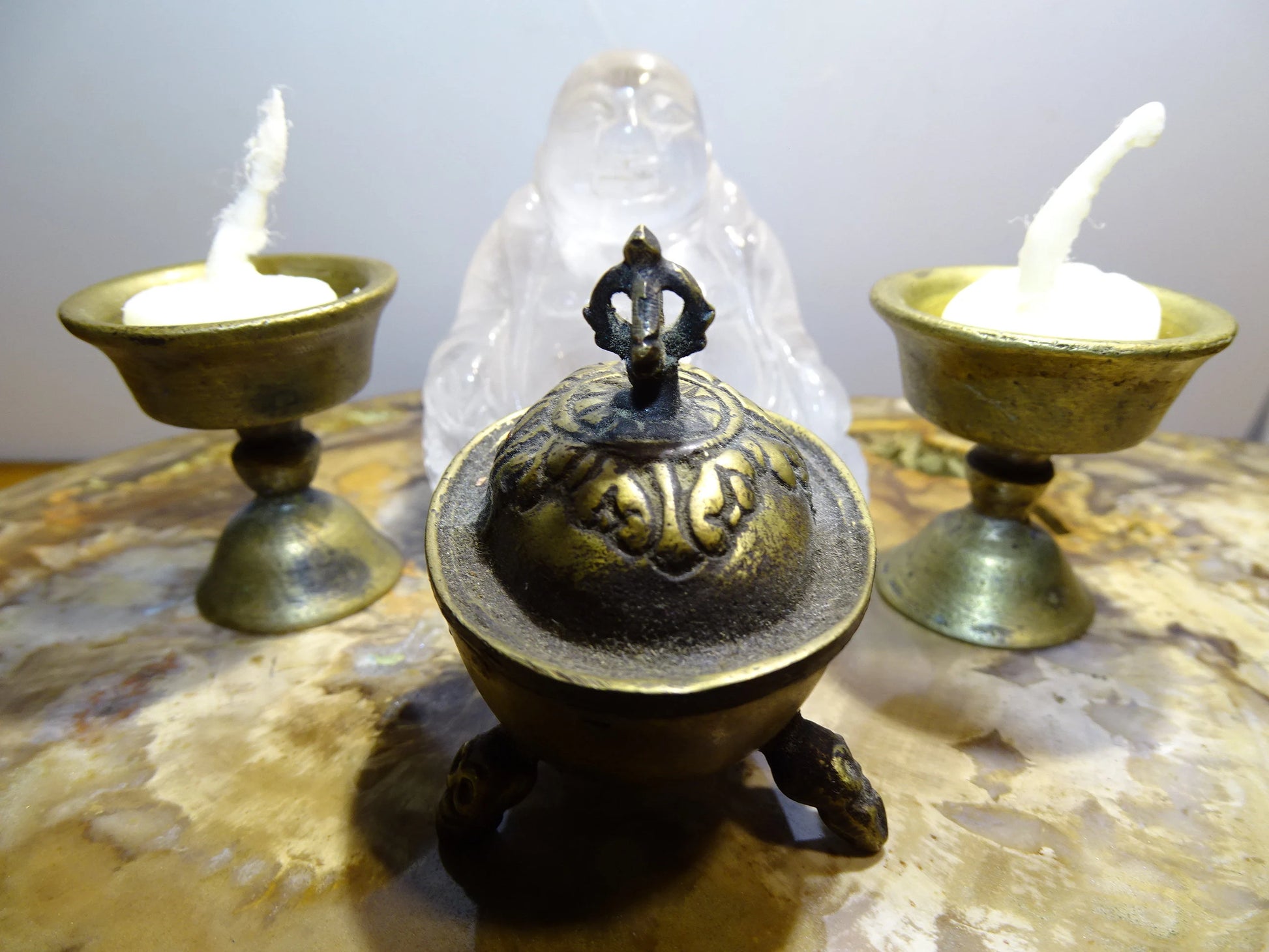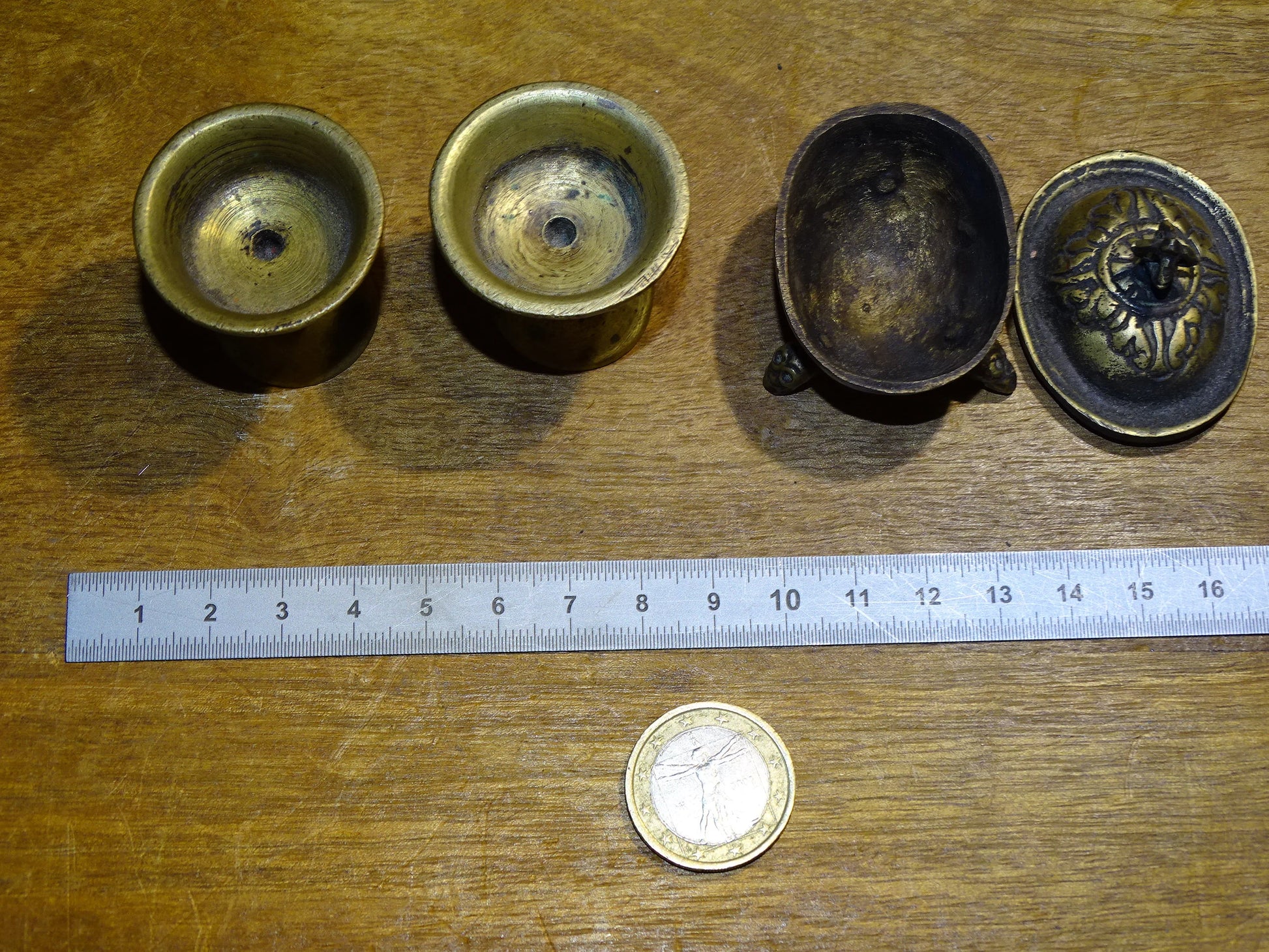 Set de Kapala et mini bougeoir pour Ghee, en bronze, magnifiques pièces anciennes de rituels, parfait pour une collection, exposition ou utlisation sur un Autel !