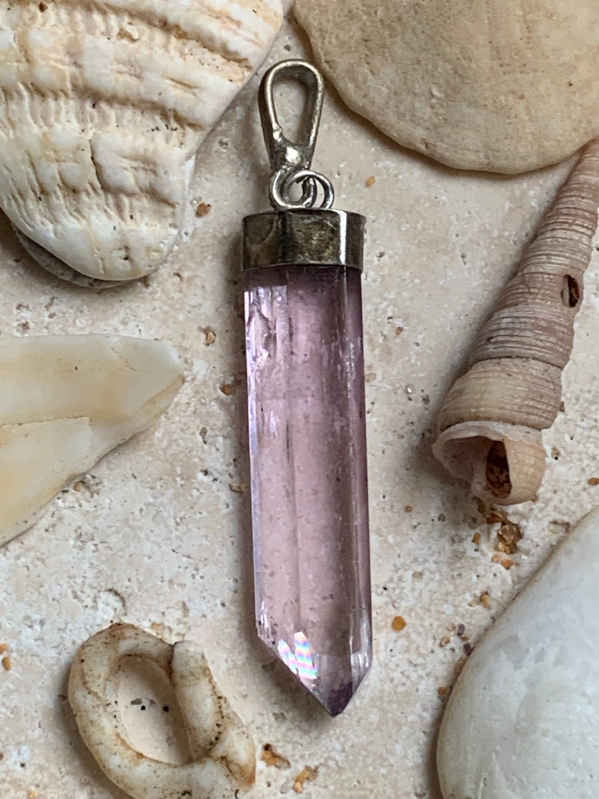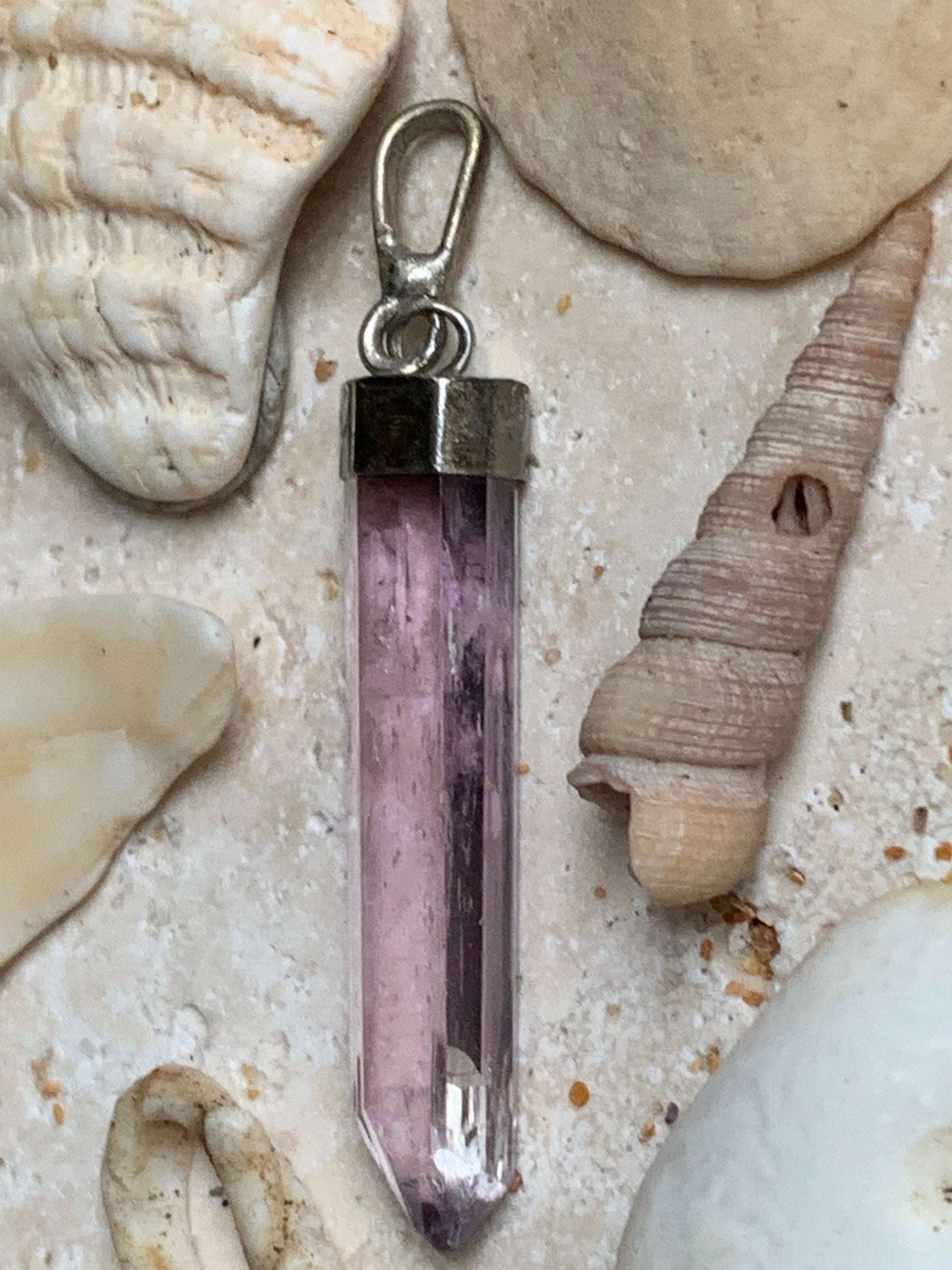 Kunzite naturelle, pendentif sertis sur Argent ! Pièce unique de 44 millimètres x 5 x 8. Vendu avec cordon réglable de couleur noire !