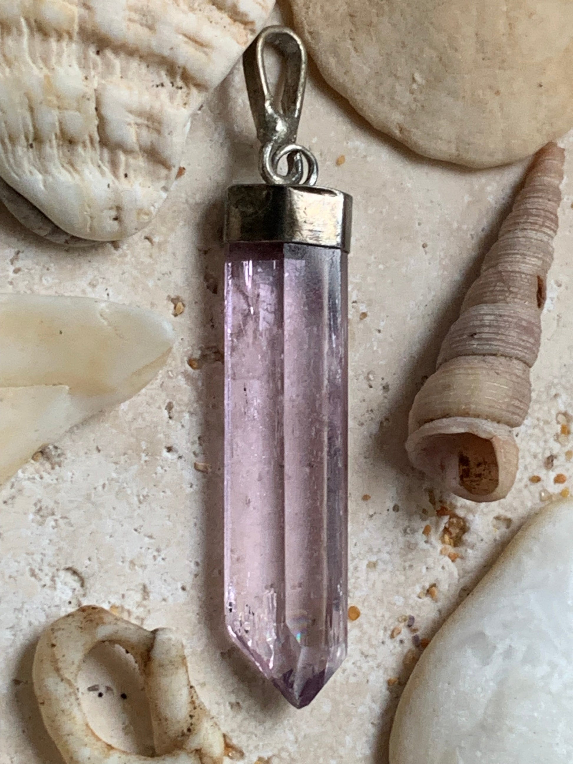 La kunzite, pierre de douceur et d’apaisement, diffuse une énergie tendre aux reflets rosés, évoquant les premières lueurs d’un matin calme.