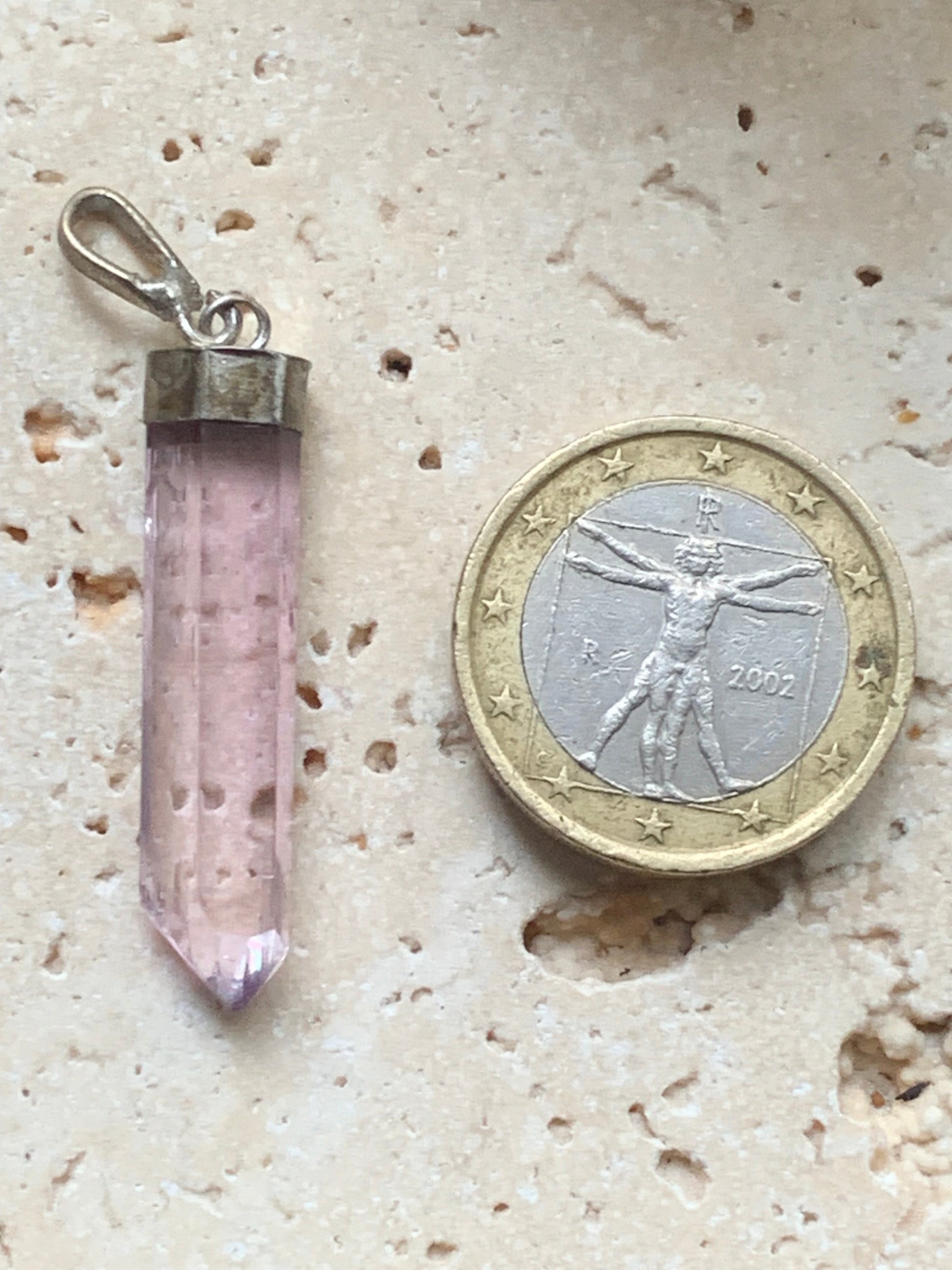 🔮 Pièce unique façonnée à la main, ce pendentif allie une kunzite naturelle à un péridot lumineux, tous deux minutieusement sertis sur une monture en argent 925 massif.