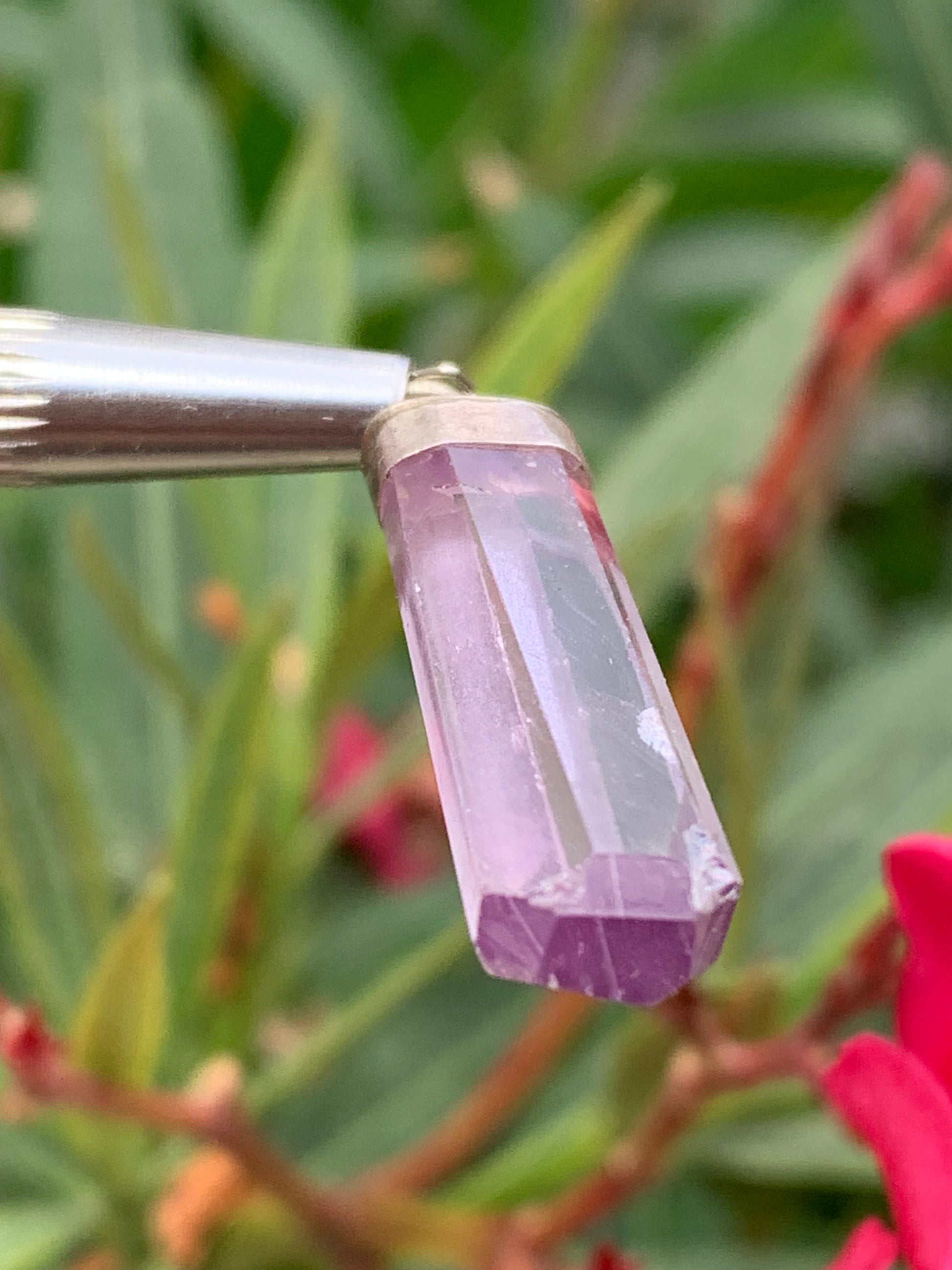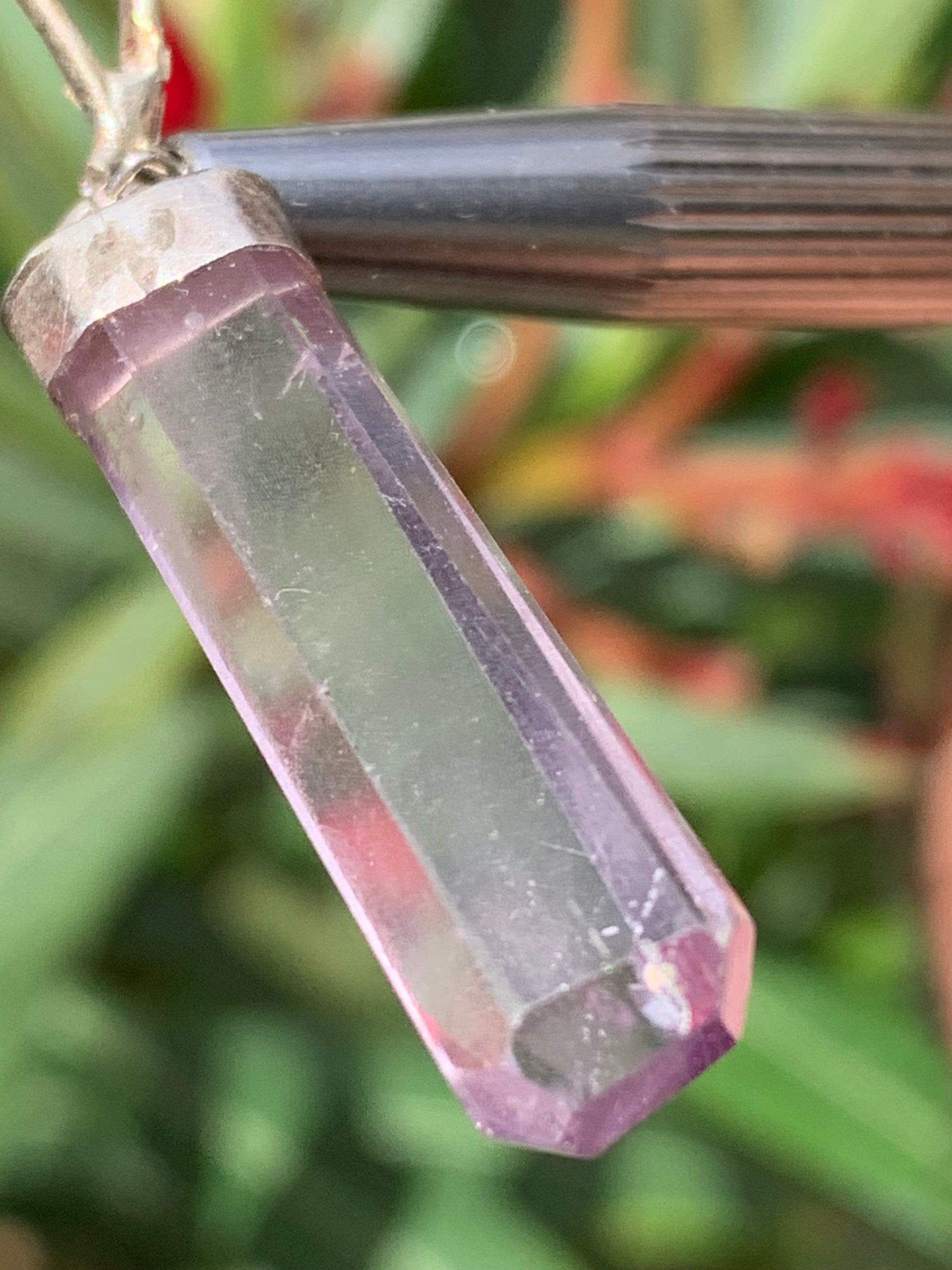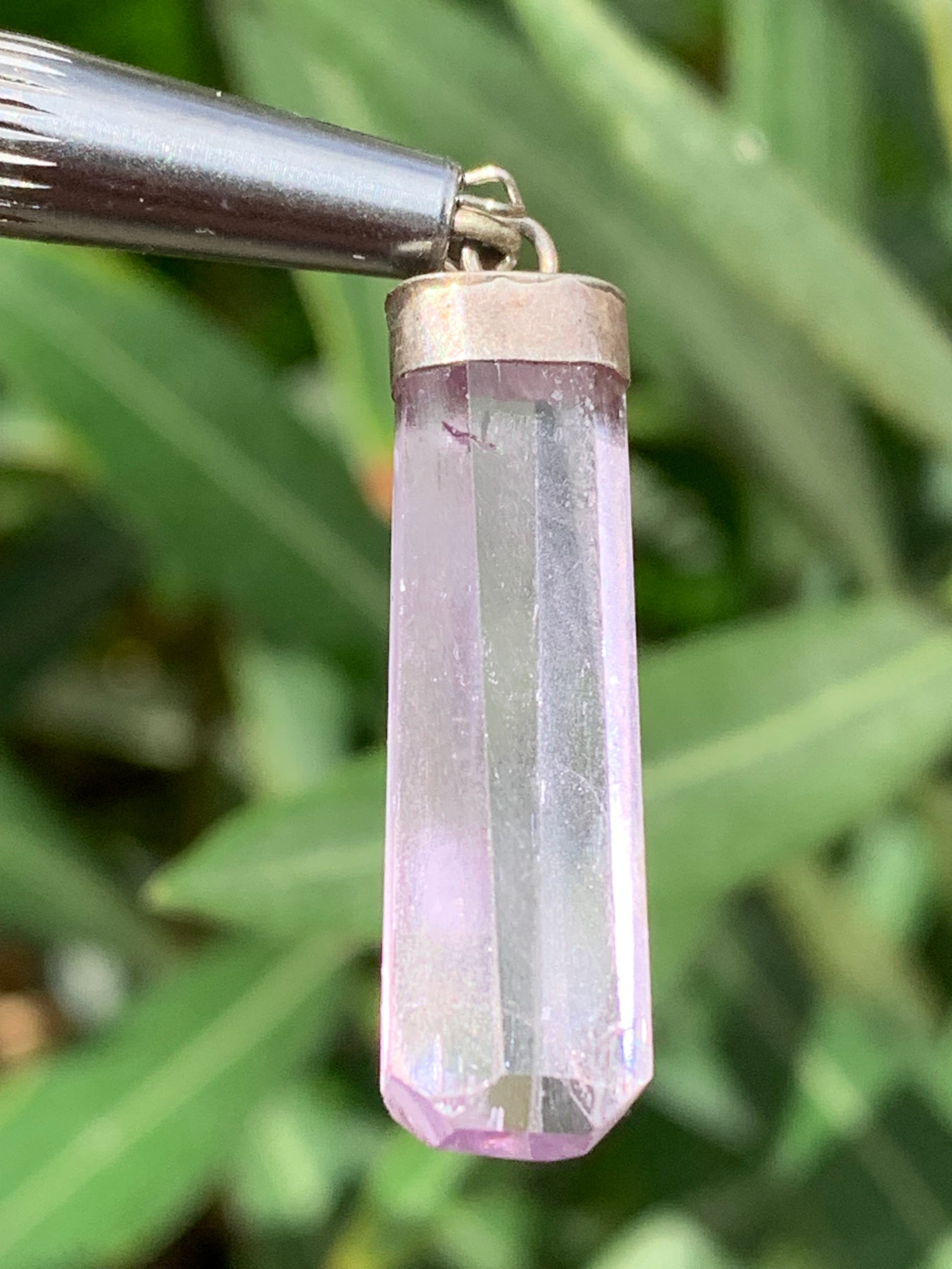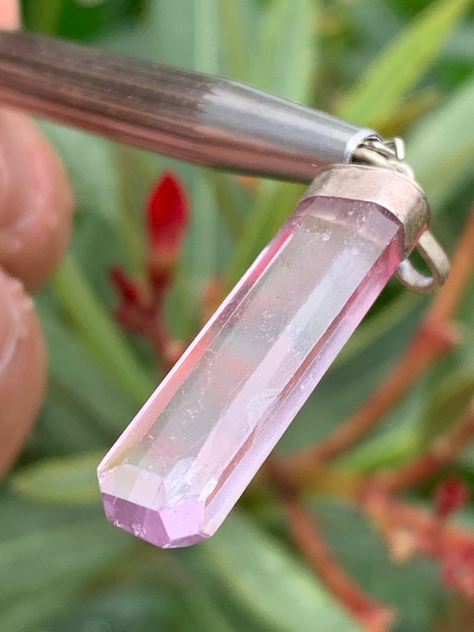 Kunzite naturelle, pendentif sertis sur Argent ! Pièce unique de 43 millimètres x9 x6. Vendu avec cordon réglable de couleur noire !