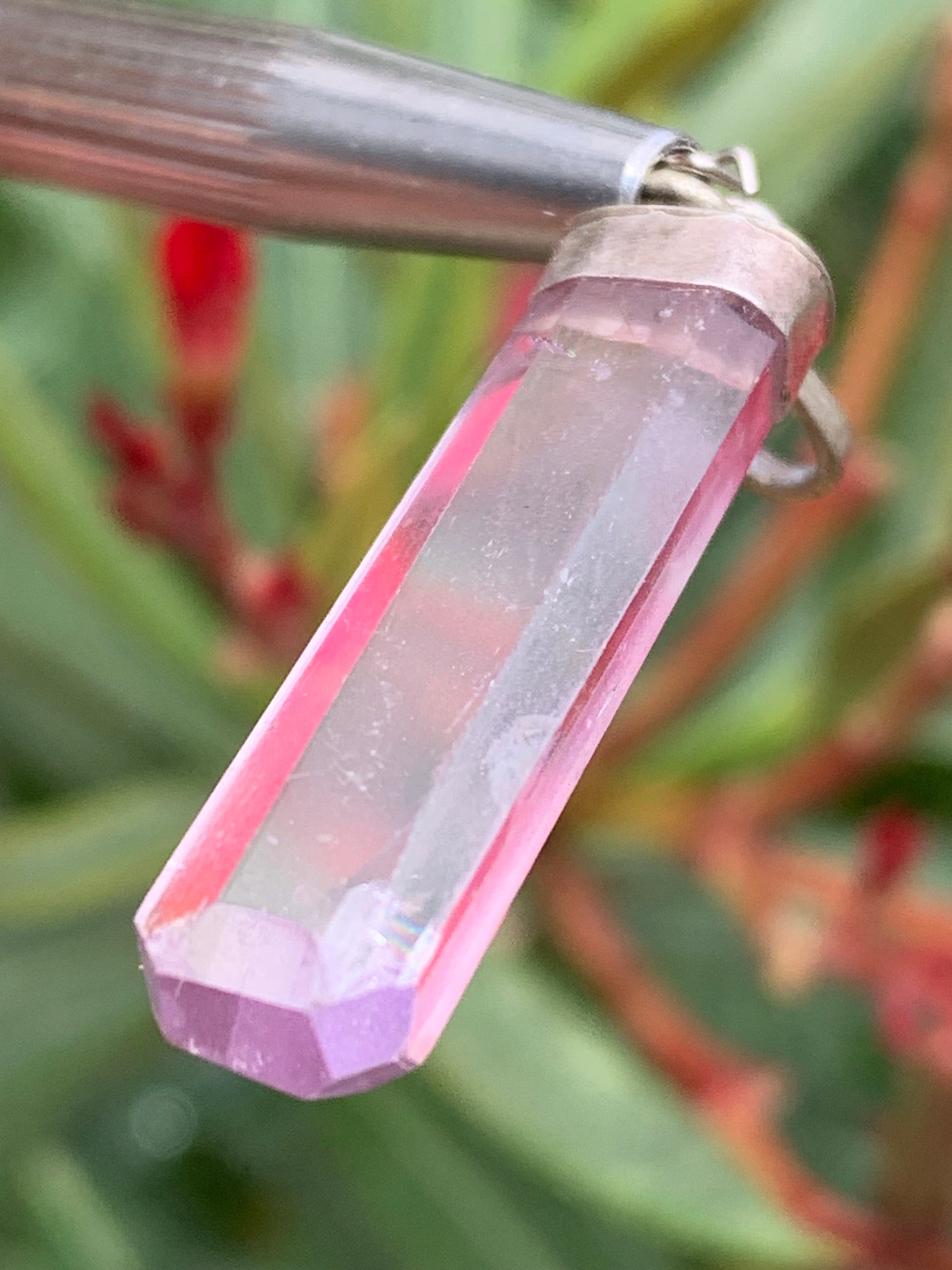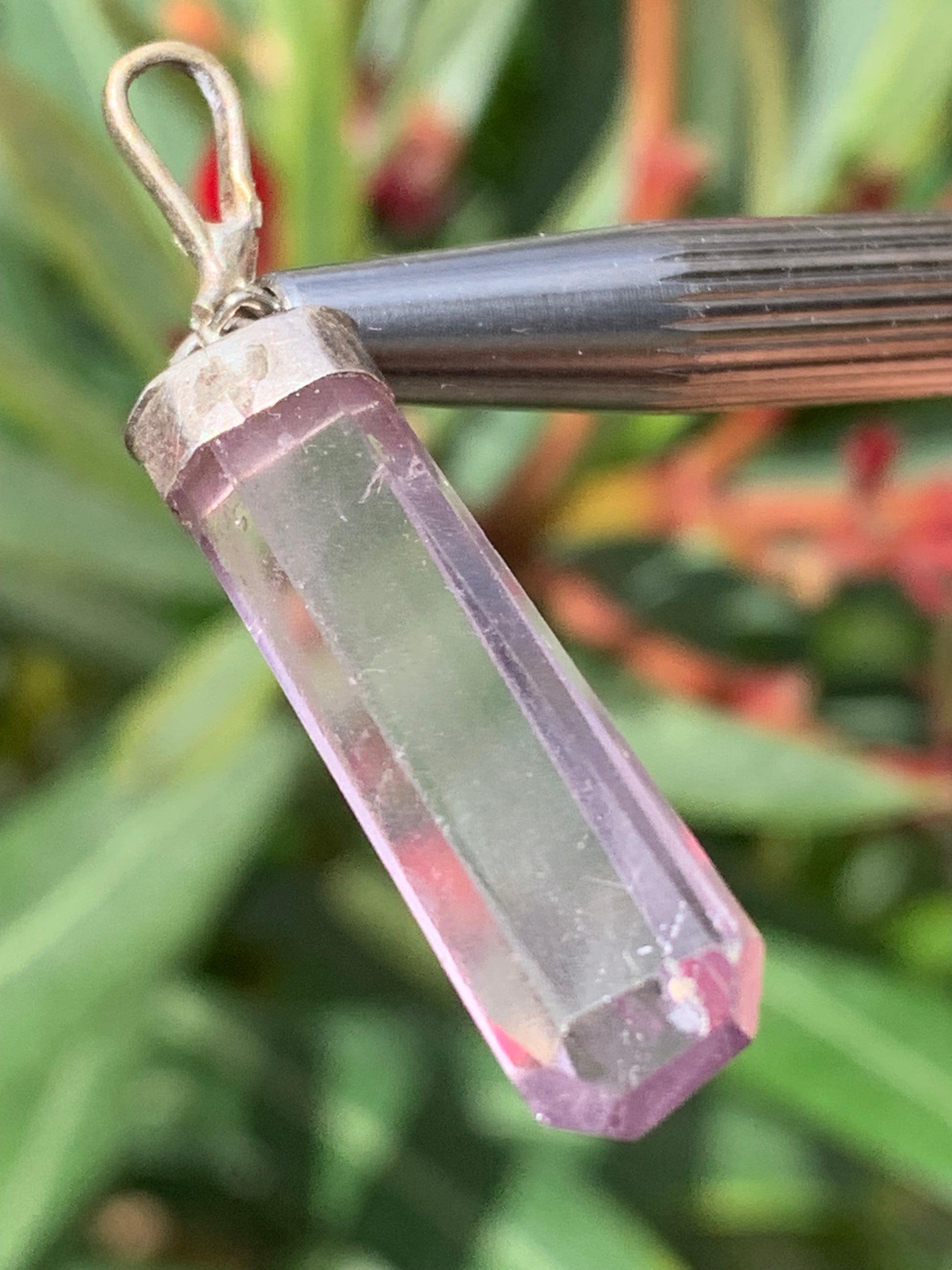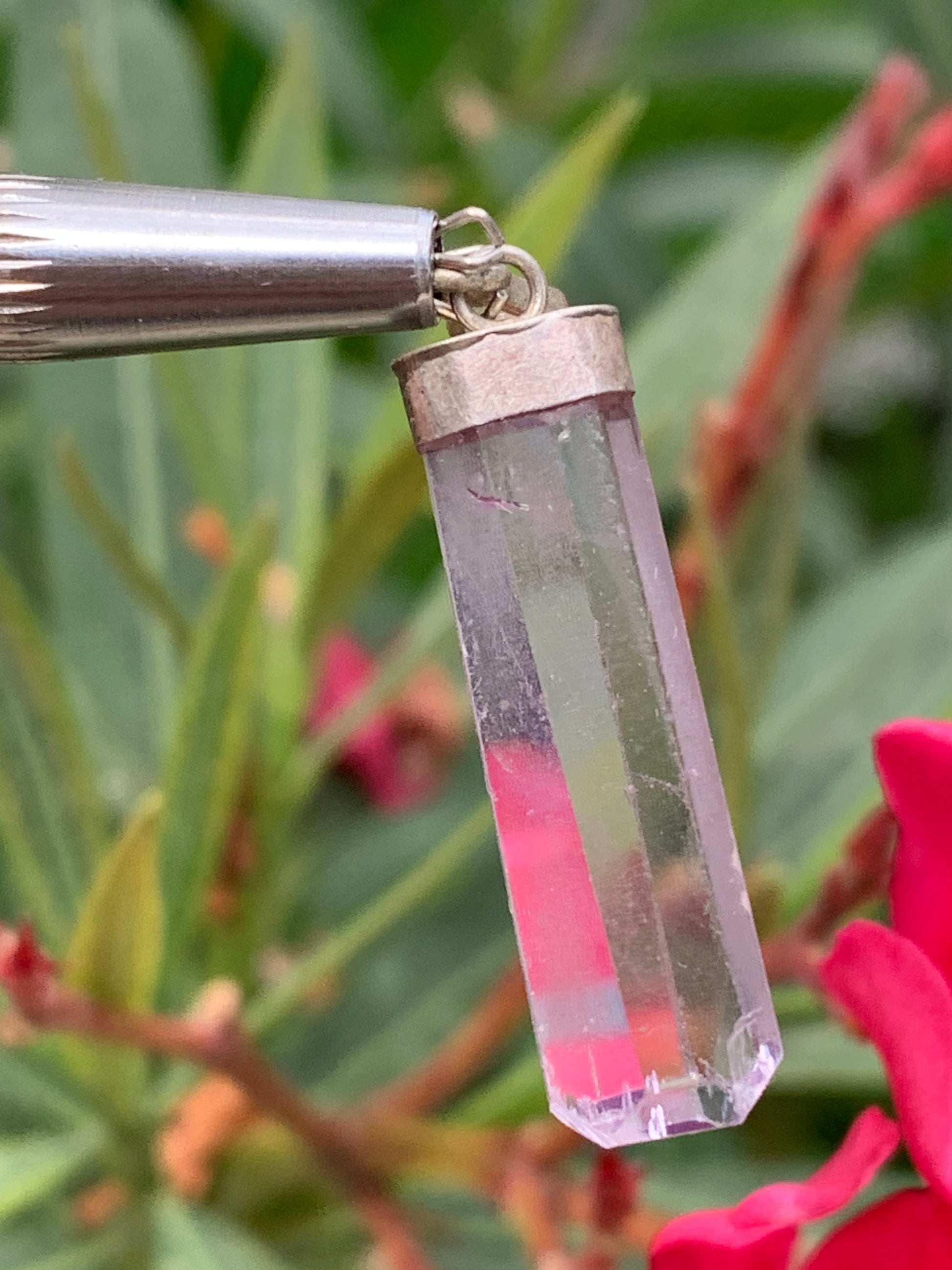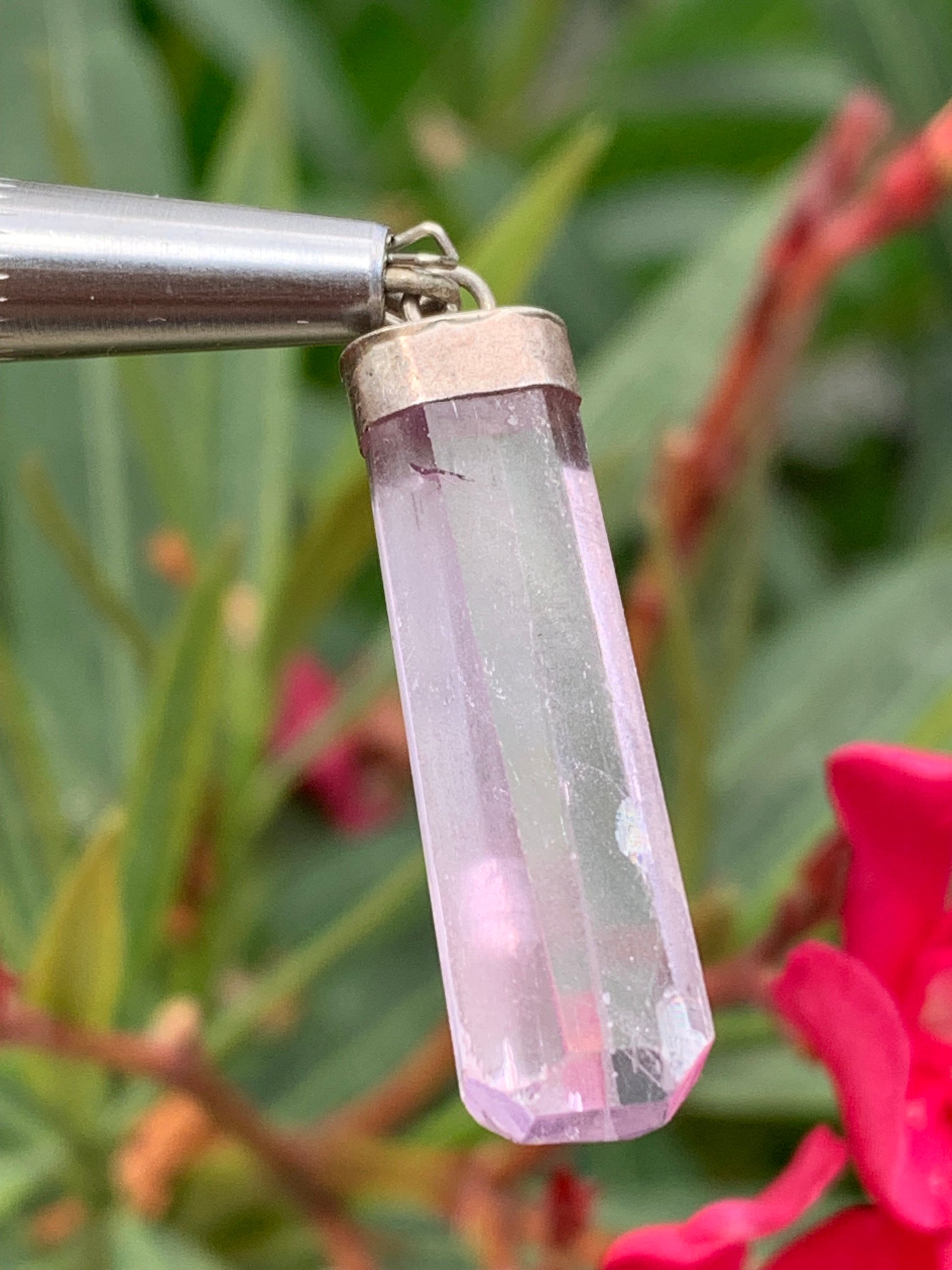 Kunzite naturelle, pendentif sertis sur Argent ! Pièce unique de 43 millimètres x9 x6. Vendu avec cordon réglable de couleur noire !