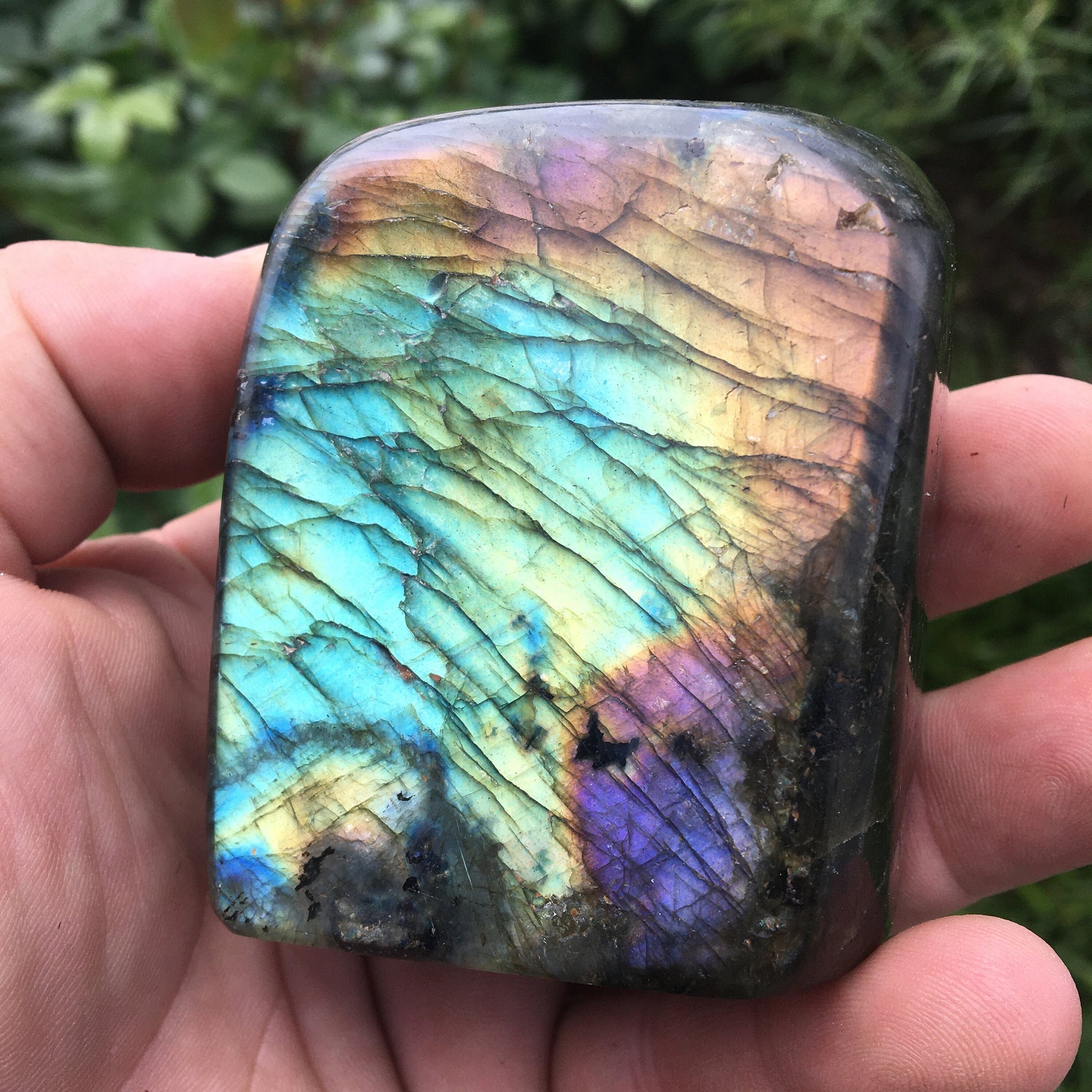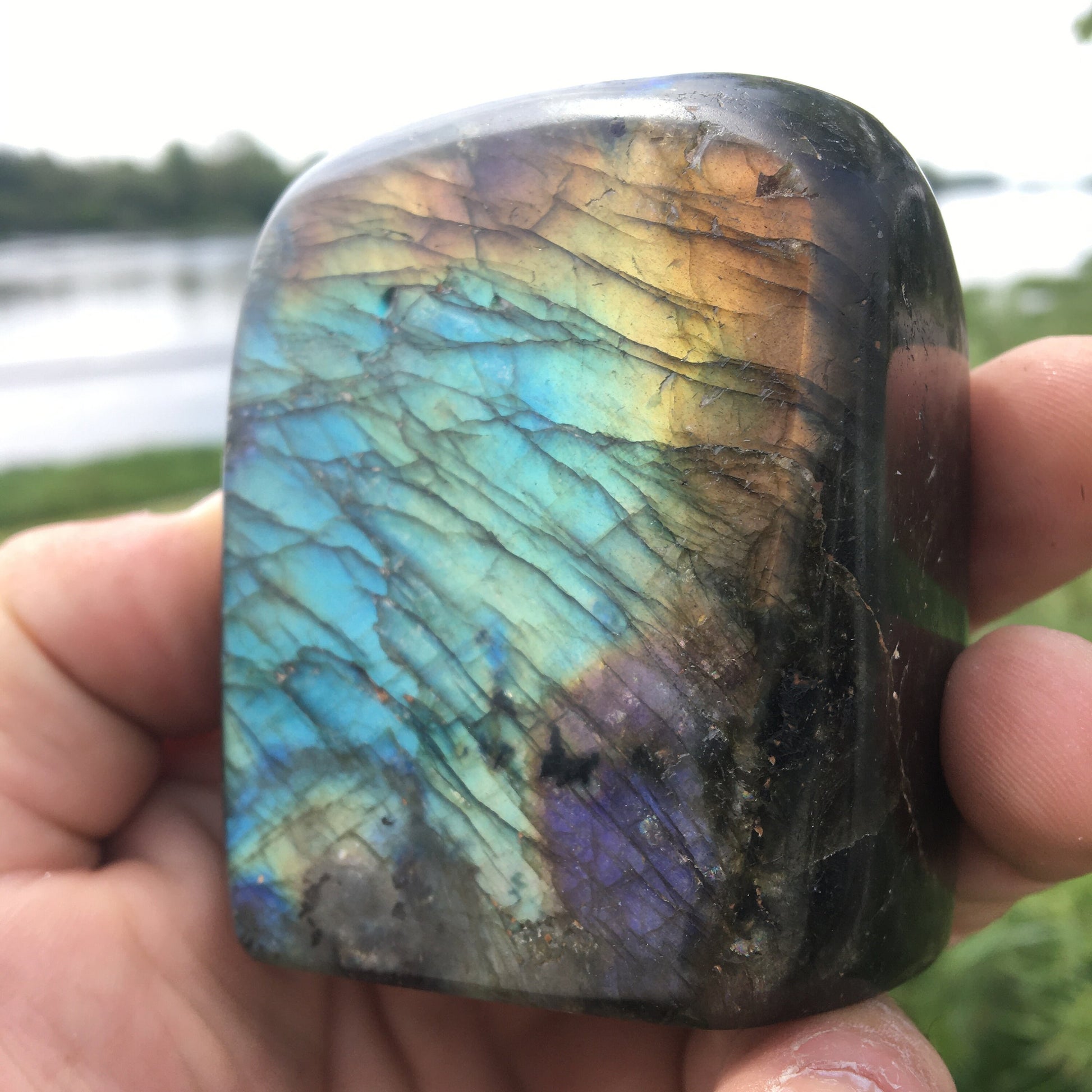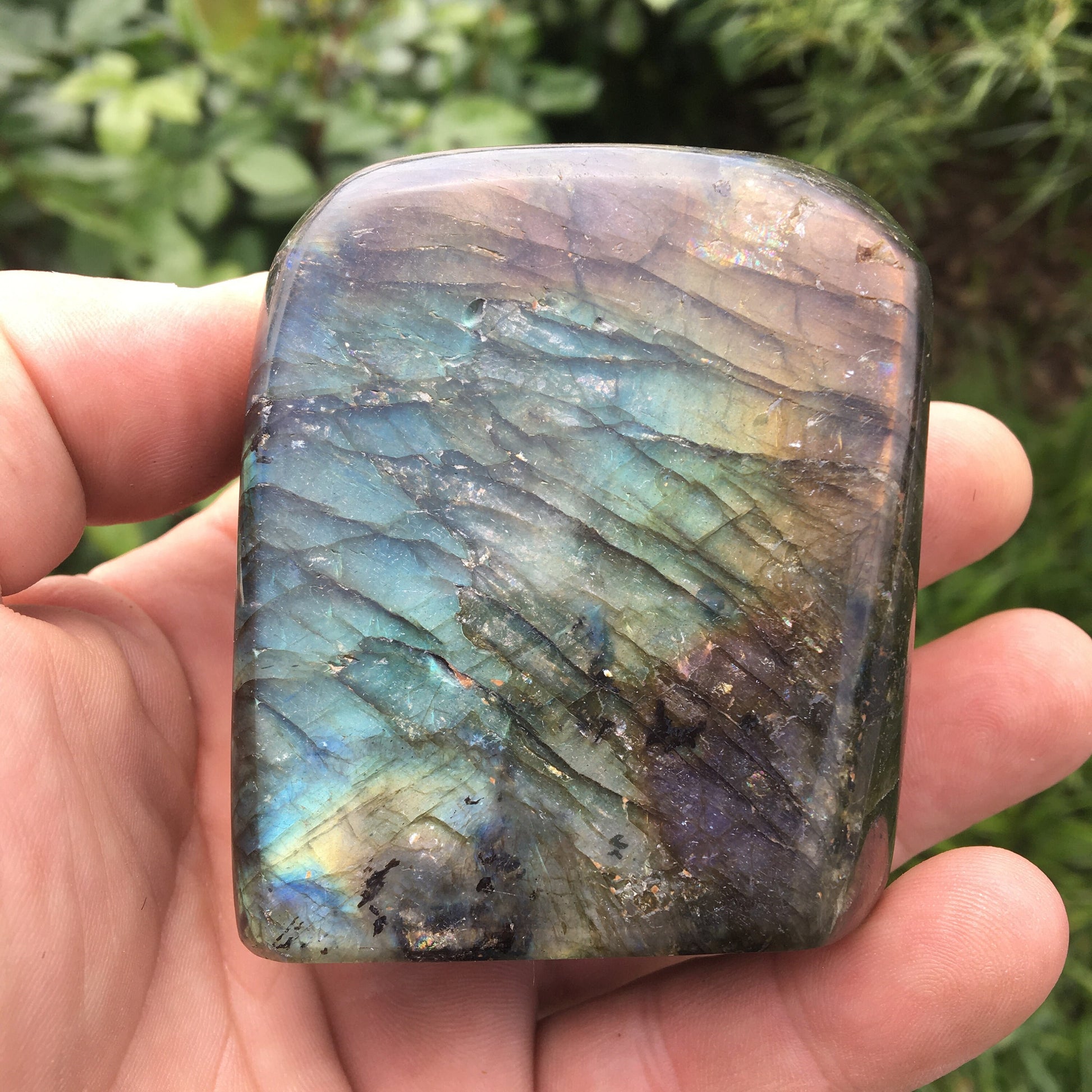 Labradorite, forme libre de qualité AAA, environ 71 x 60 x 40 mm - 396 grammes environ. Très belle qualité, des reflets hologramme incroyable !