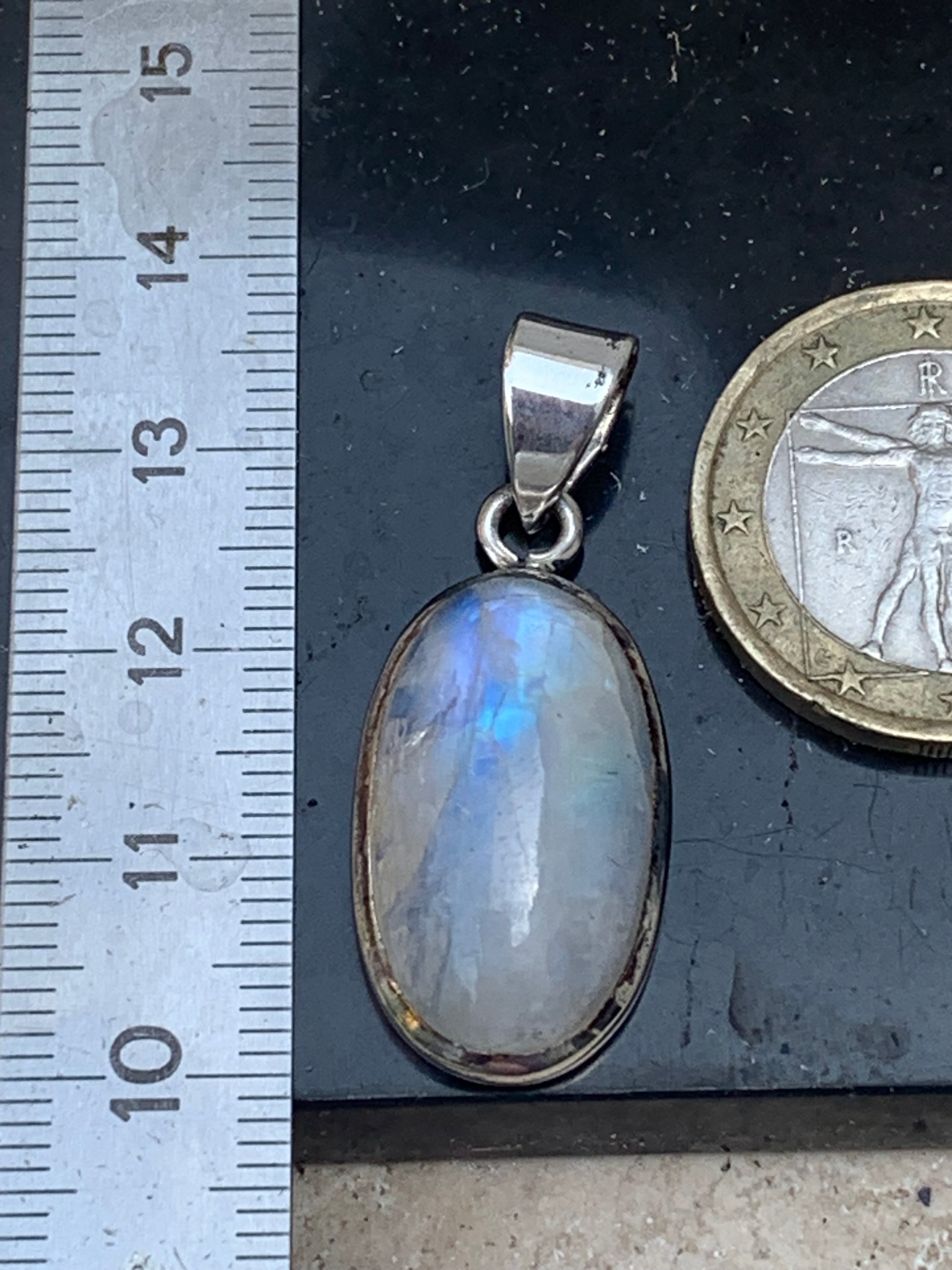 Labradorite blanche/ péristérite, pendentif en 'cabochon percé' de 38mm x 15 x 8. Qualité AA à AAA, vendu avec cordon réglable de couleur noire !