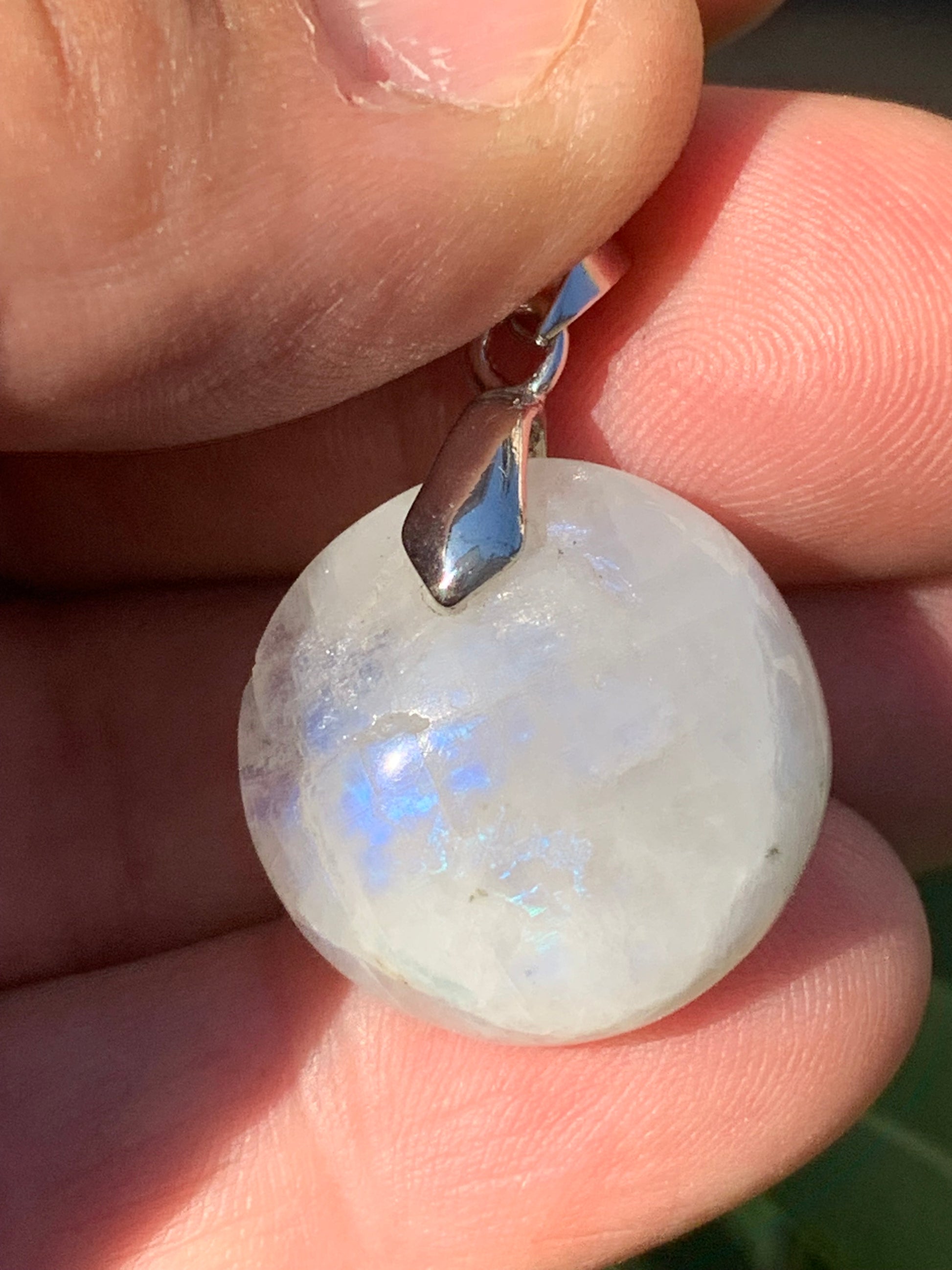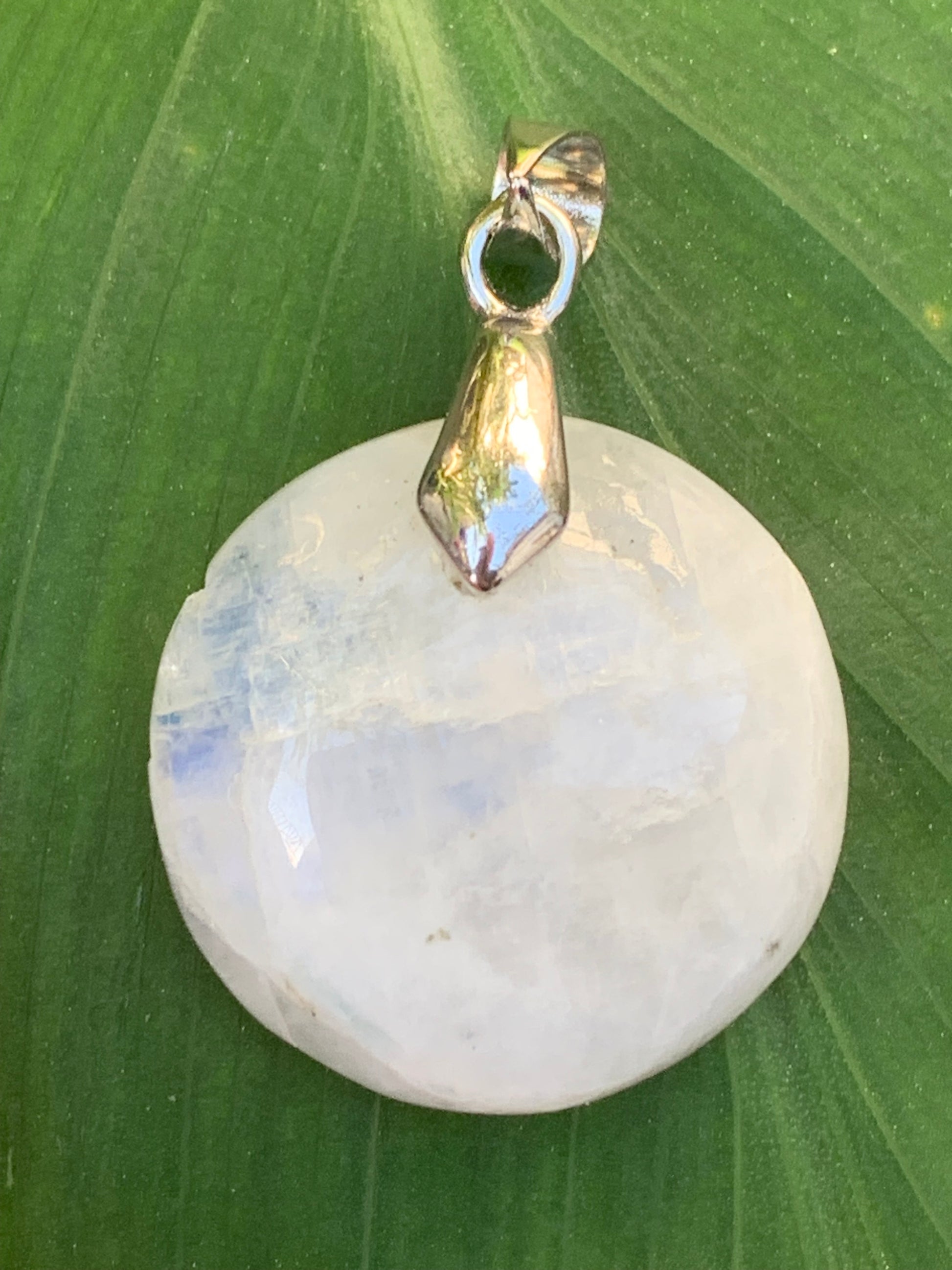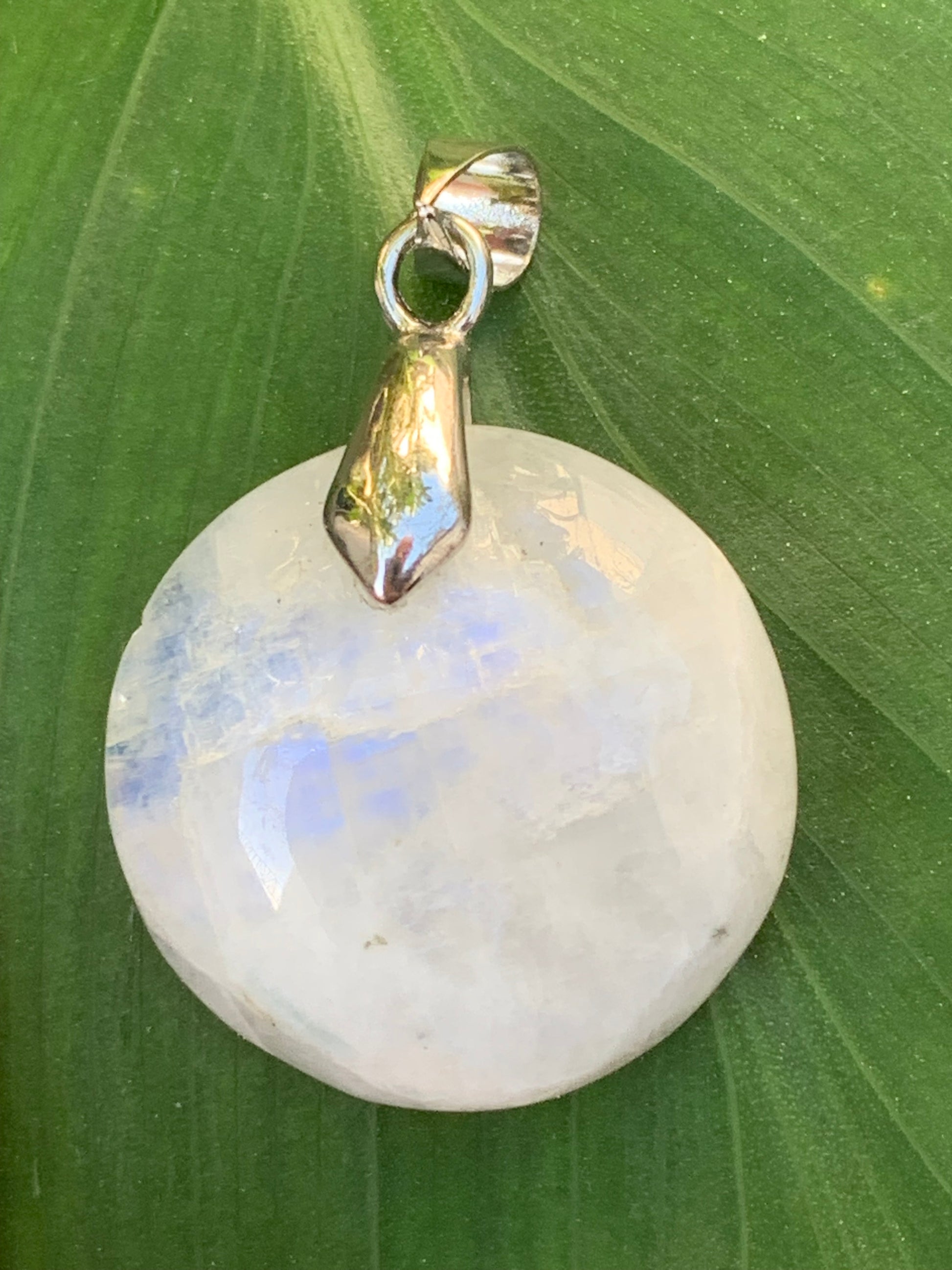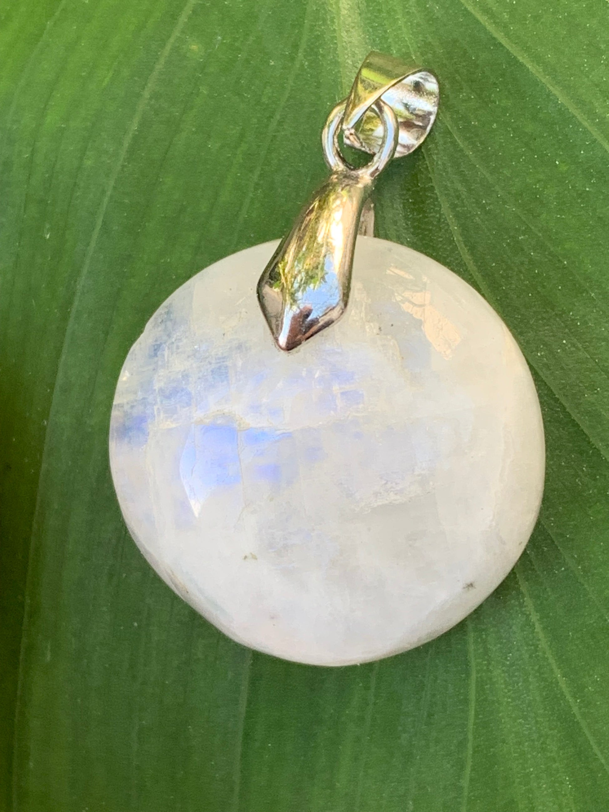 Labradorite blanche/ péristérite, pendentif en 'cabochon percé' de 40mm x 30 x 10. Qualité AA à AAA, vendu avec cordon réglable de couleur noire !