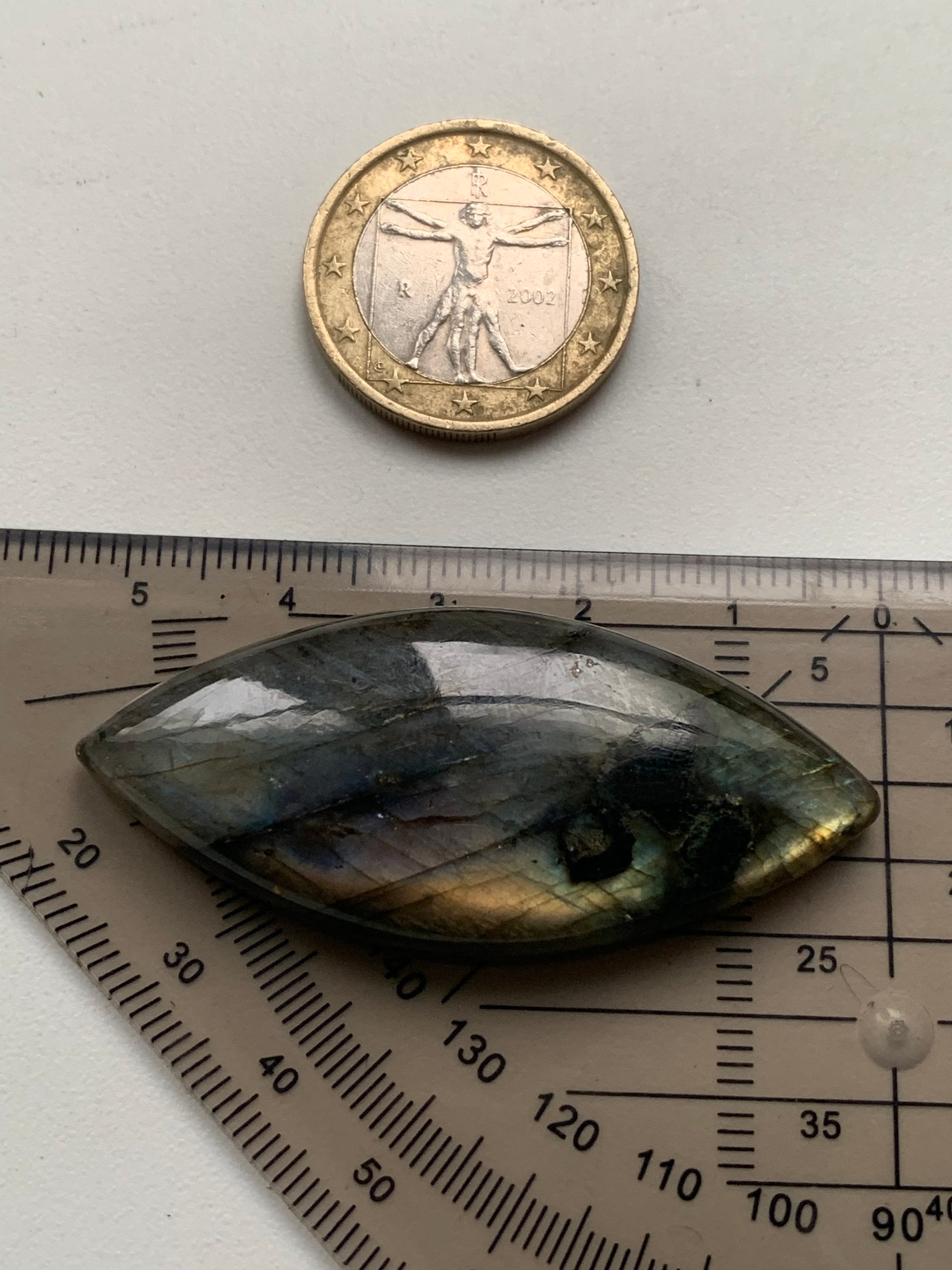 Labradorite, cabochon en forme de 'marquise' - ± 51 x 23 x 8 mm - 13,2 gr. - Qualité AA à AAA !