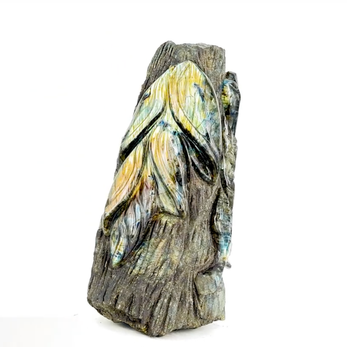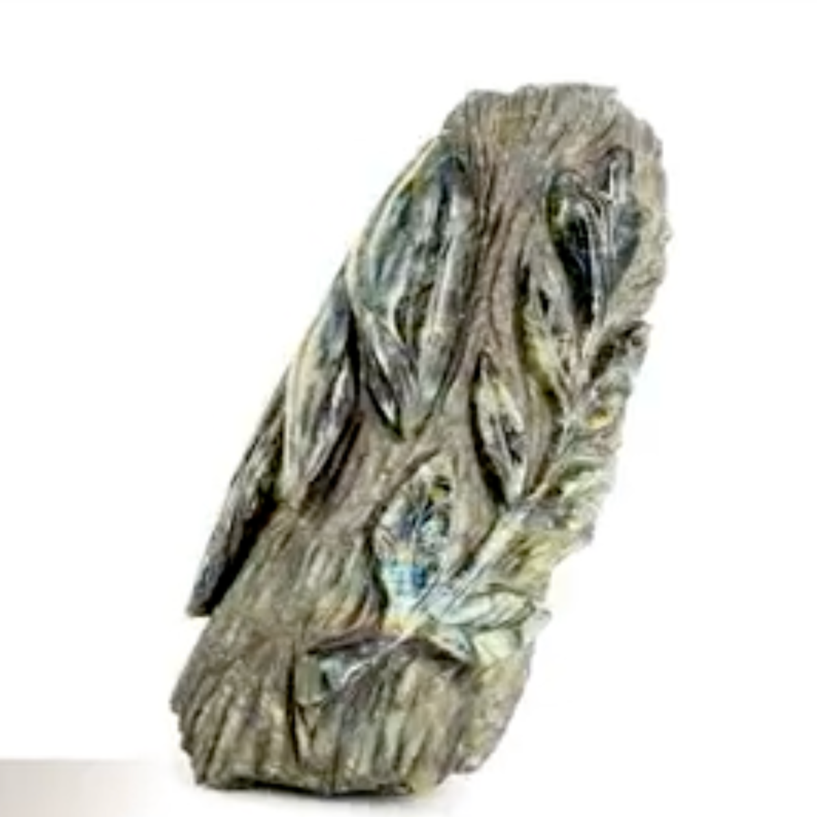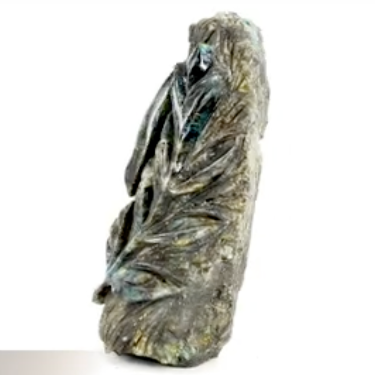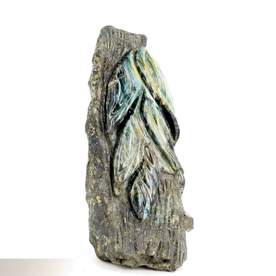 Labradorite, forme libre sculpté de feuilles, de 320 x 160 x 110 mm - 10,56 kgs. Parfait en décoration, exposition...