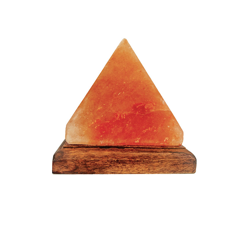 Lampe en sel, en forme de pyramide sur socle en bois d'acacia. Provenance : Inde. Dimension : 12.50 cm