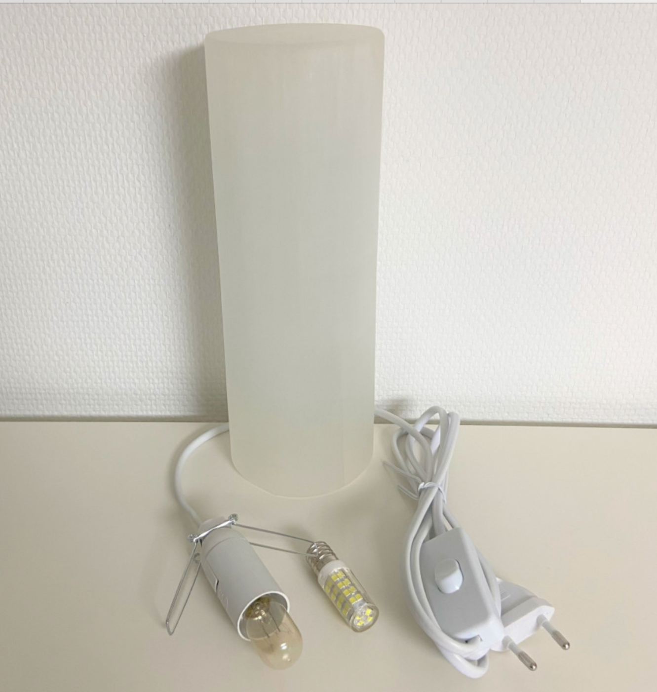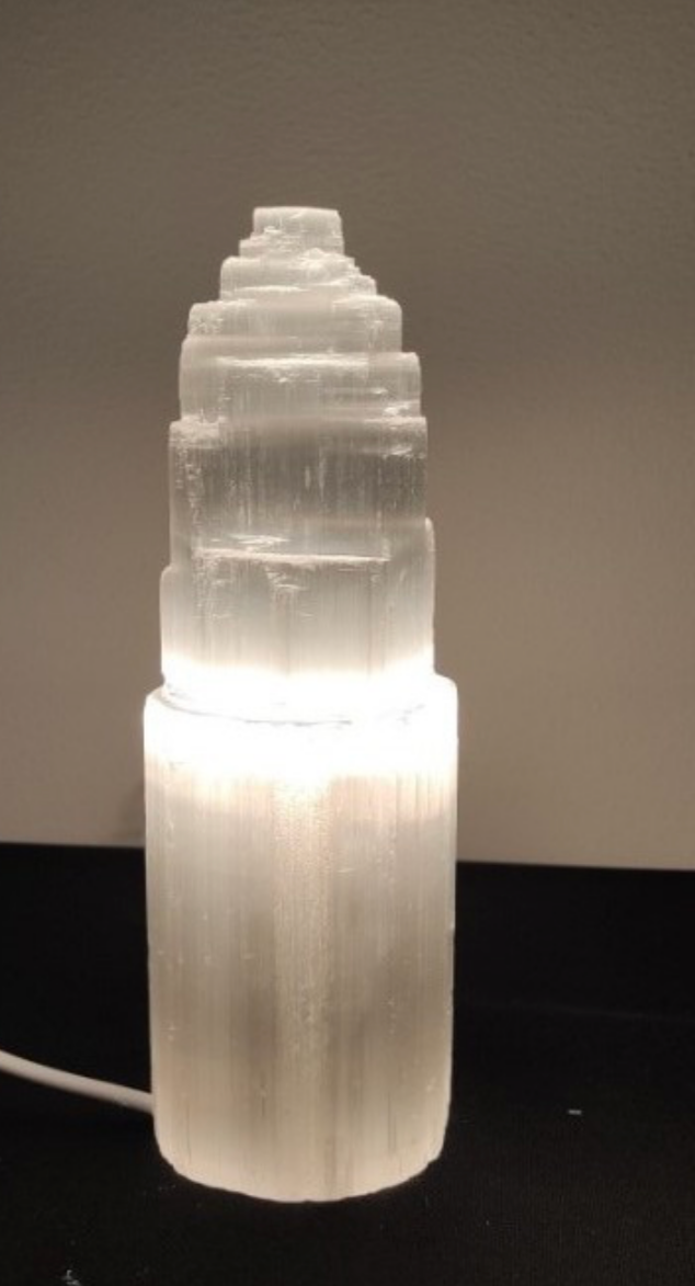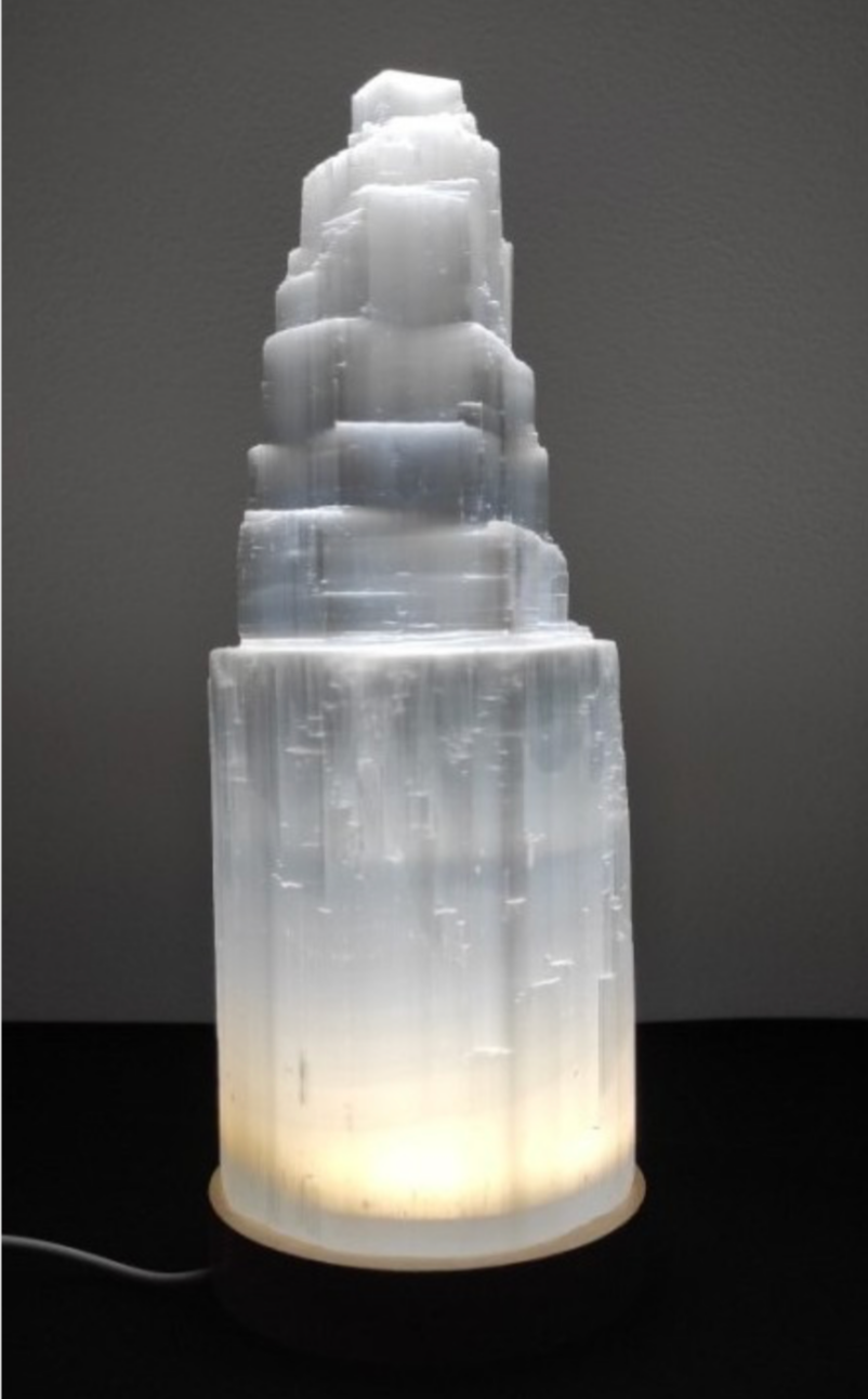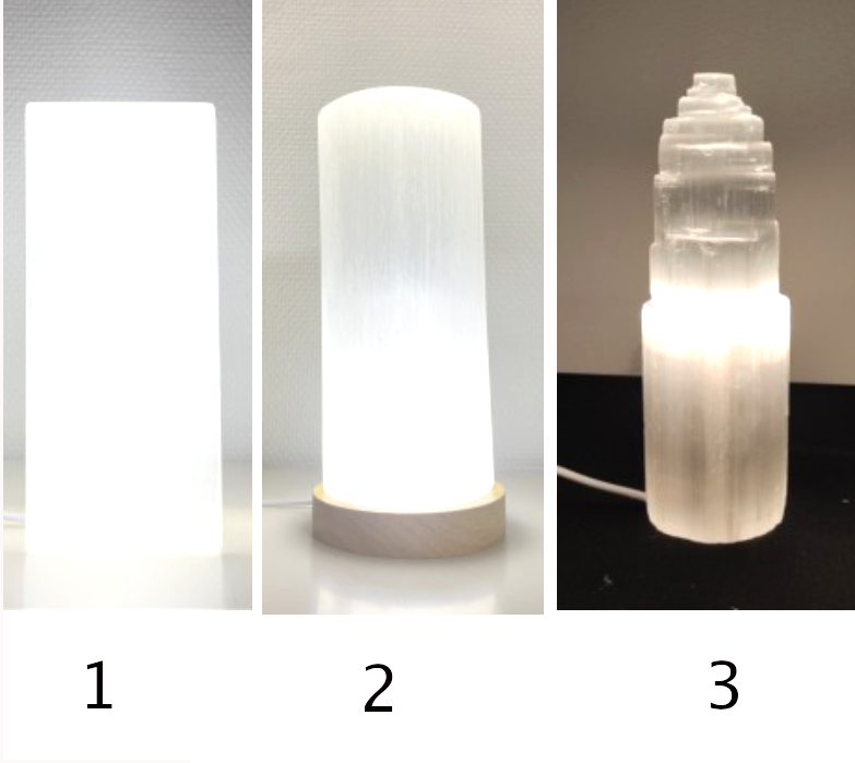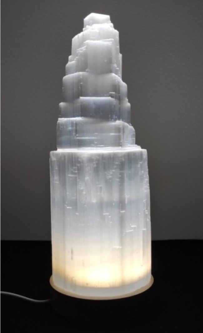 Lampe en Sélénite de forme ronde ou carré de 20 et 25 centimètres, et monolithe de 20, 25 et 40 centimètres. vendu avec cordon et ampoule !