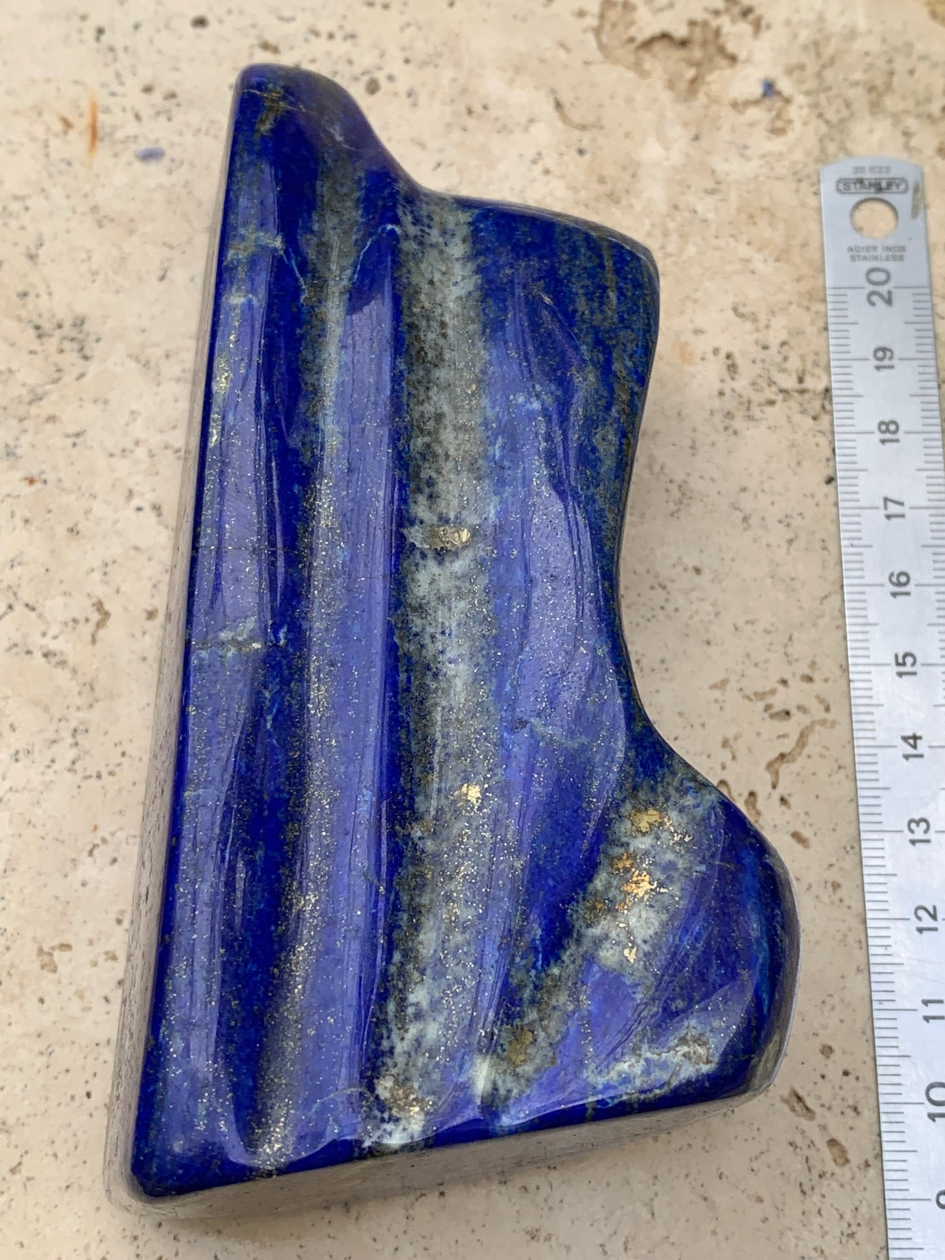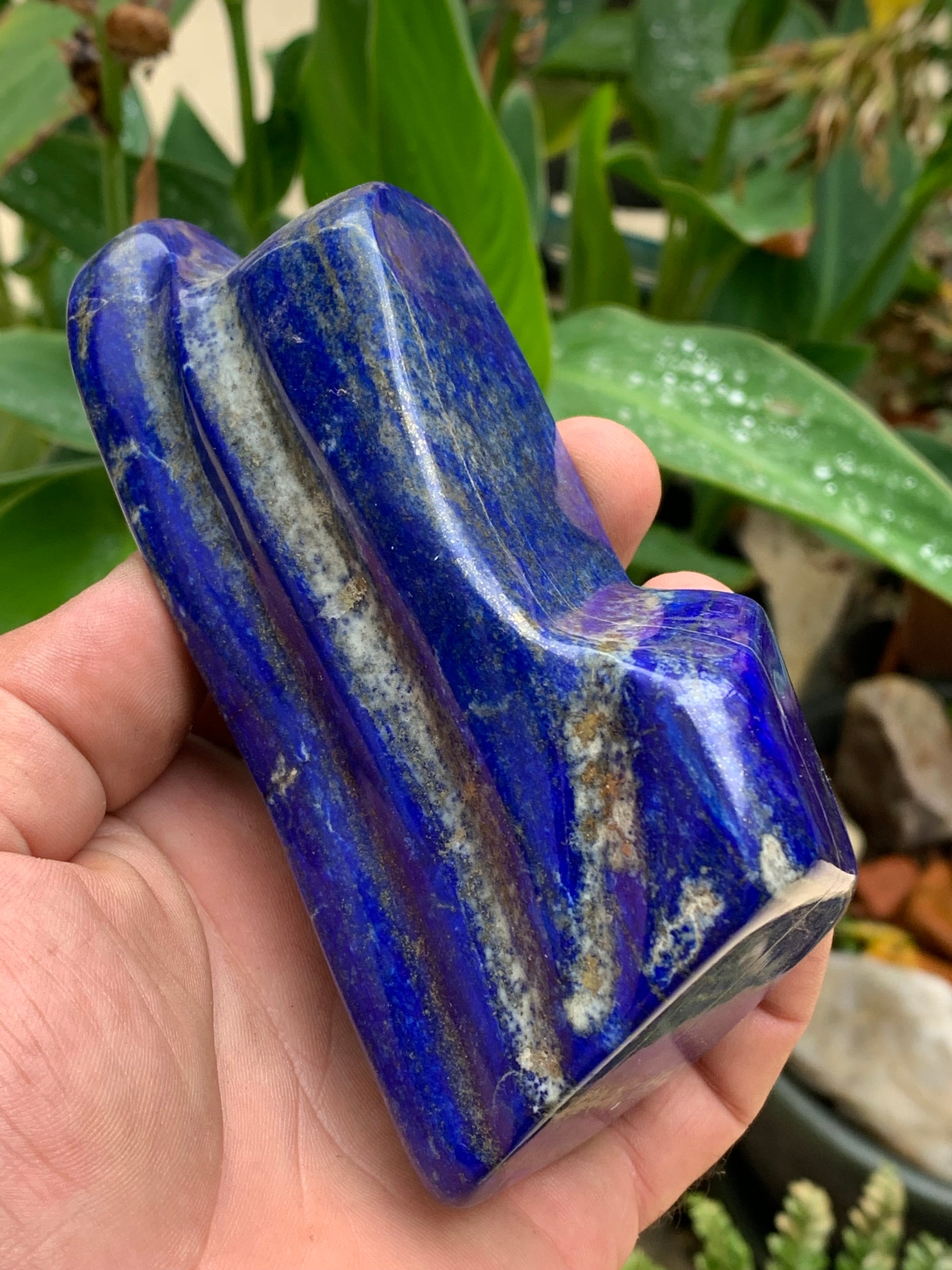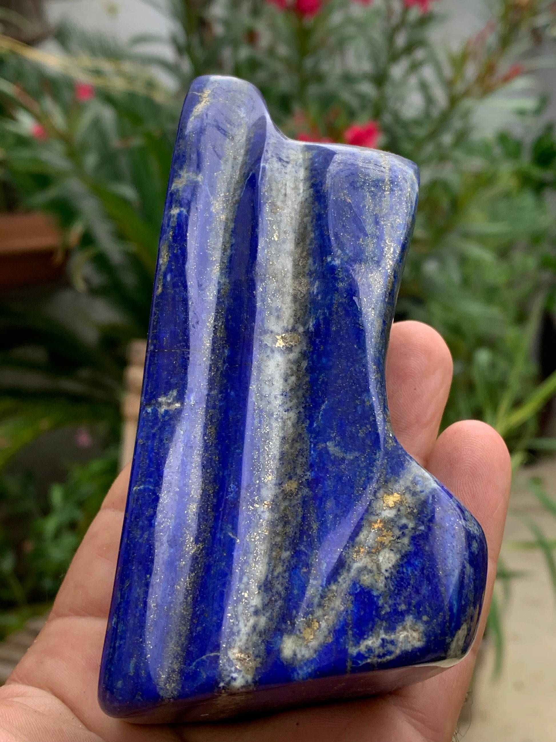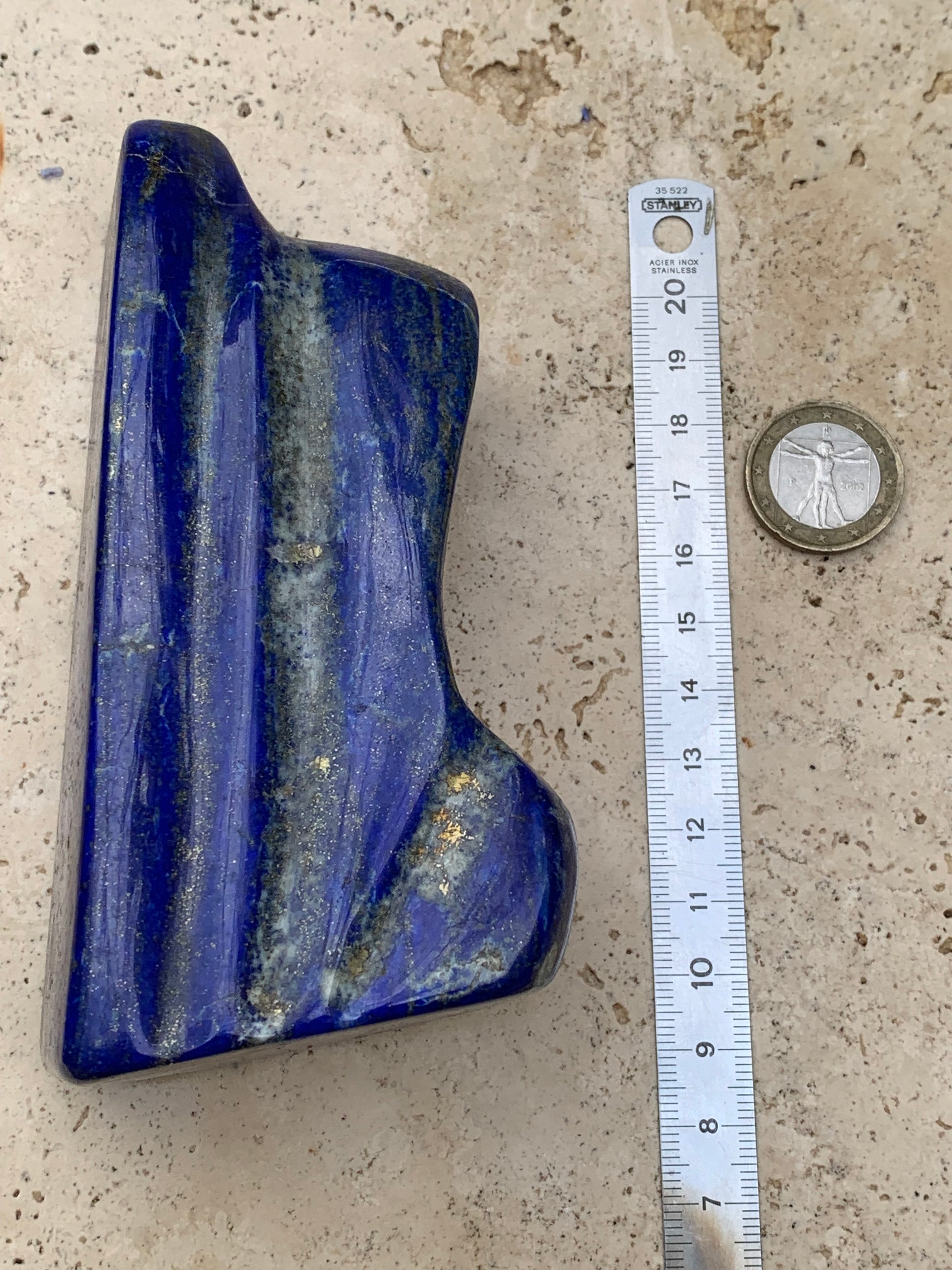 Lapis lazuli, forme libre polie de 131 x 68 x 48 mm - 706 grammes. Un bleu envoûtant et fascinant, pierre des pharaons !