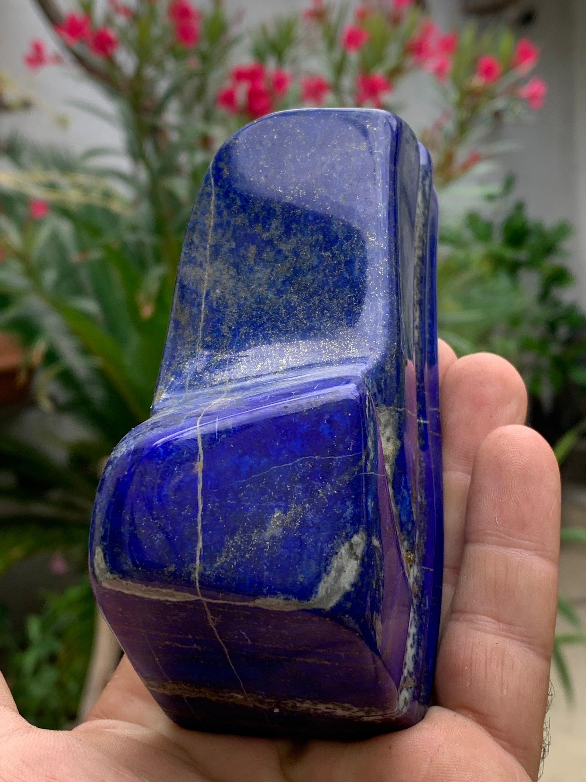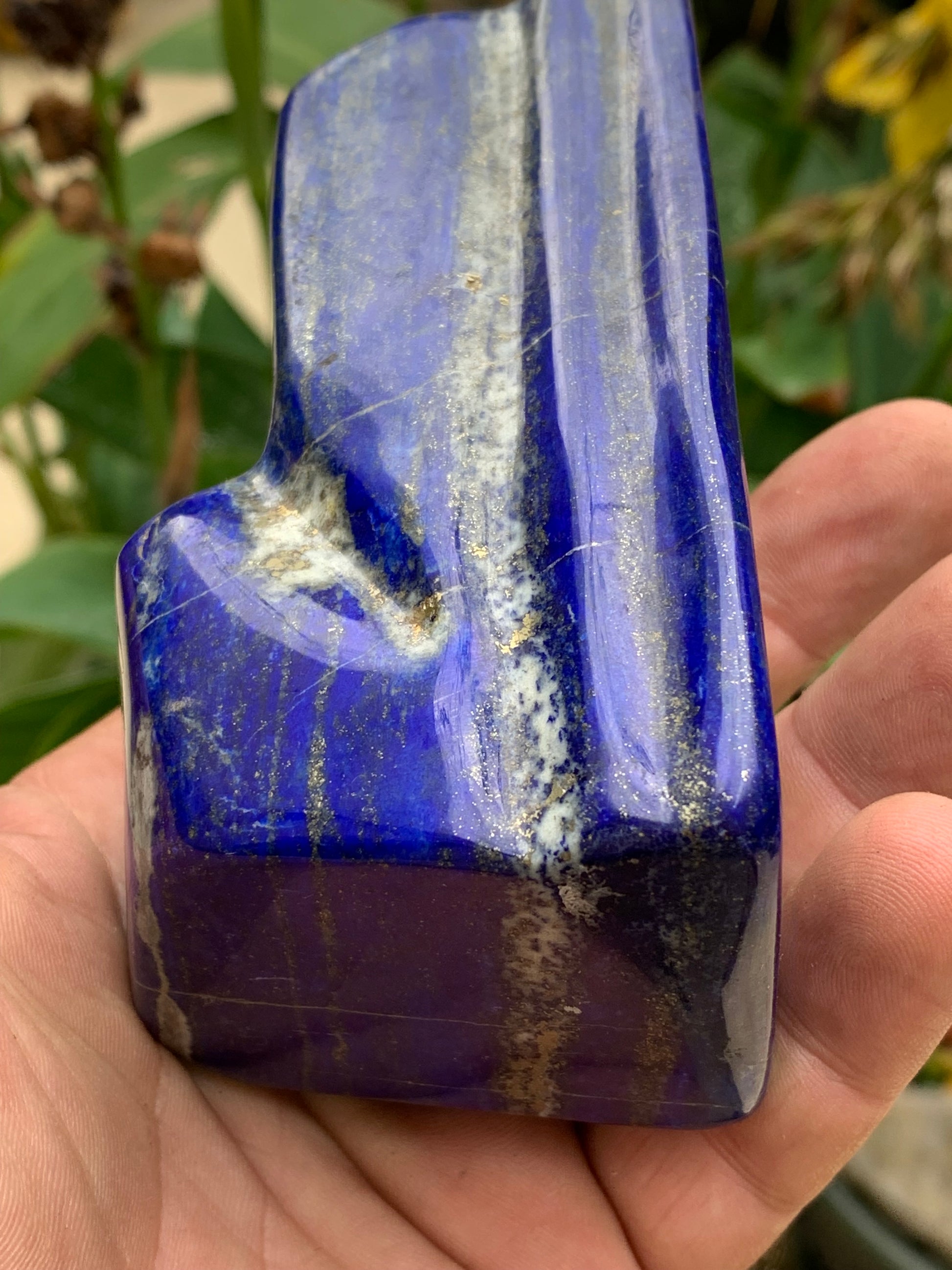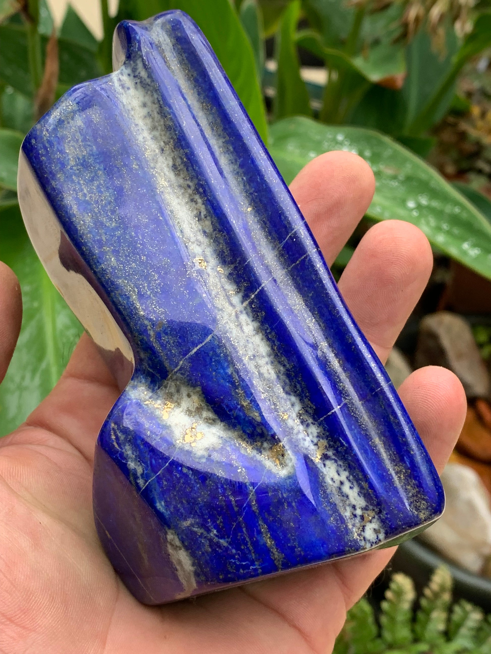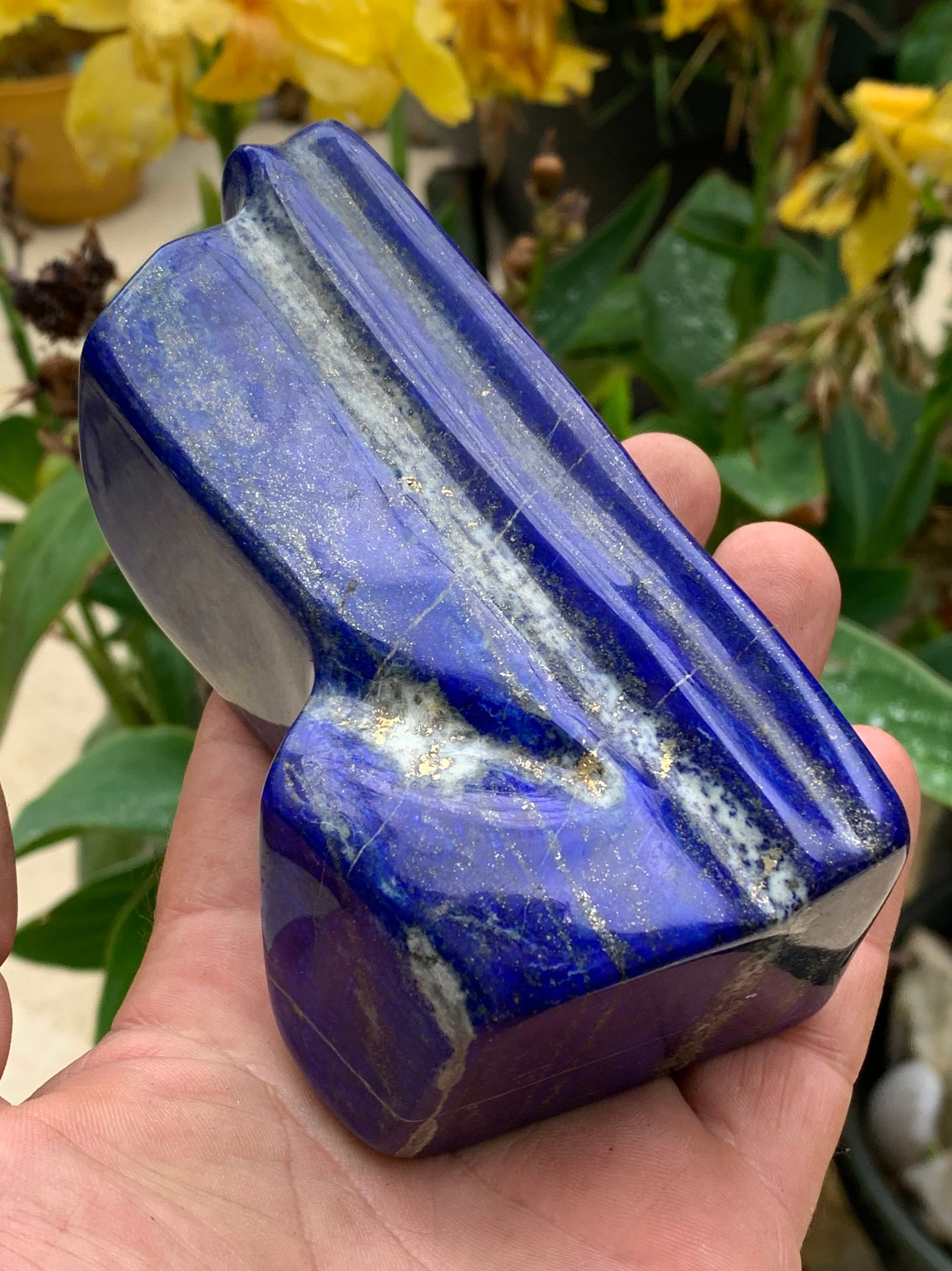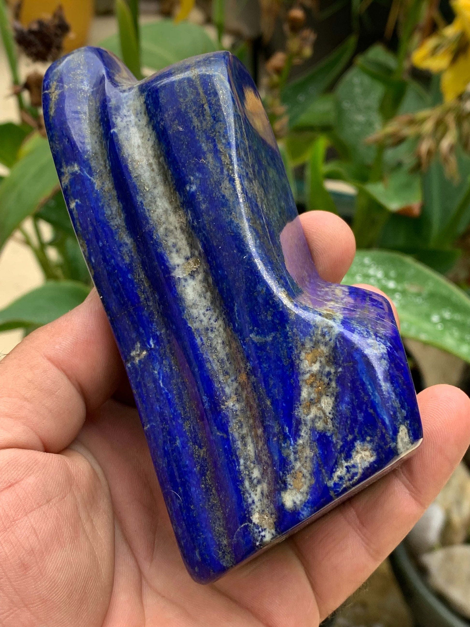 Lapis lazuli, forme libre polie de 131 x 68 x 48 mm - 706 grammes. Un bleu envoûtant et fascinant, pierre des pharaons !